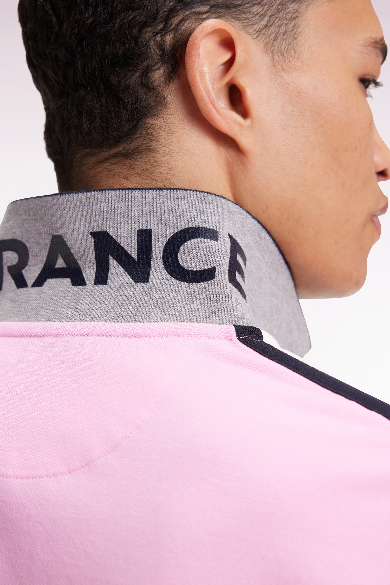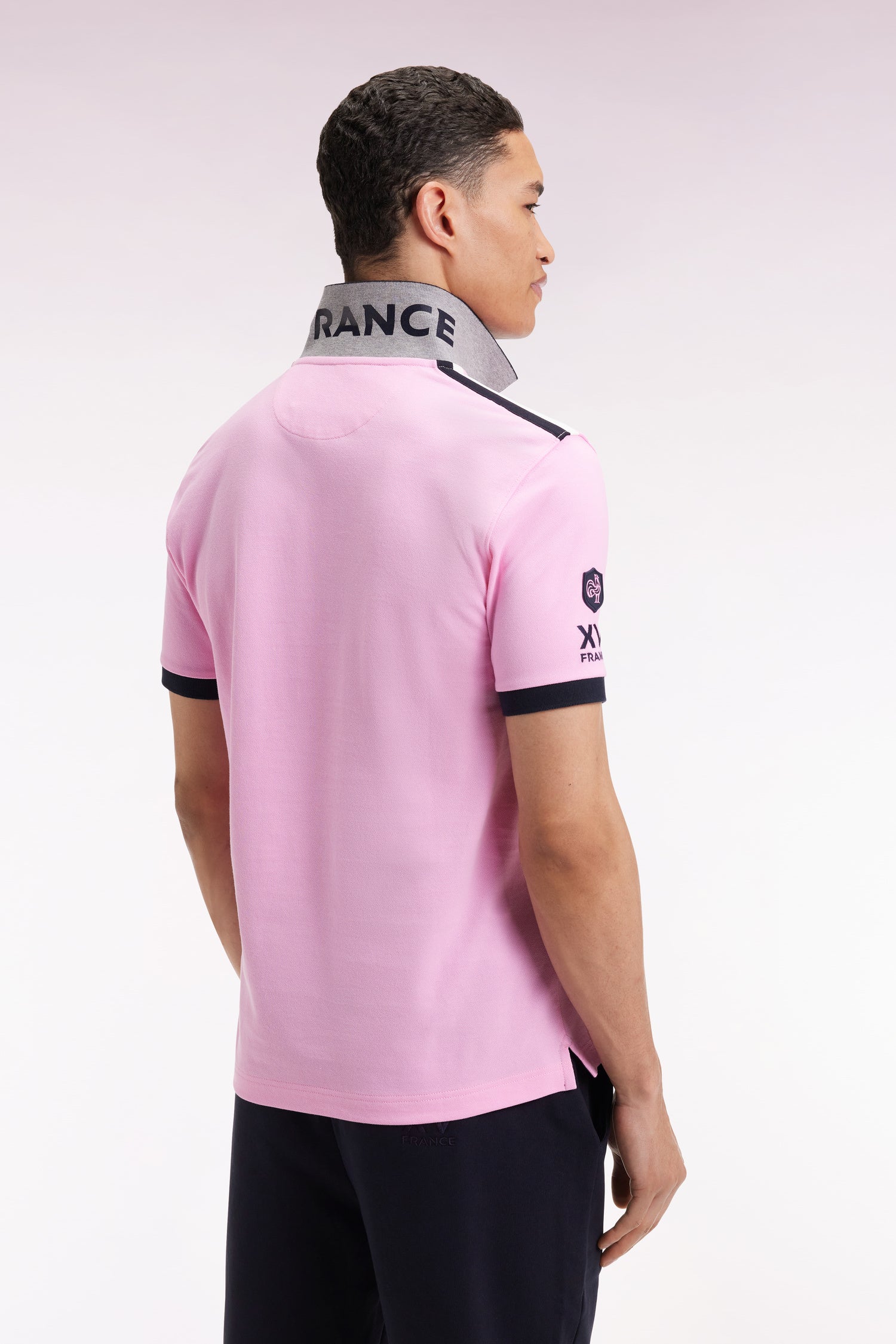 XV de France short-sleeved pink cotton polo shirt, straight cut