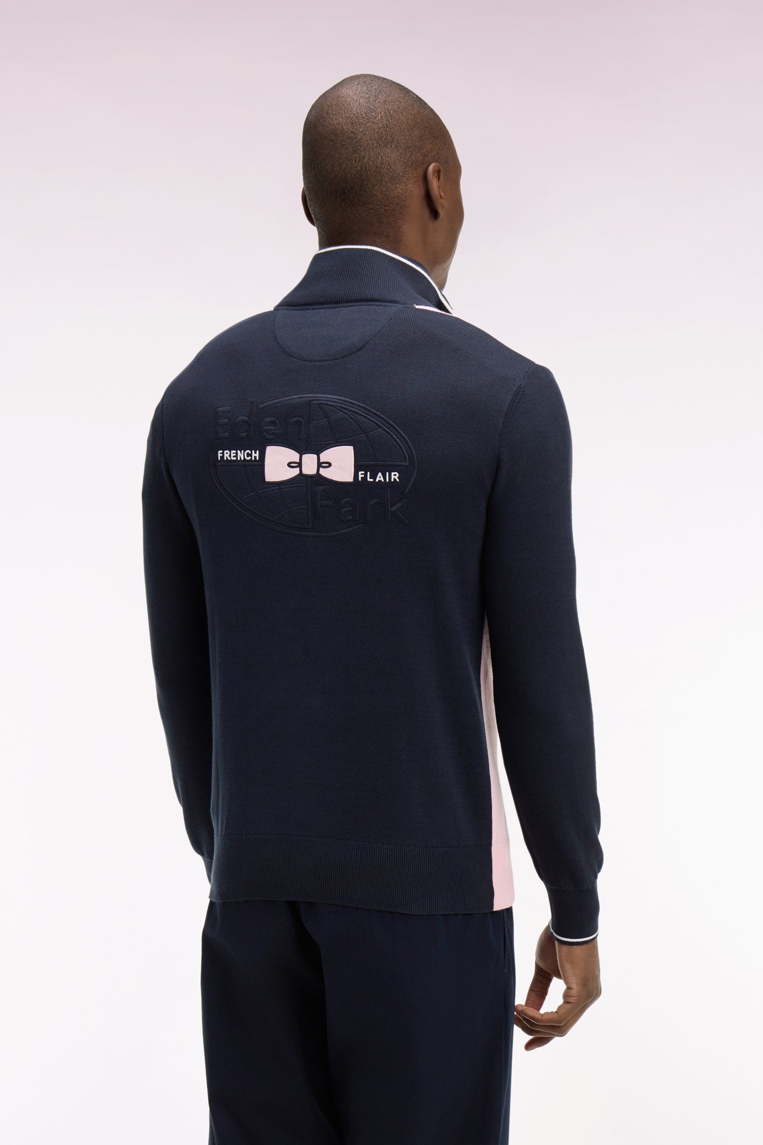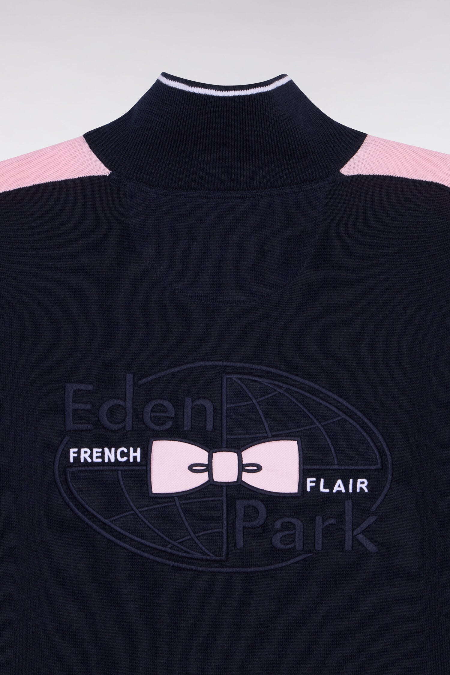 Ce pull homme en coton pur mêlant points jersey, envers et Ottoman combine esprit sportif et confort. Typique de notre vestiaire rugby chic ce pull à col camionneur zippé dispose d'une large broderie dos et d'une rayure blanche en milieu de corps inspiré des maillots. Une pièce essentielle pour un vestiaire léger porté avec un jean comme avec un pantalon cargo. Modèle intemporel proposé en coloris marine et ciel ou marine et rose.
