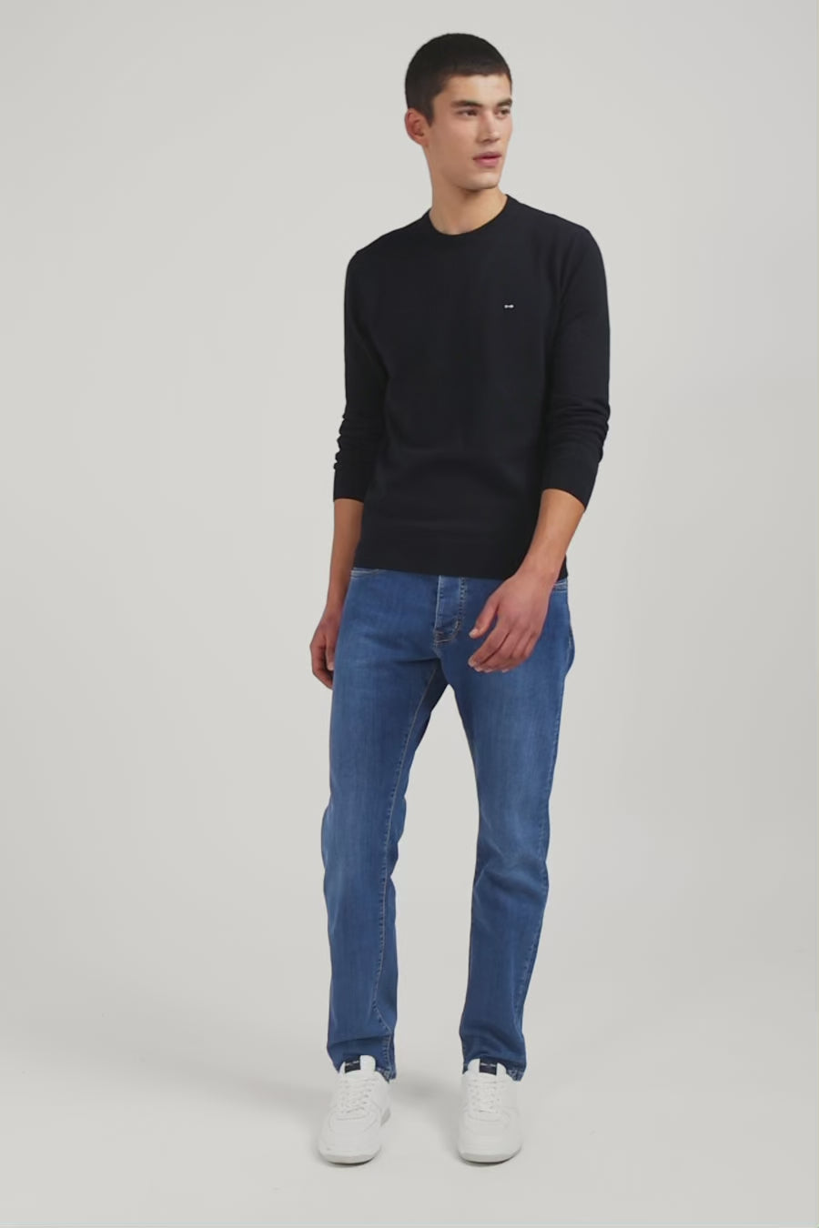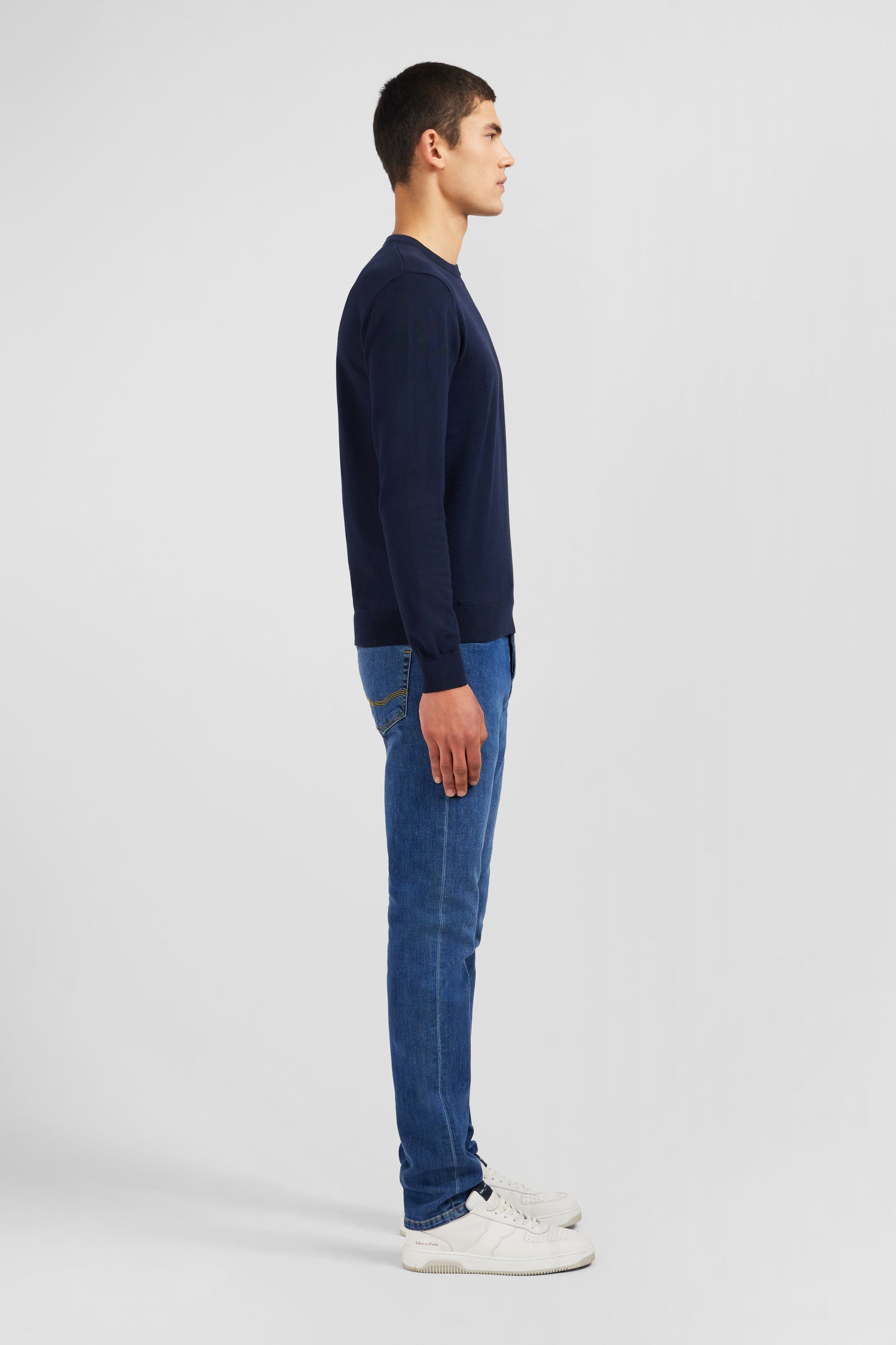 Classic yet infinitely chic, the timeless crew neck jumper deserves a place of choice in your wardrobe this season. Crafted in cotton jersey, this piece promises flawless softness, ideal comfort and discreet elegance. Wear it casually against the skin or dress it up by topping a solid shirt with it.