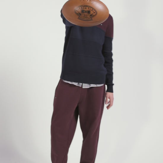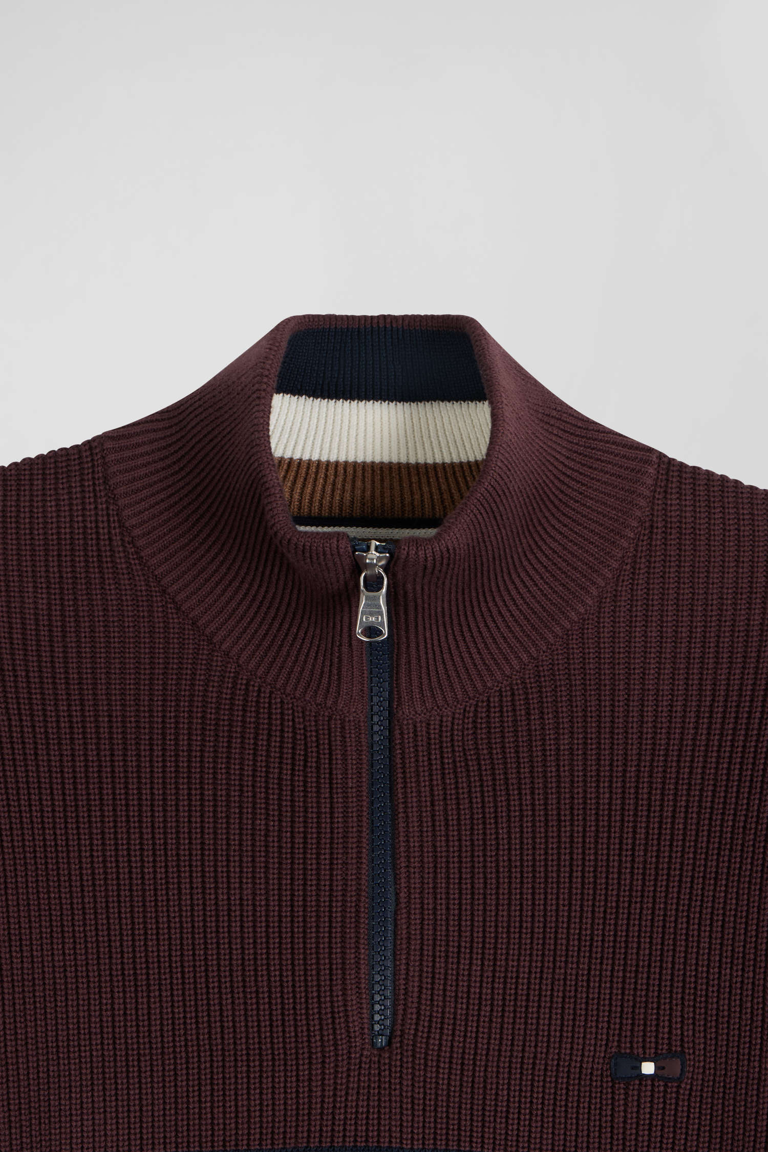 Regular burgundy cotton semi-zipped jumper with knit patterns