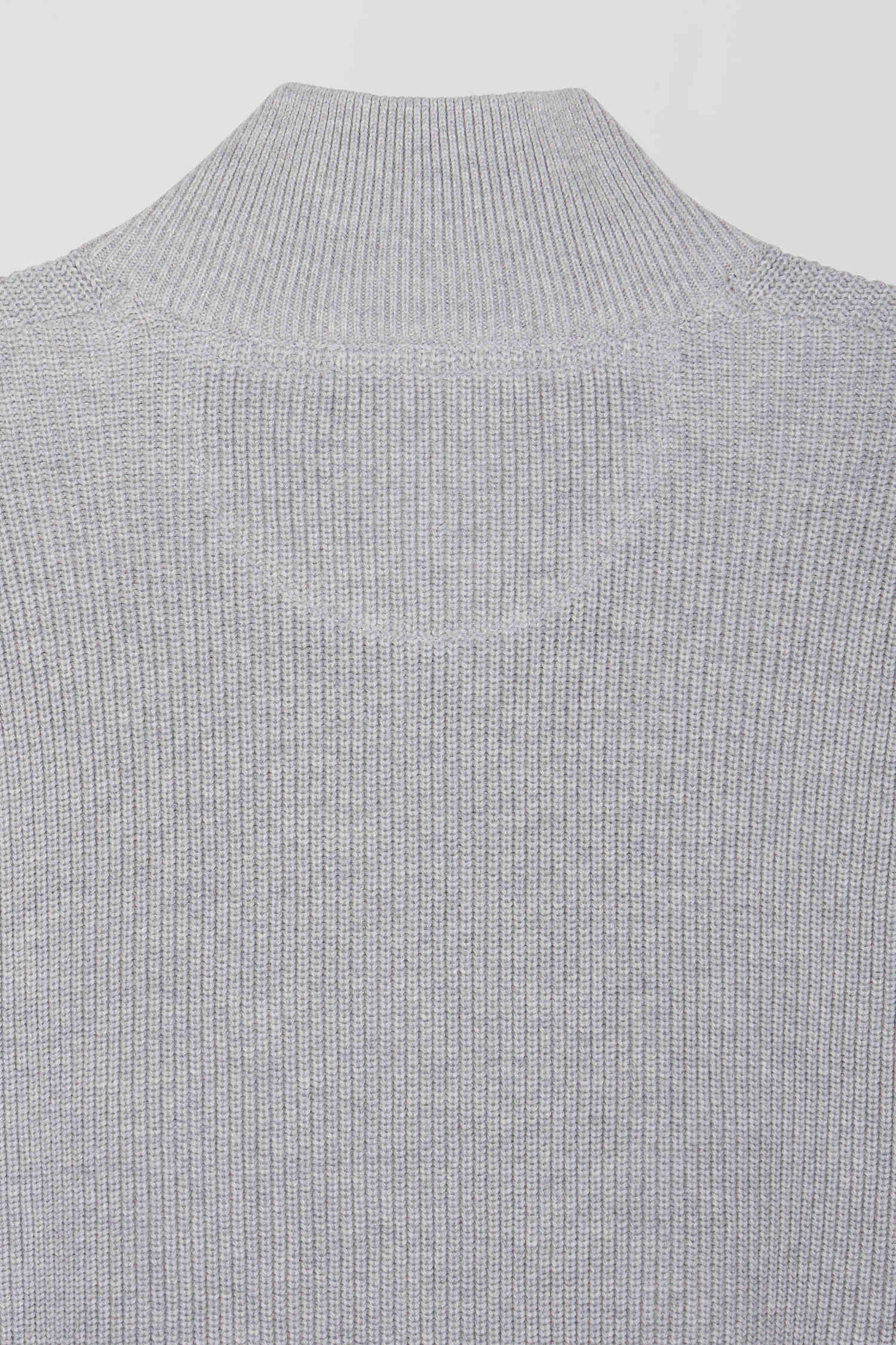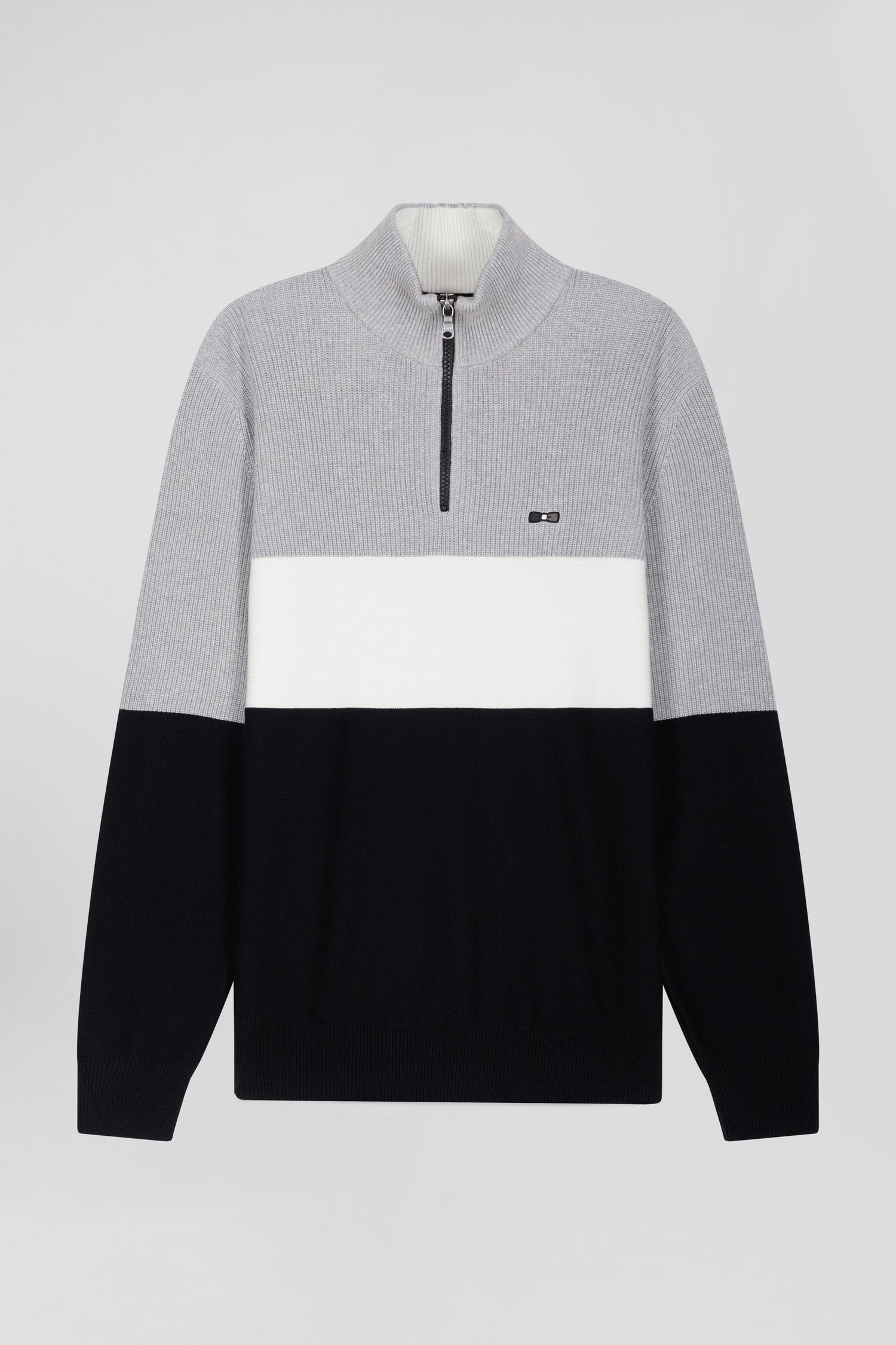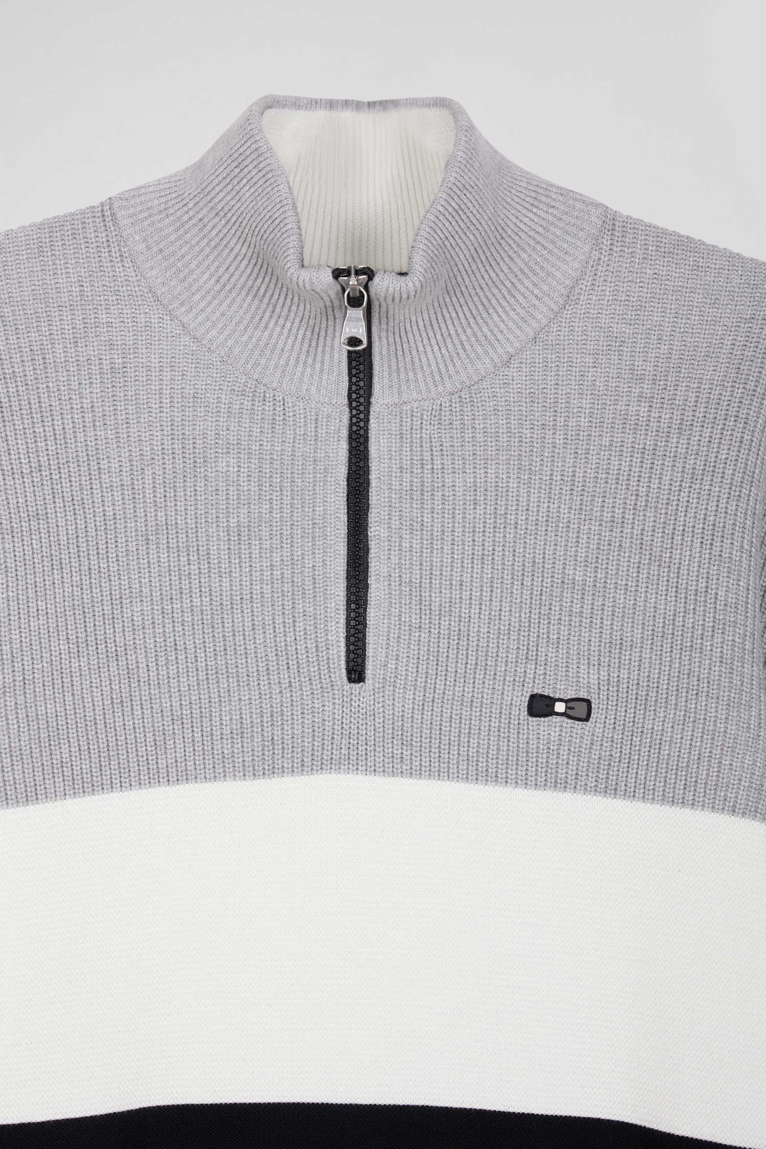 Regular grey semi-zipped cotton jumper with knit patterns