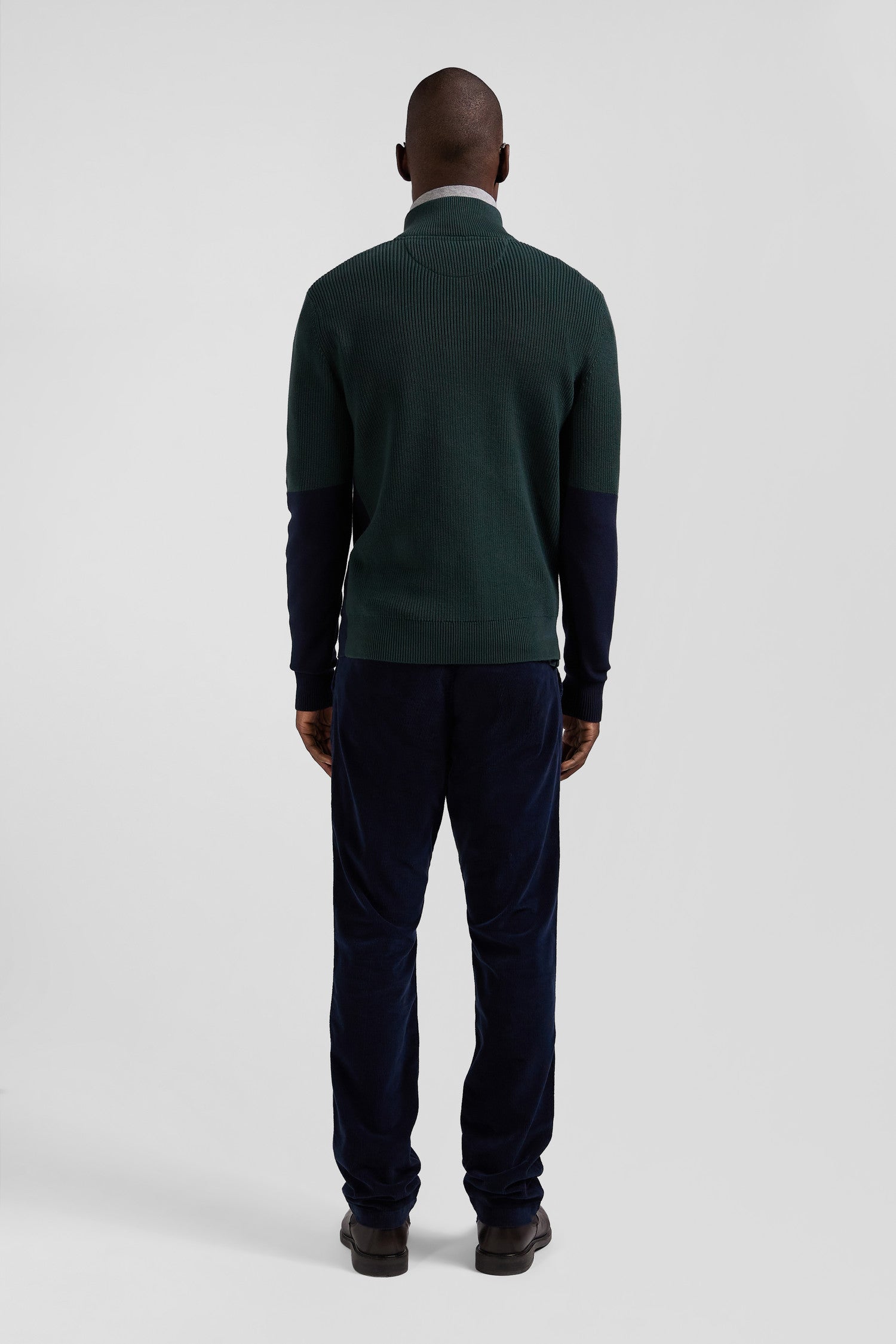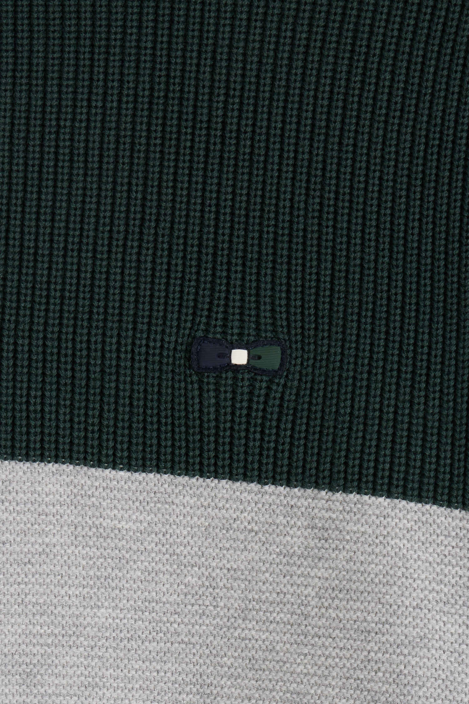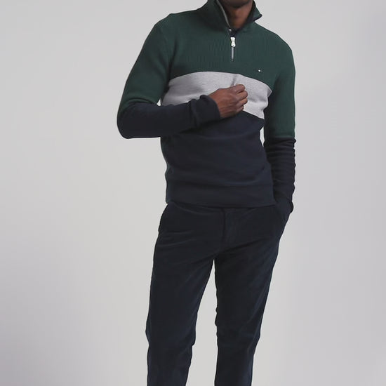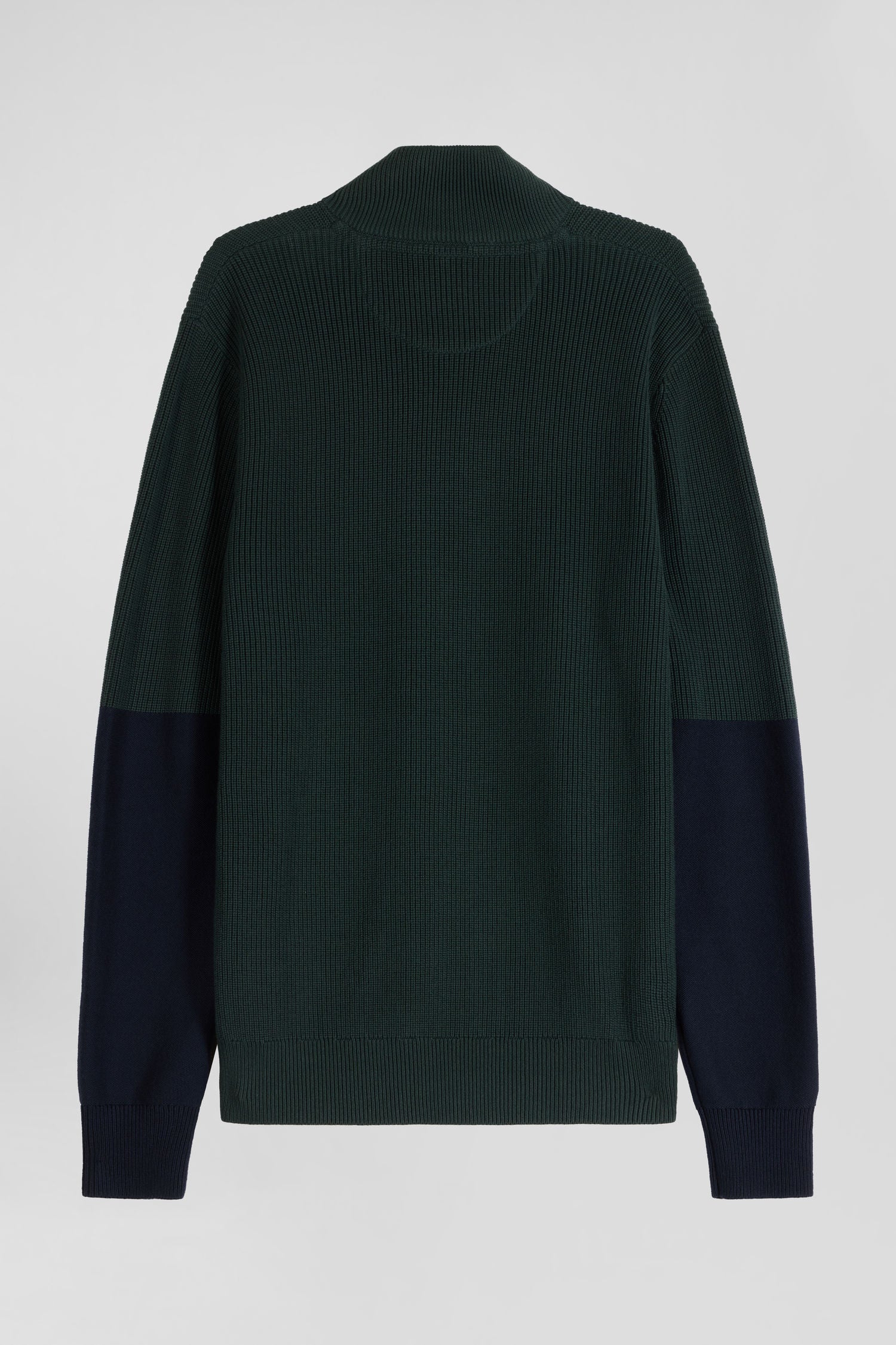 Regular green semi-zipped cotton jumper with knit patterns