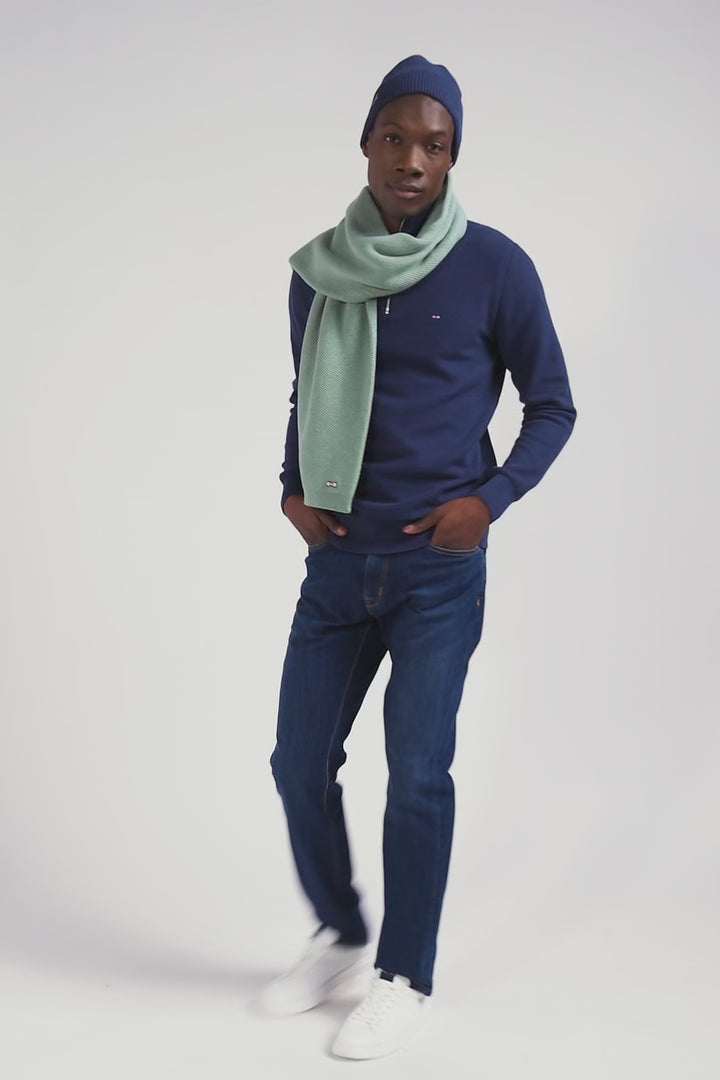 Regular dark blue cotton semi-zipped jumper