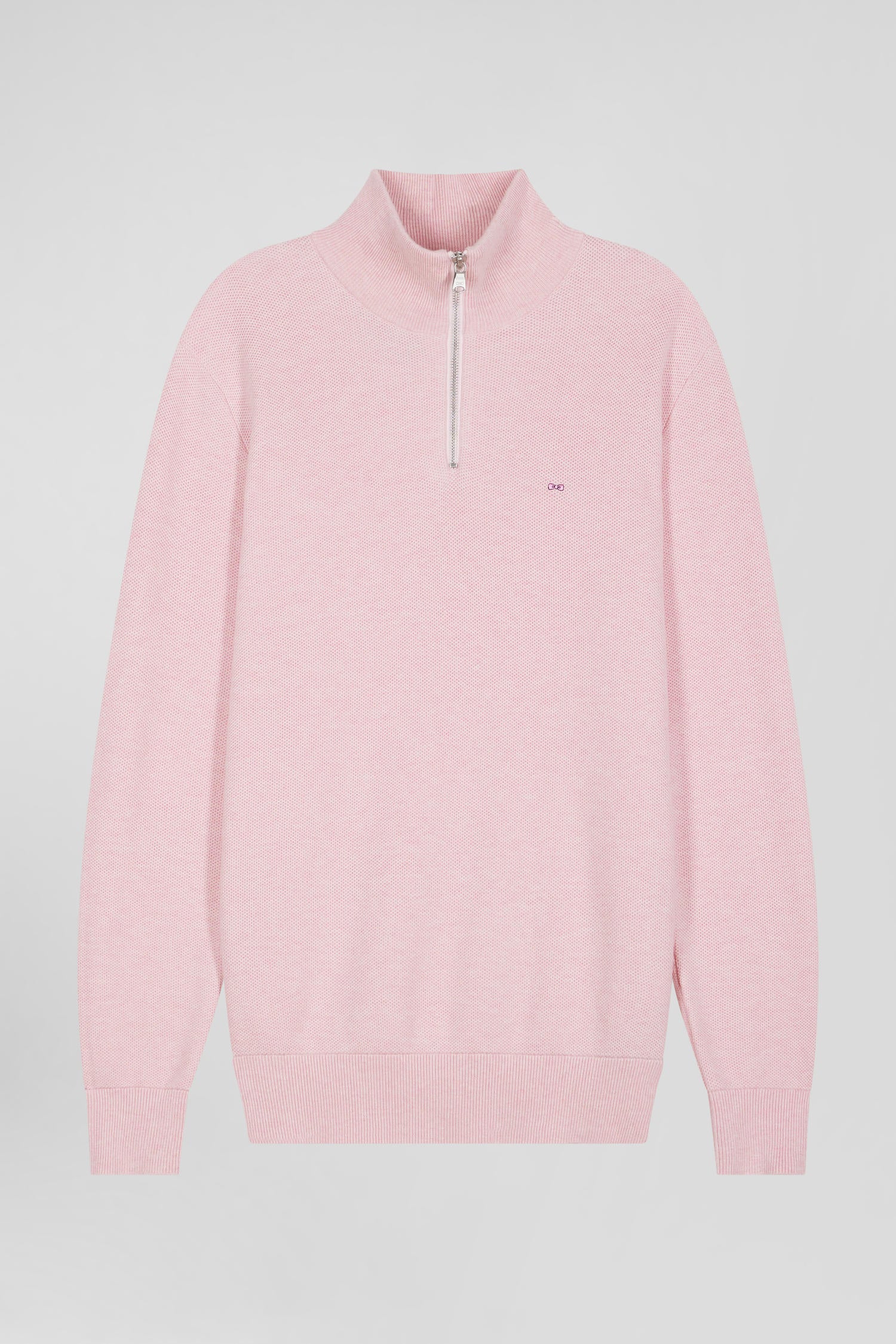 Crafted in pure cotton, this trucker-neck sweater features delicate bow-tie embroidery on the chest, marking our signature look. Its signature zipped collar with slider adds a practical touch, perfect for layering or a sharp look worn alone next to the skin.