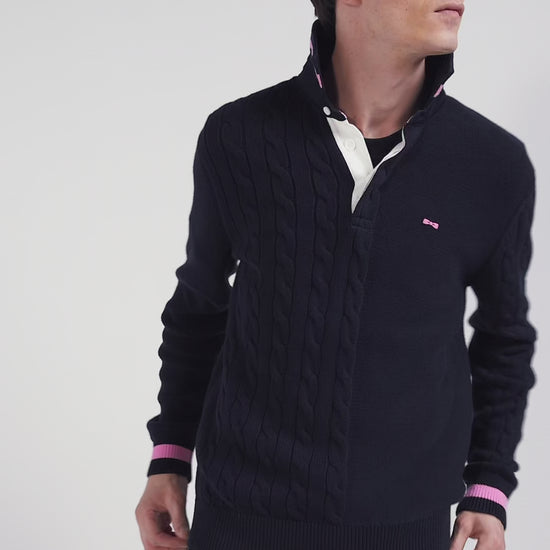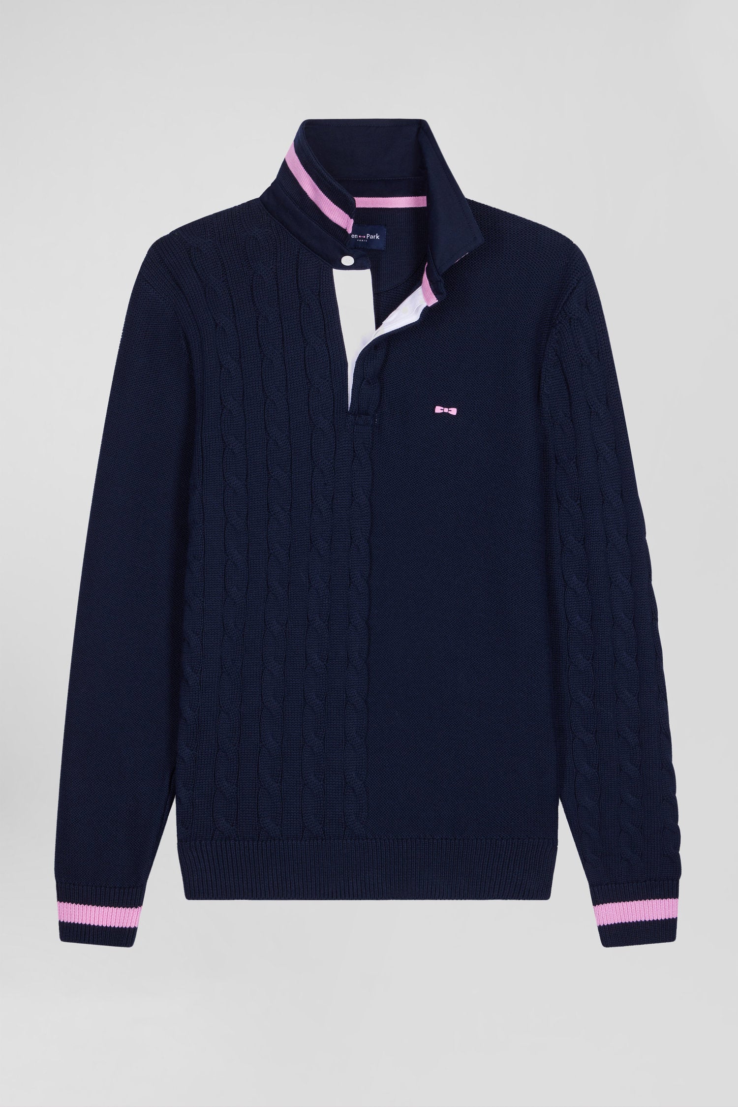 Regular navy blue cotton jumper with rugby shirt collar