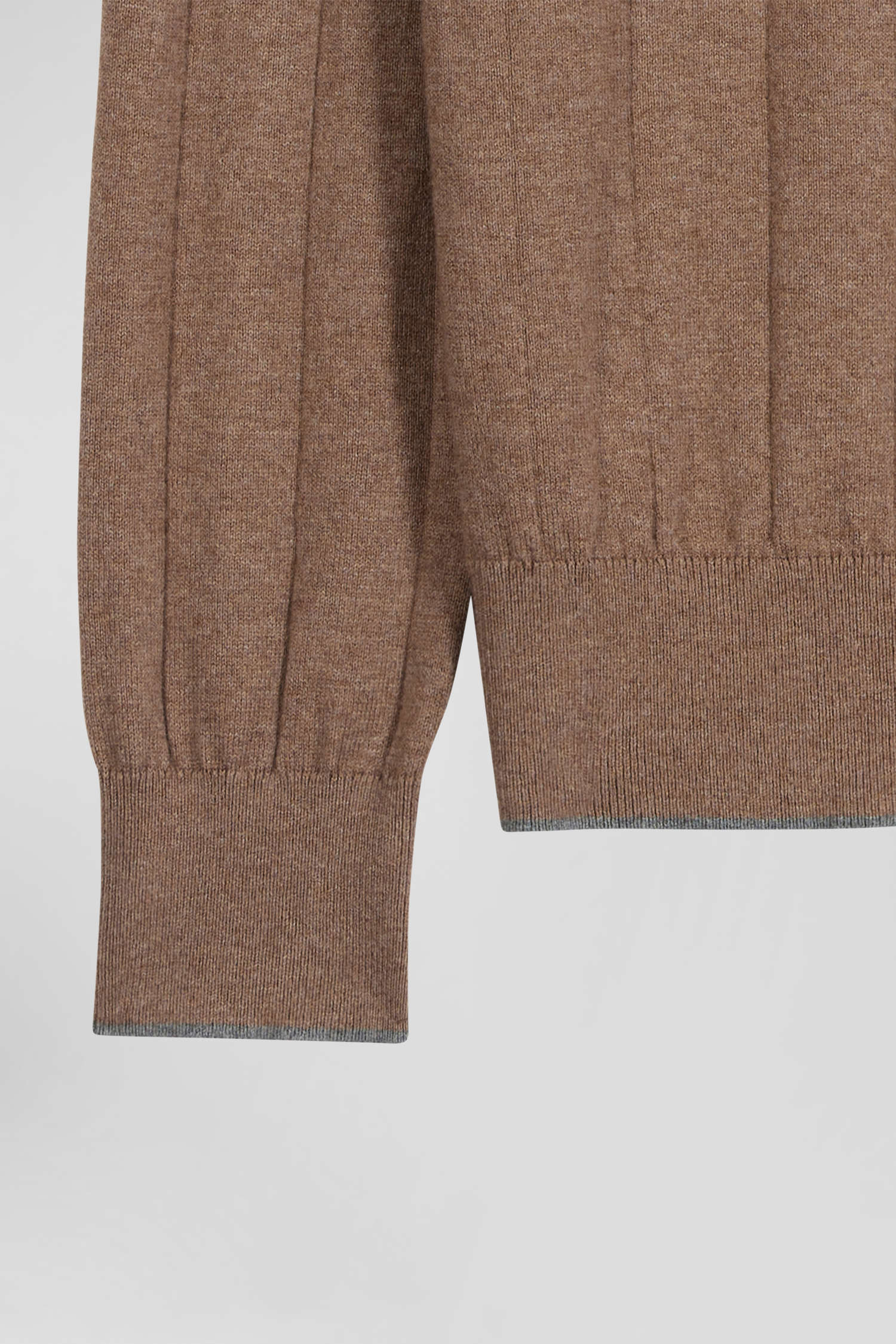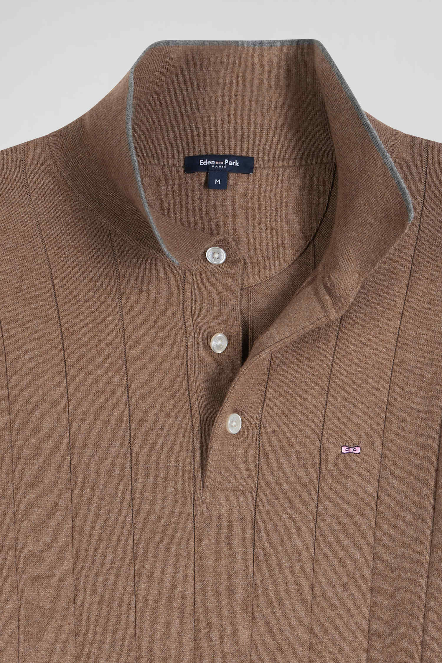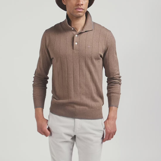 Regular brown cotton and cashmere jumper with rugby shirt collar