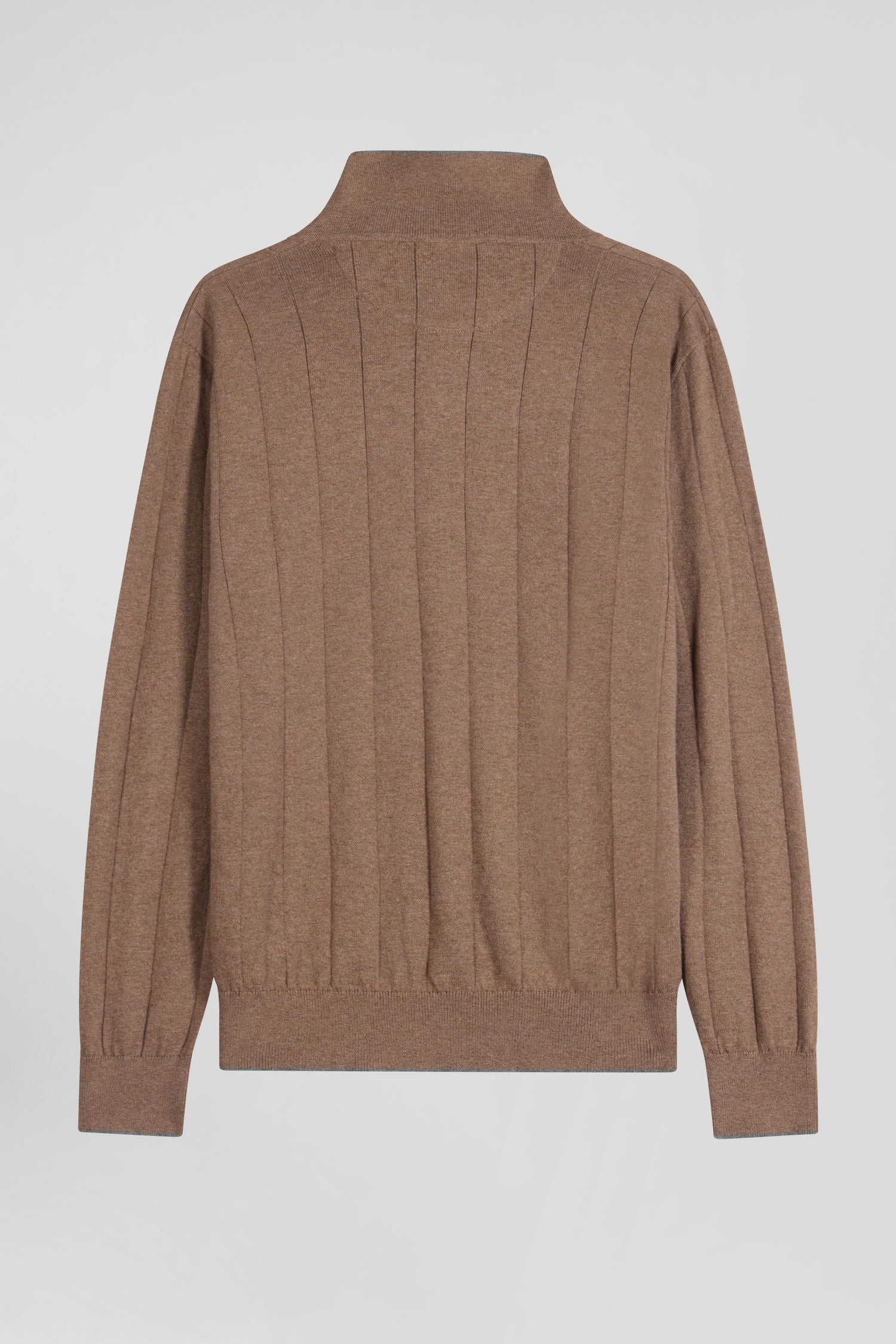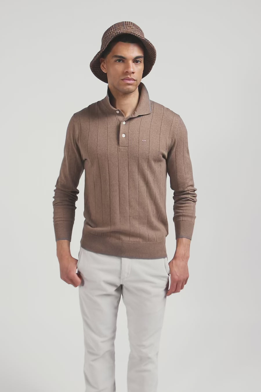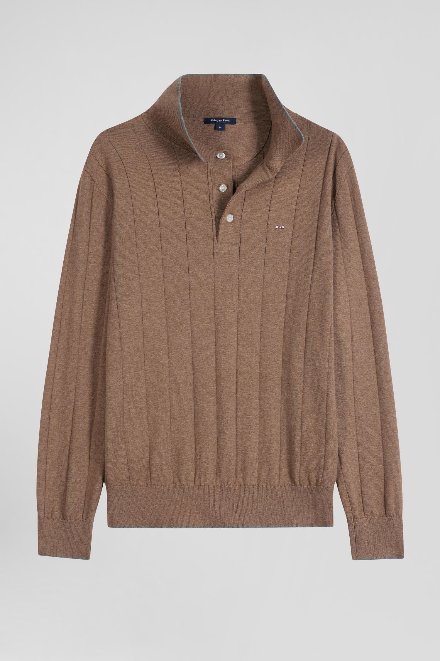 Regular brown cotton and cashmere jumper with rugby shirt collar
