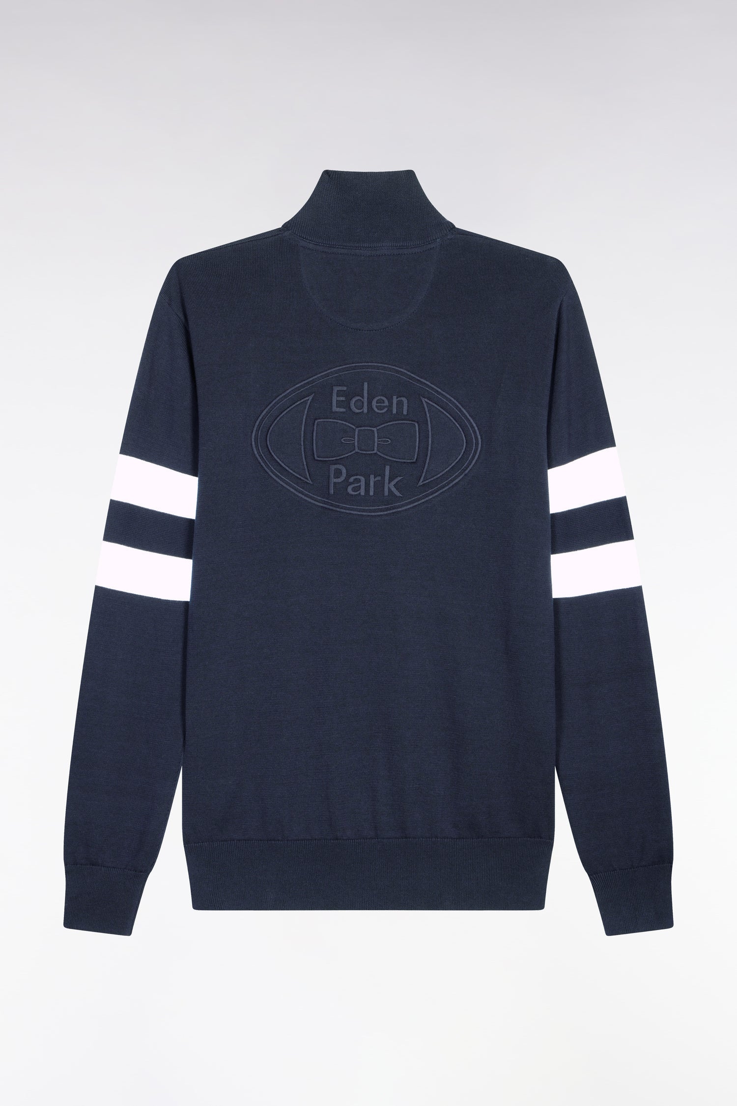 Pull col maillot en coton marine à double rayures manches