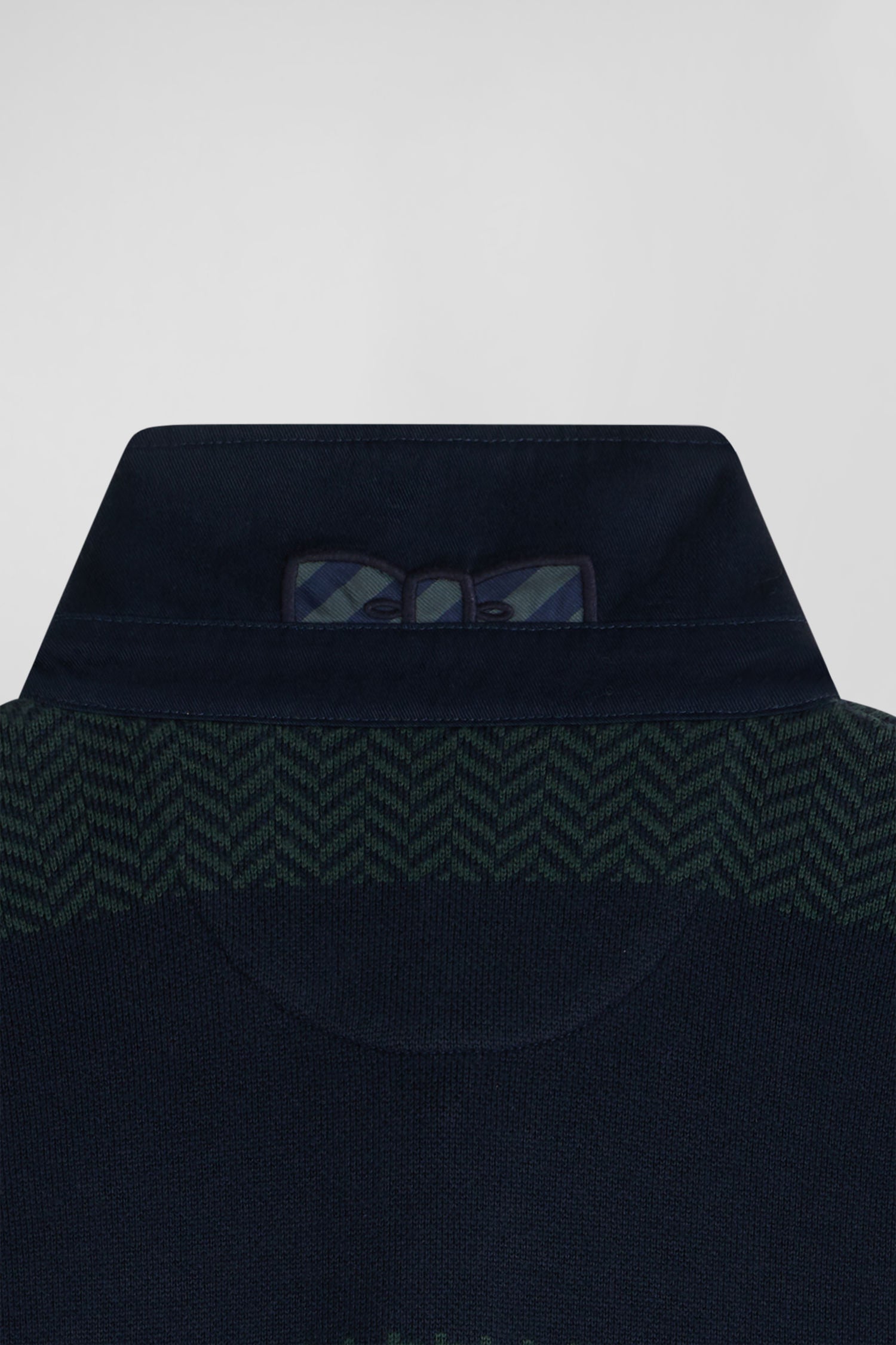 Regular green striped cotton jersey jumper with houndstooth jacquard and and rugby shirt collar