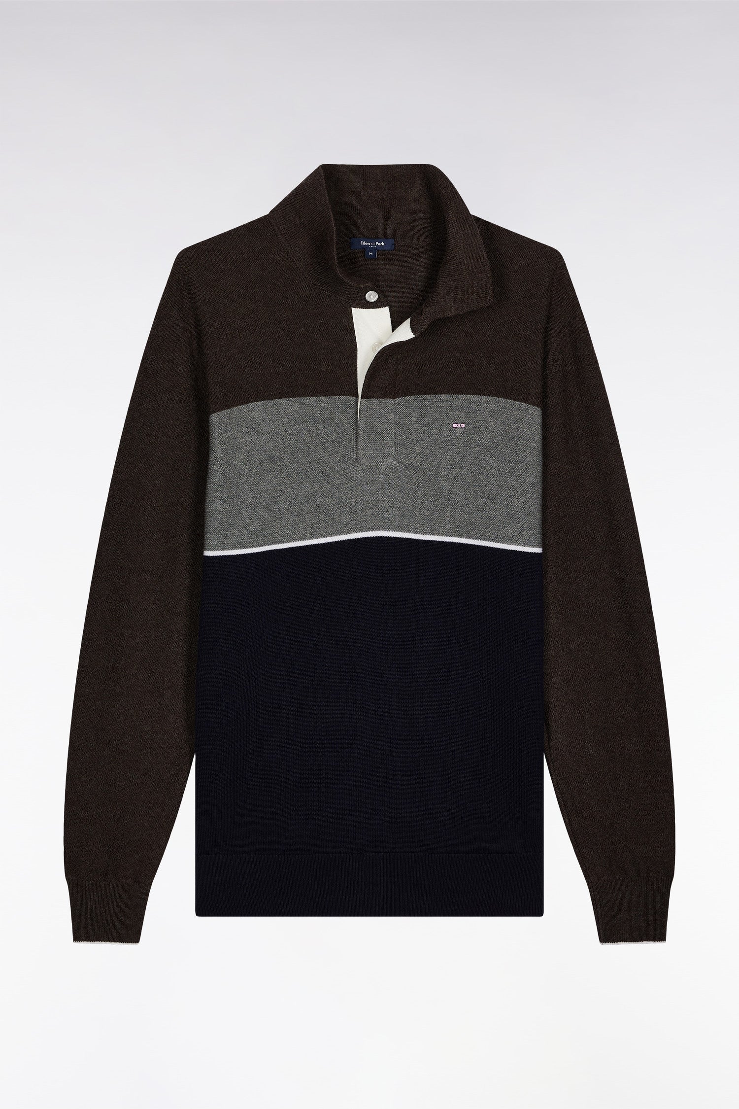 This jersey-neck sweater combines textures and meticulous finishing. Available in two colors with contrasting effects ideal for a sporty-chic look, it stylishly combines several types of stitches, testifying to the know-how of our French knitwear house.