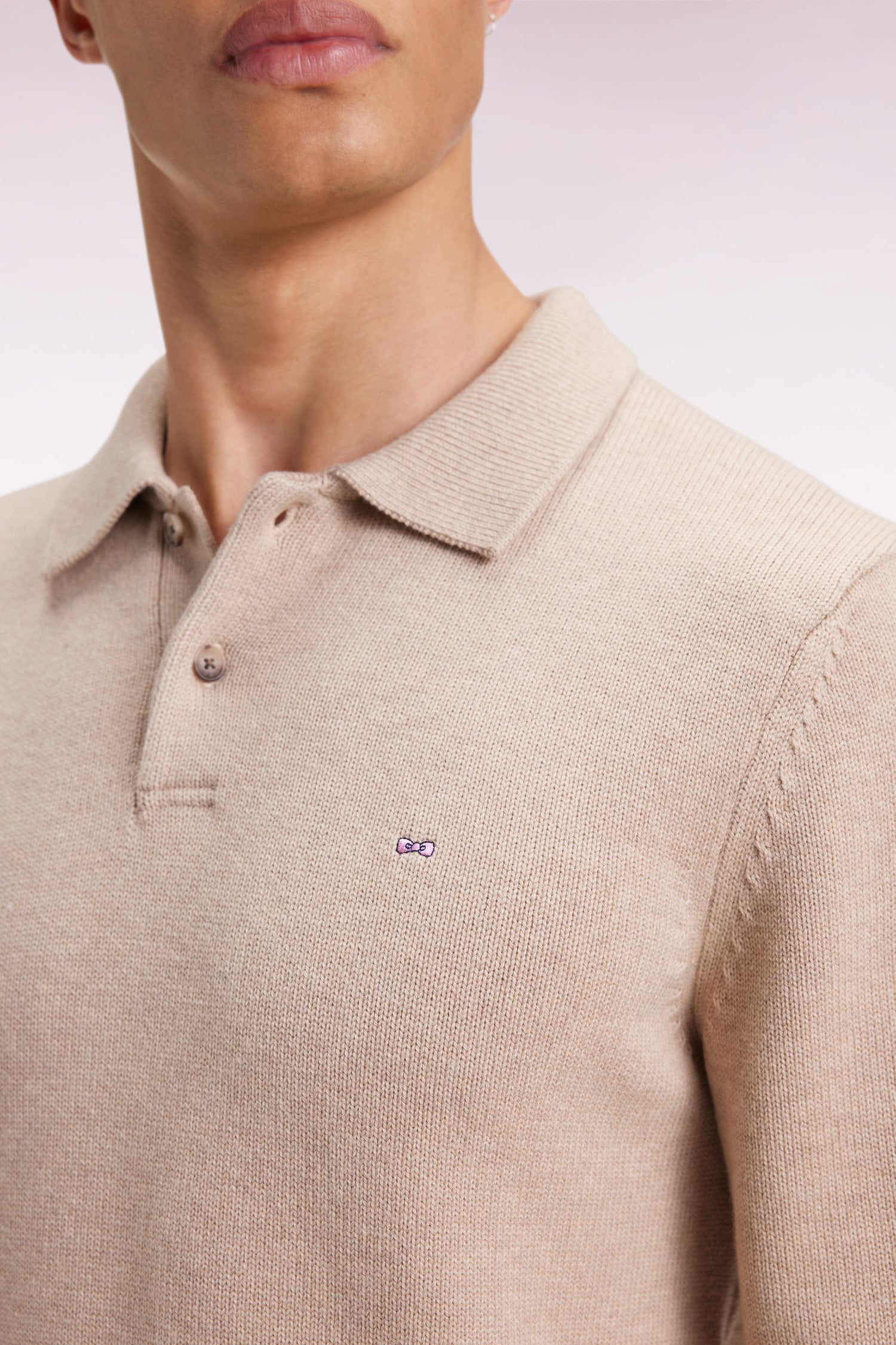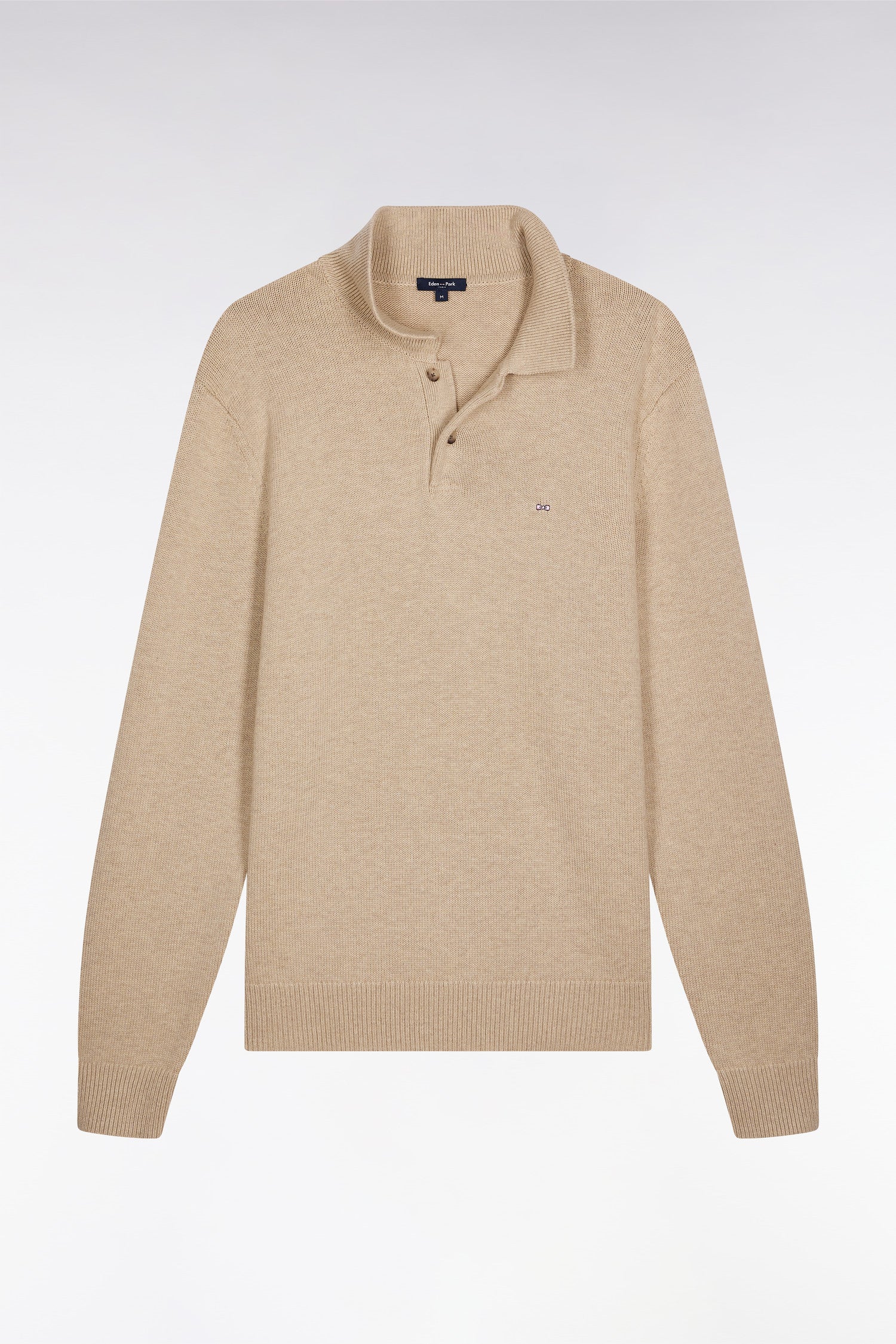 Inspired by the rugby wardrobe, designed for the city. A blend of casual elegance and sport-chic heritage, this jersey-neck sweater is crafted from a precious blend of wool and cotton, in a thick knit guaranteeing softness, warmth and breathability. Its straight cut and meticulous finishing touches, such as the 2-button placket and bow-tie embroidery on the chest, make it a mainstay of the Eden Park wardrobe. Available in beige, gray or navy to suit all tastes.