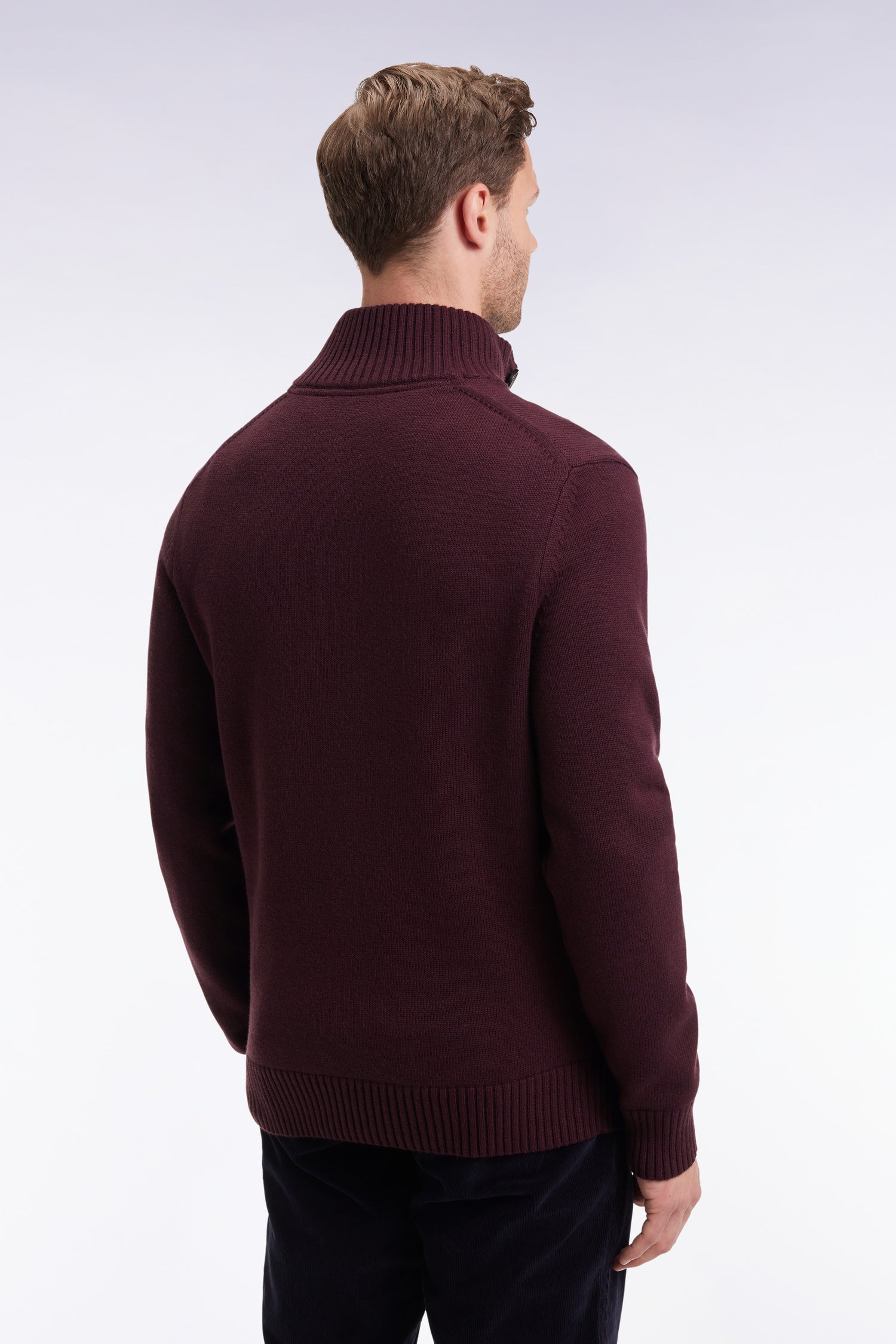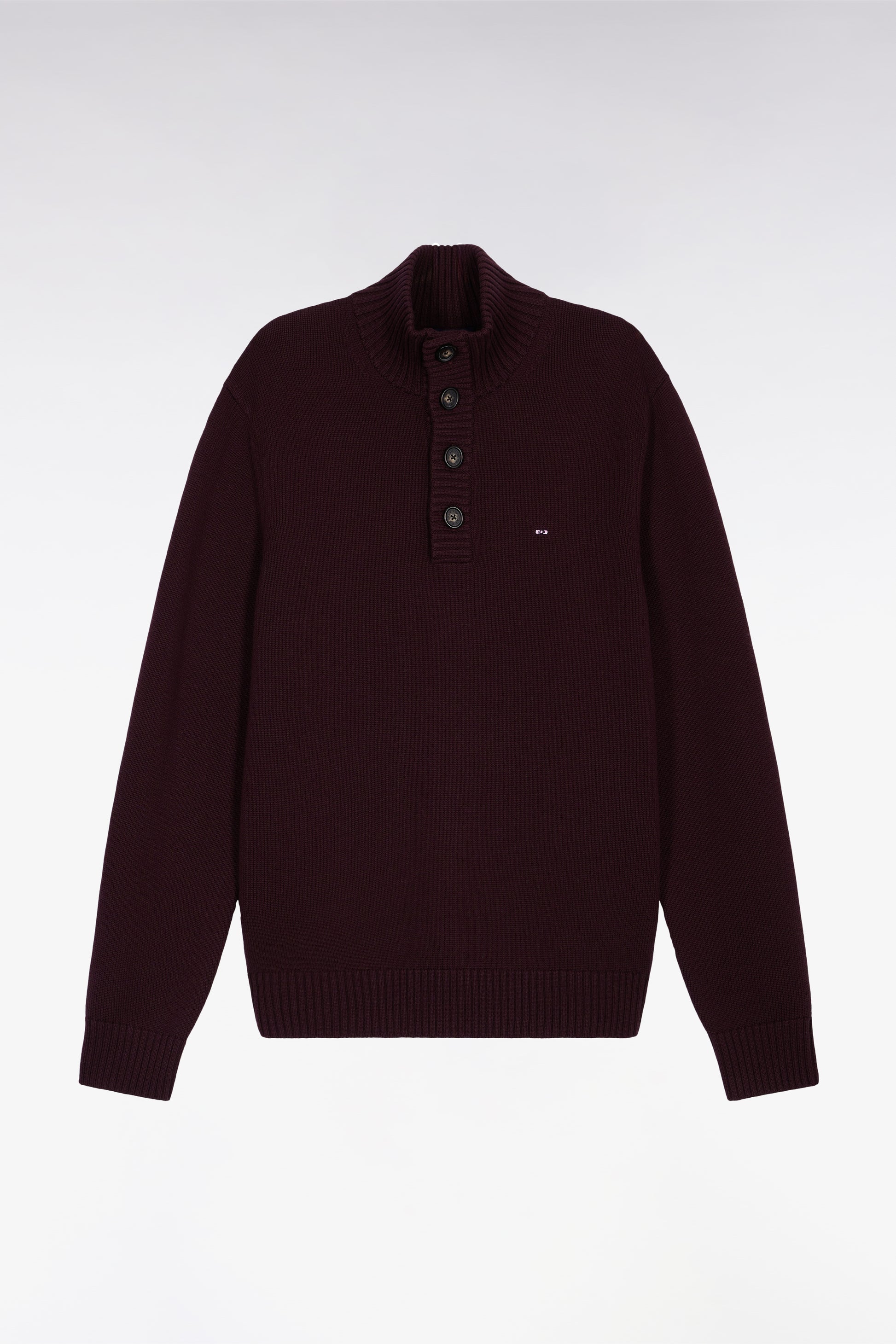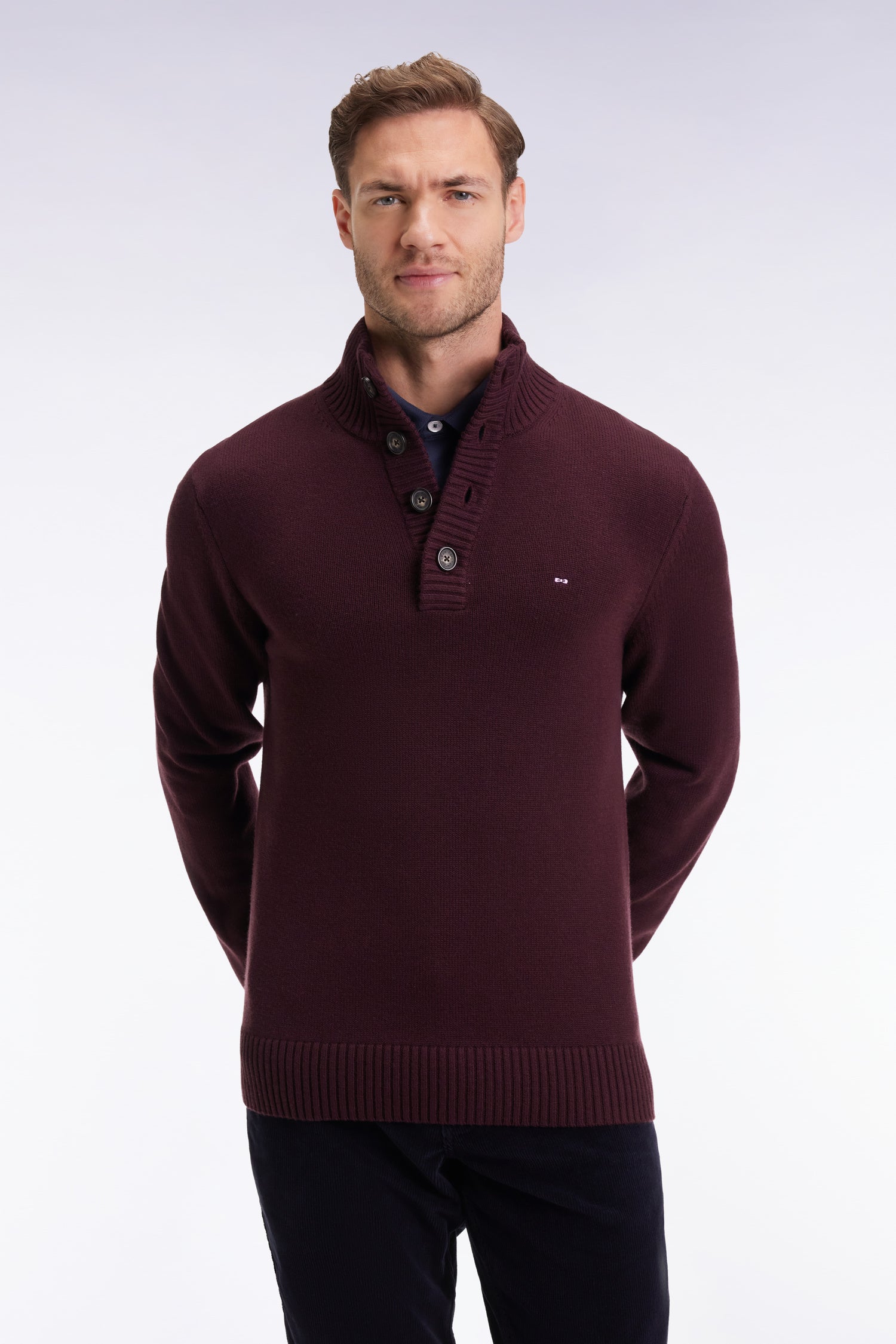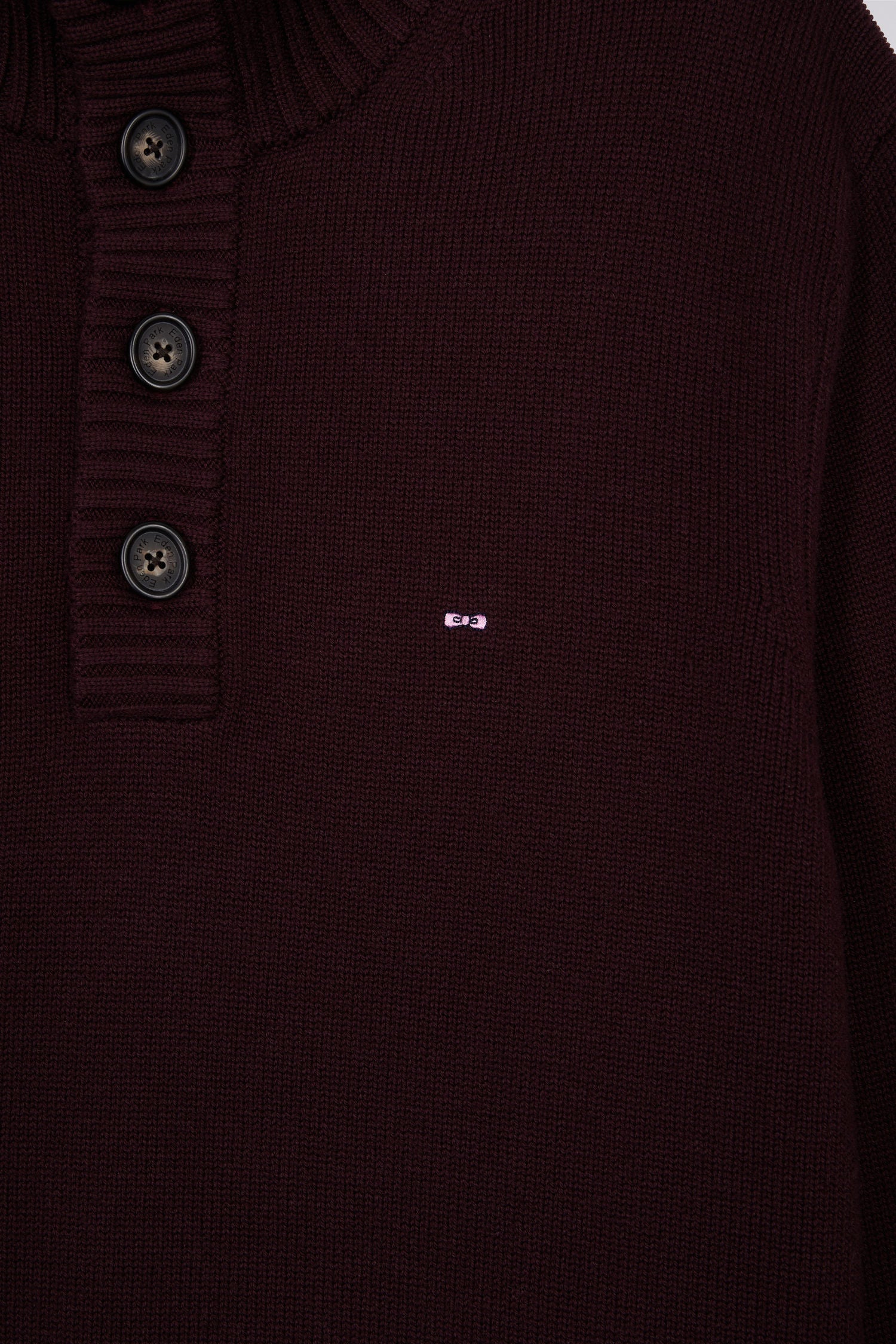 Designed for cooler days, this stand-up collar sweater is knitted in a thick knit of our signature wool-cotton blend, renowned for its durability and comfort. Its ribbed collar, fastened with four matching rugby buttons, emphasizes a structured look, between sport-chic heritage and timeless elegance.