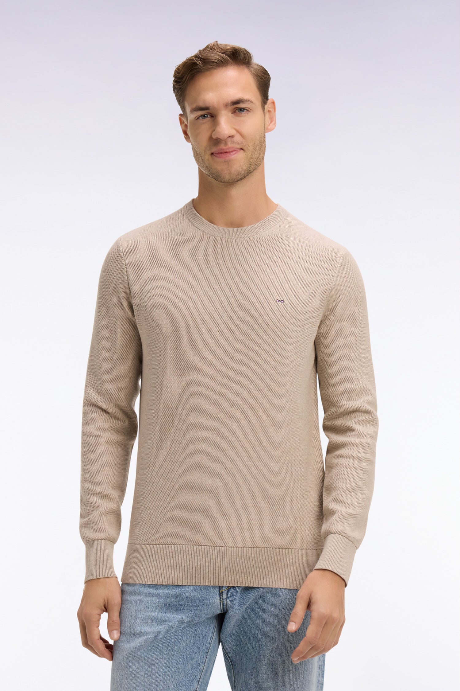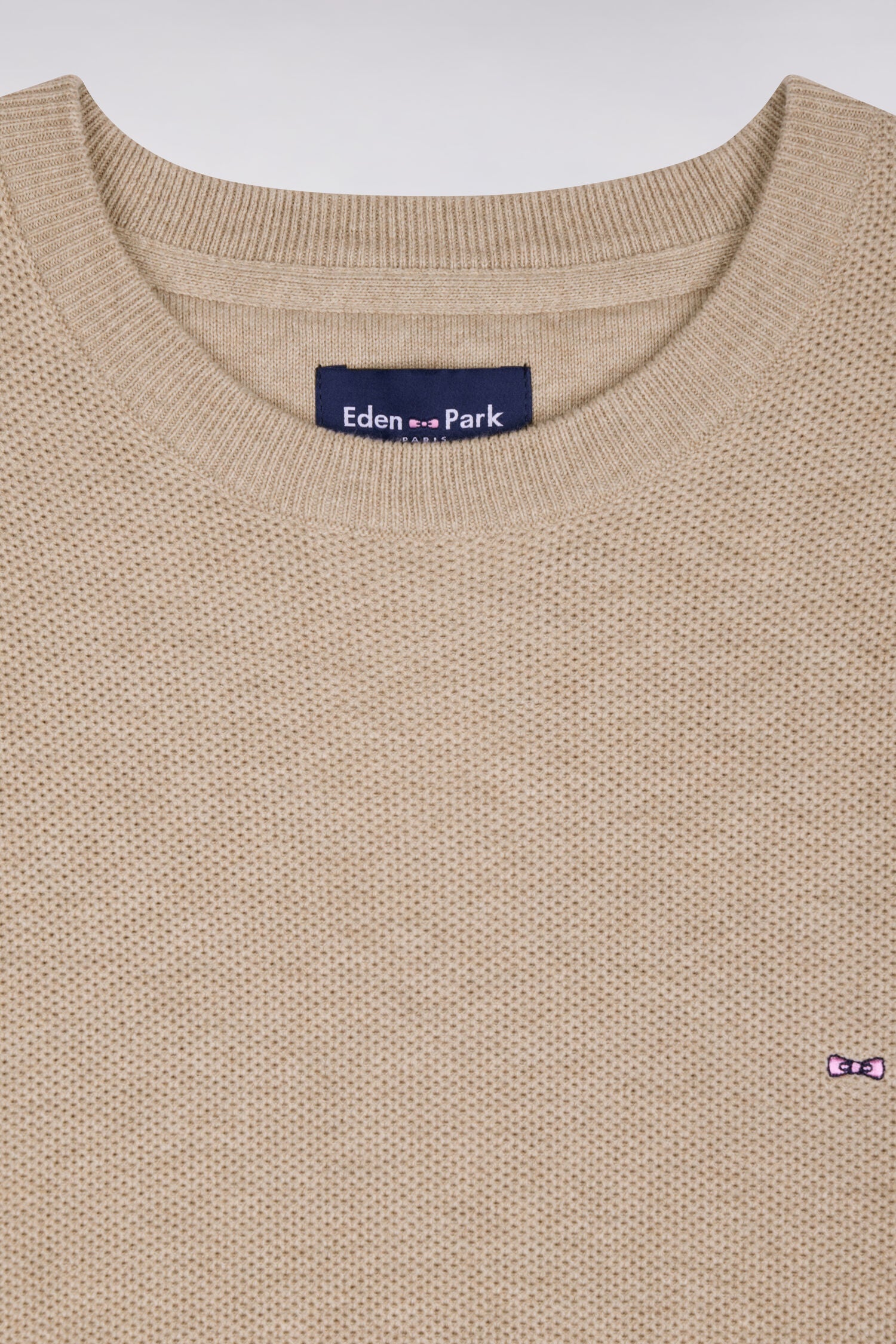 Pull col rond en coton beige