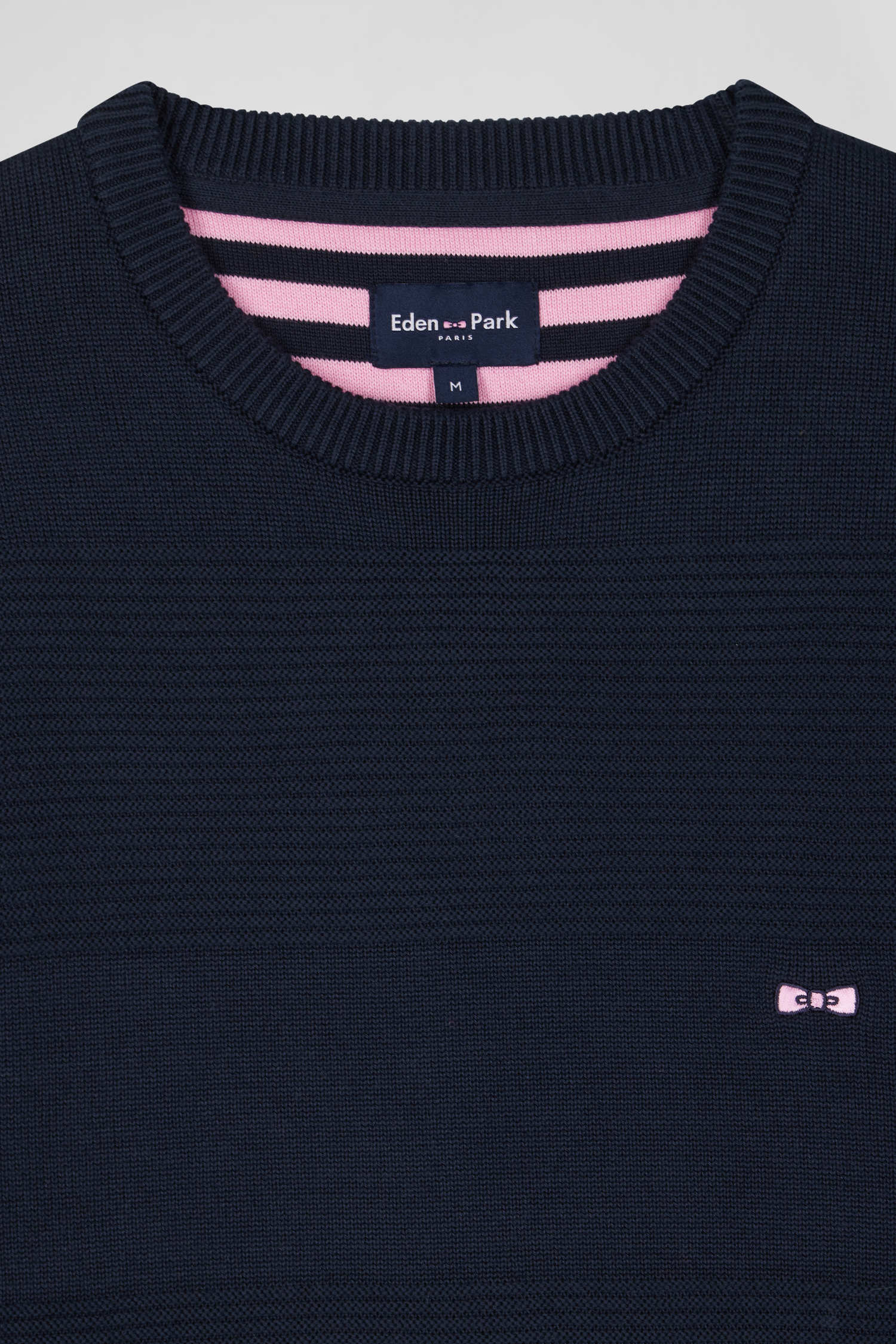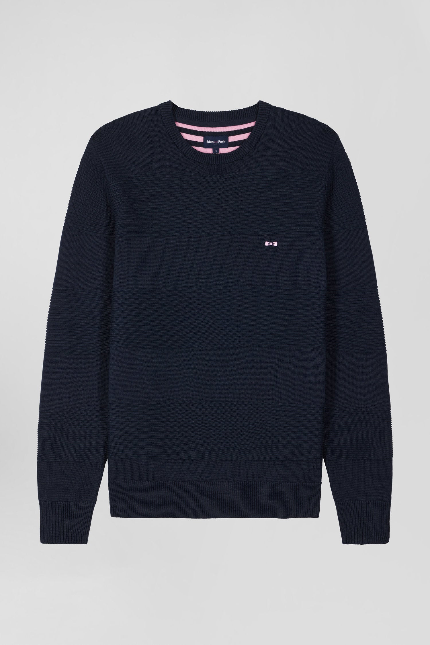 Discover the comfort of our round-neck sweater, combining the soft feel of cotton with a classic straight cut for a streamlined silhouette. Varied stitch knitting adds a discreet touch of sophistication inspired by rugby jersey stripes. Ideal for elegant layering or worn on its own, this men's sweater is an ideal choice for all occasions.