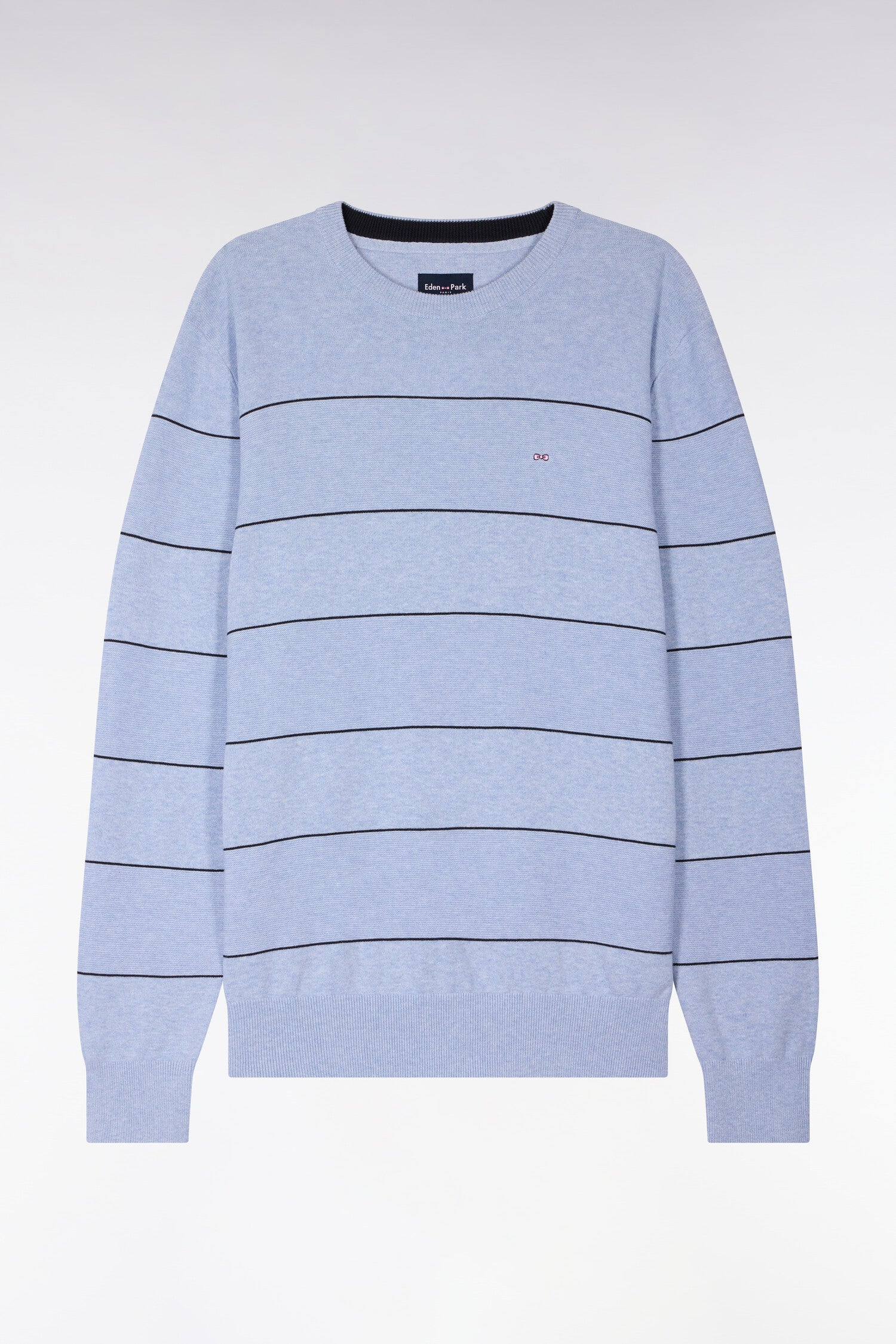 Pull col rond en coton ciel rayé