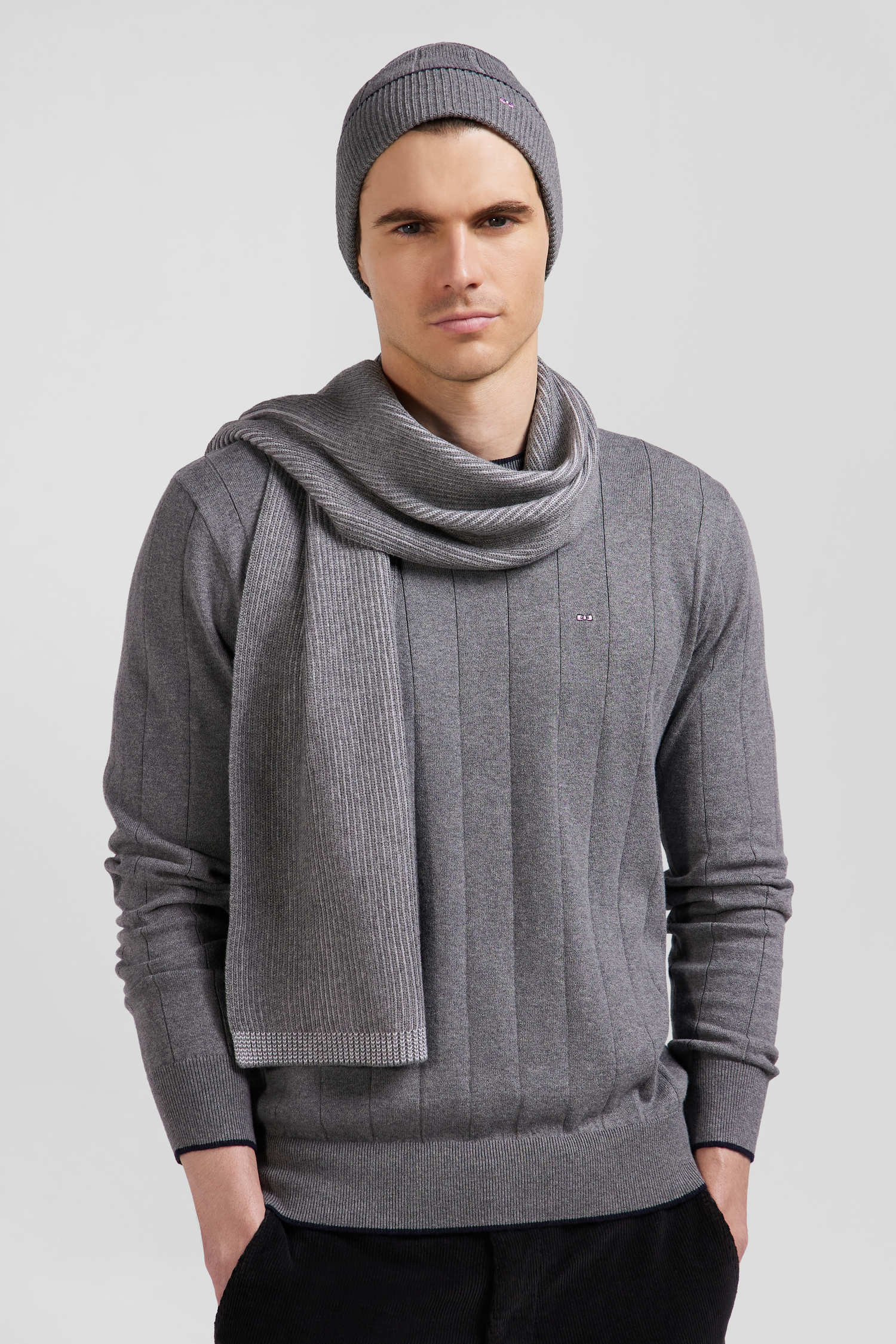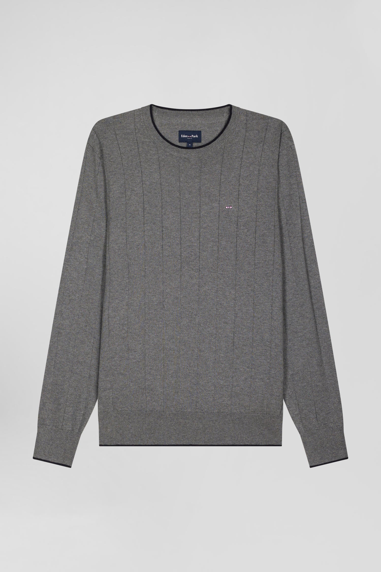 Regular grey cotton and cashmere crew neck jumper