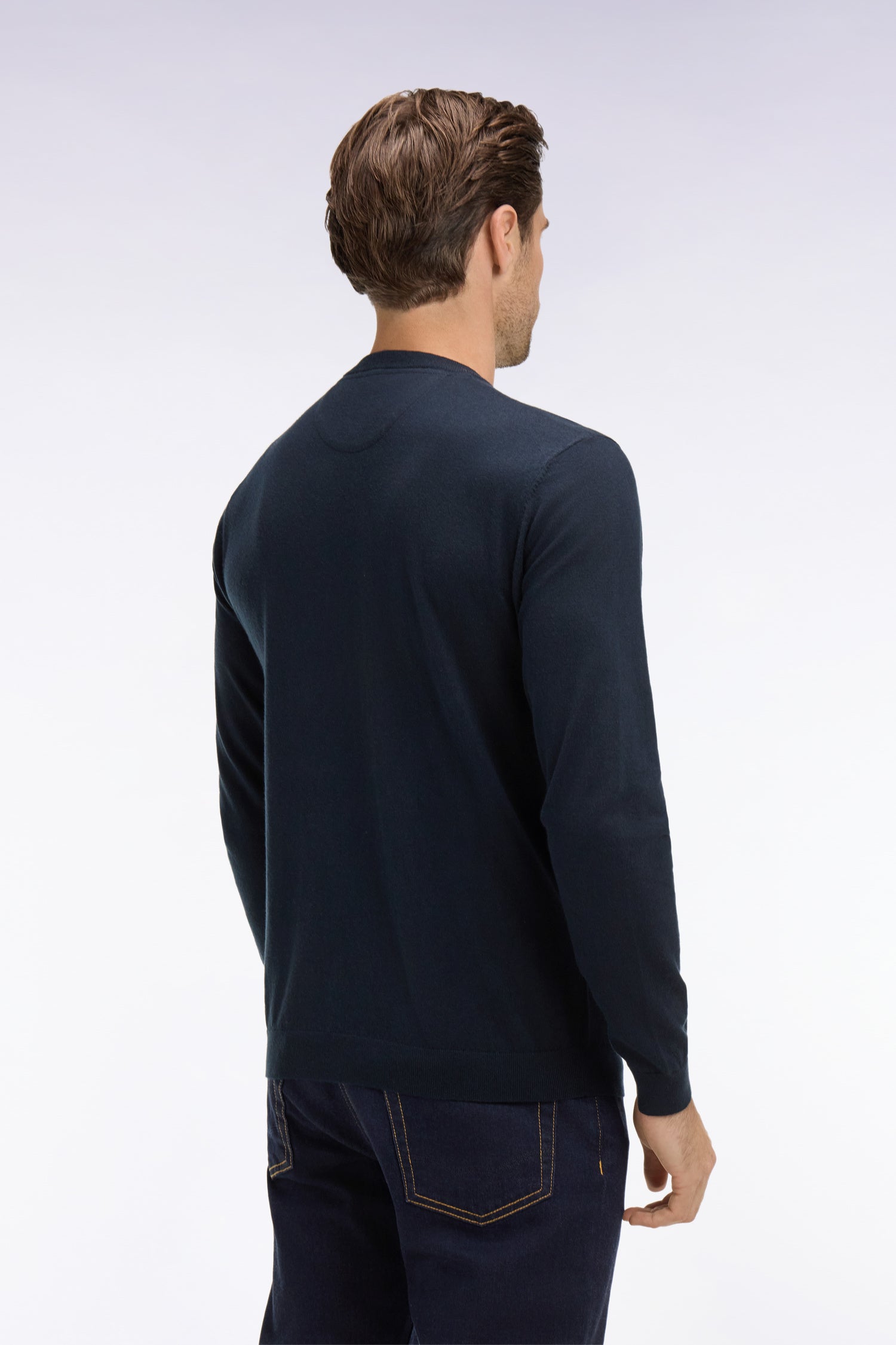 Le mélange de coton, soie et polyamide assure à ce pull col rond confort et douceur. Rose, marine, ciel ou beige, ce pull homme en point jersey promet élégance et liberté de mouvement. Ses bords-côtes tricotés ton sur ton et ses finitions soignées, dont notre iconique broderie nœud papillon rose, parachèvent cet essentiel masculin. Un élégant pull à col polo coordonné est également proposé dans cette collection printemps-été.