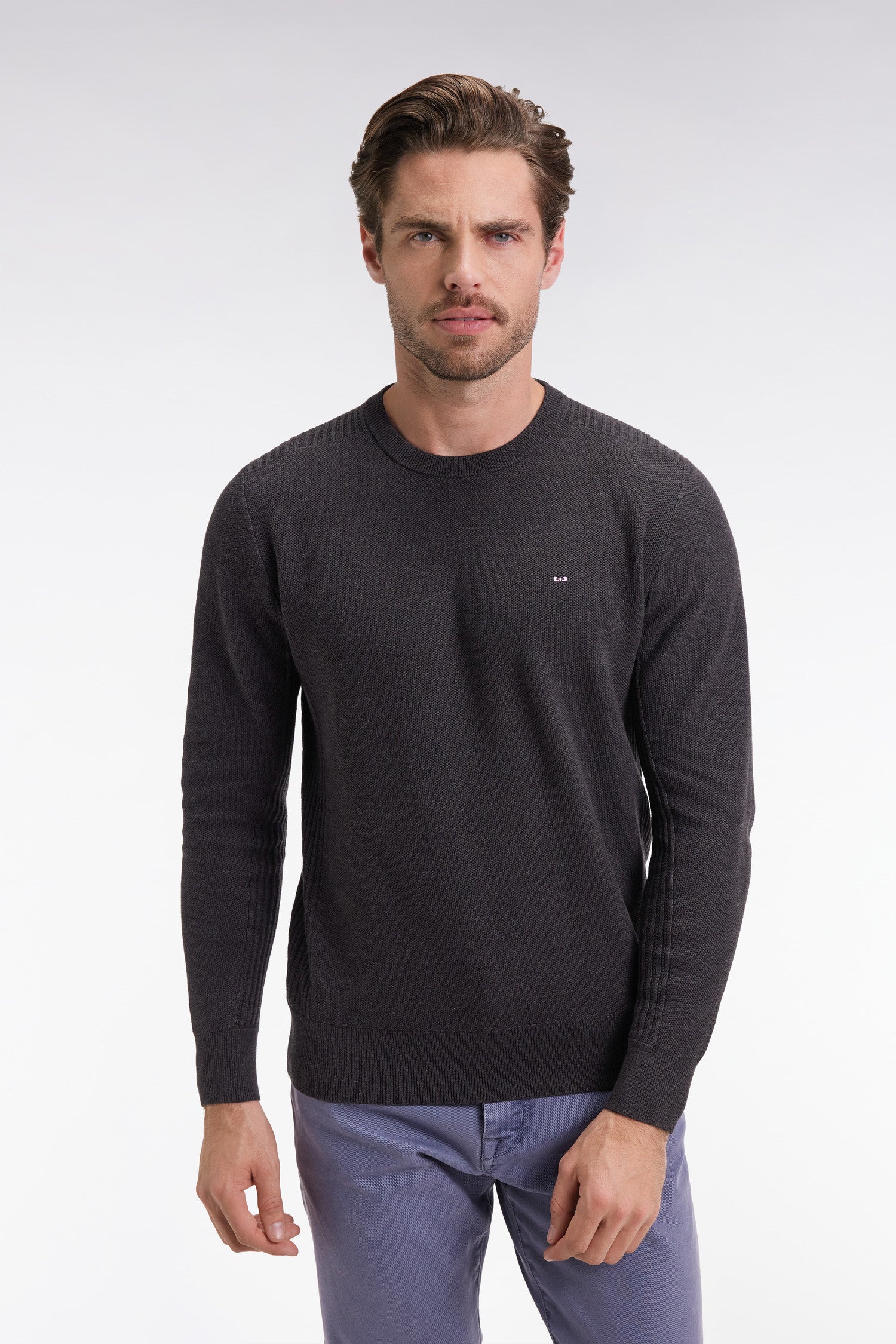 Round-neck sweater in dark grey honeycomb cotton