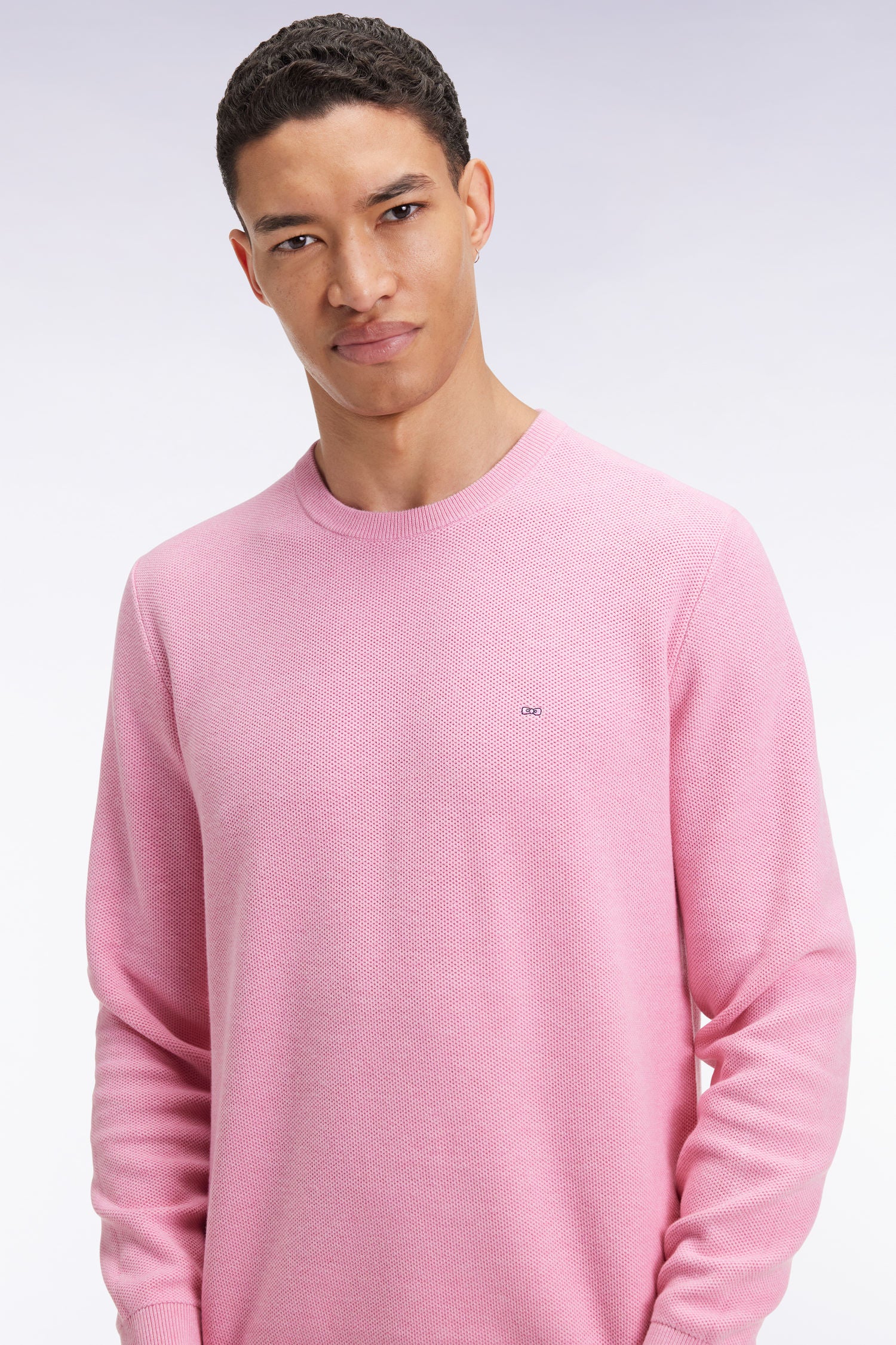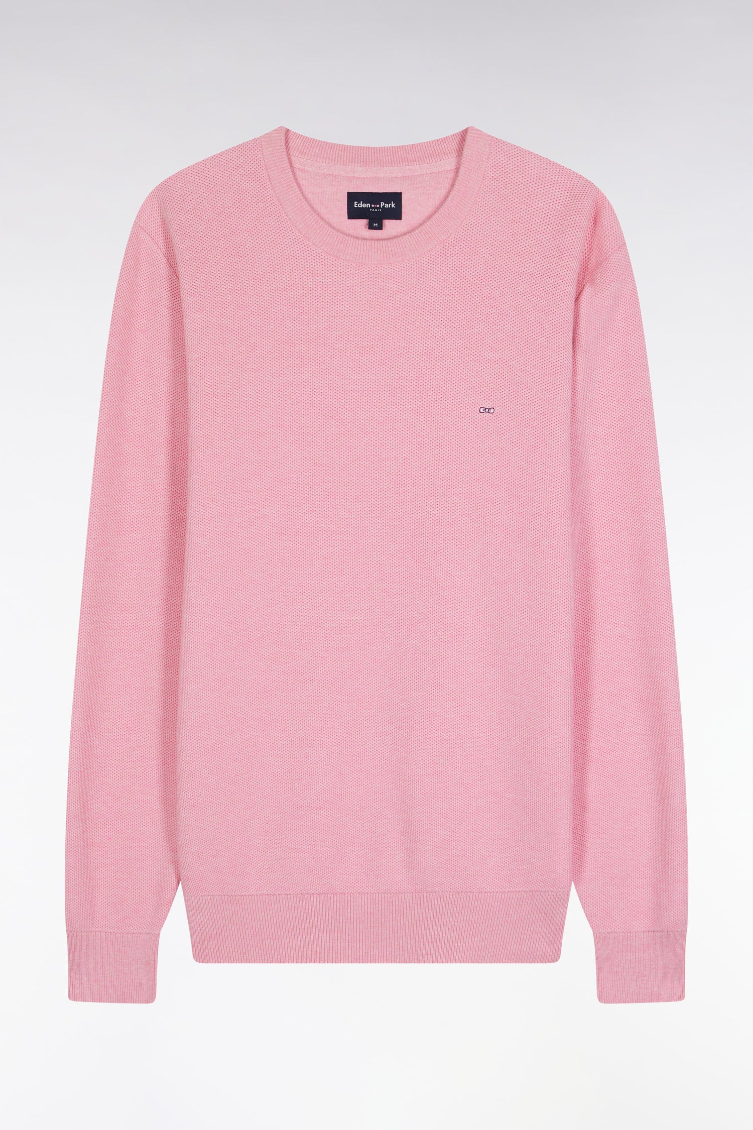 A slightly irregular texture and a chic-casual spirit perfectly describe this round-neck sweater in honeycomb cotton. Its straight cut and bow-tie embroidery on the chest give it a neat look without overdoing it, true to Eden Park DNA. The ribbed collar and sleeve cuffs contrast neatly with the slightly more whimsical honeycomb knit. An easy-going piece, ideal for seasonal layering. This masculine round-neck sweater is part of a complete wardrobe comprising several knitwear pieces with the same characteristics to suit all styles and morphologies