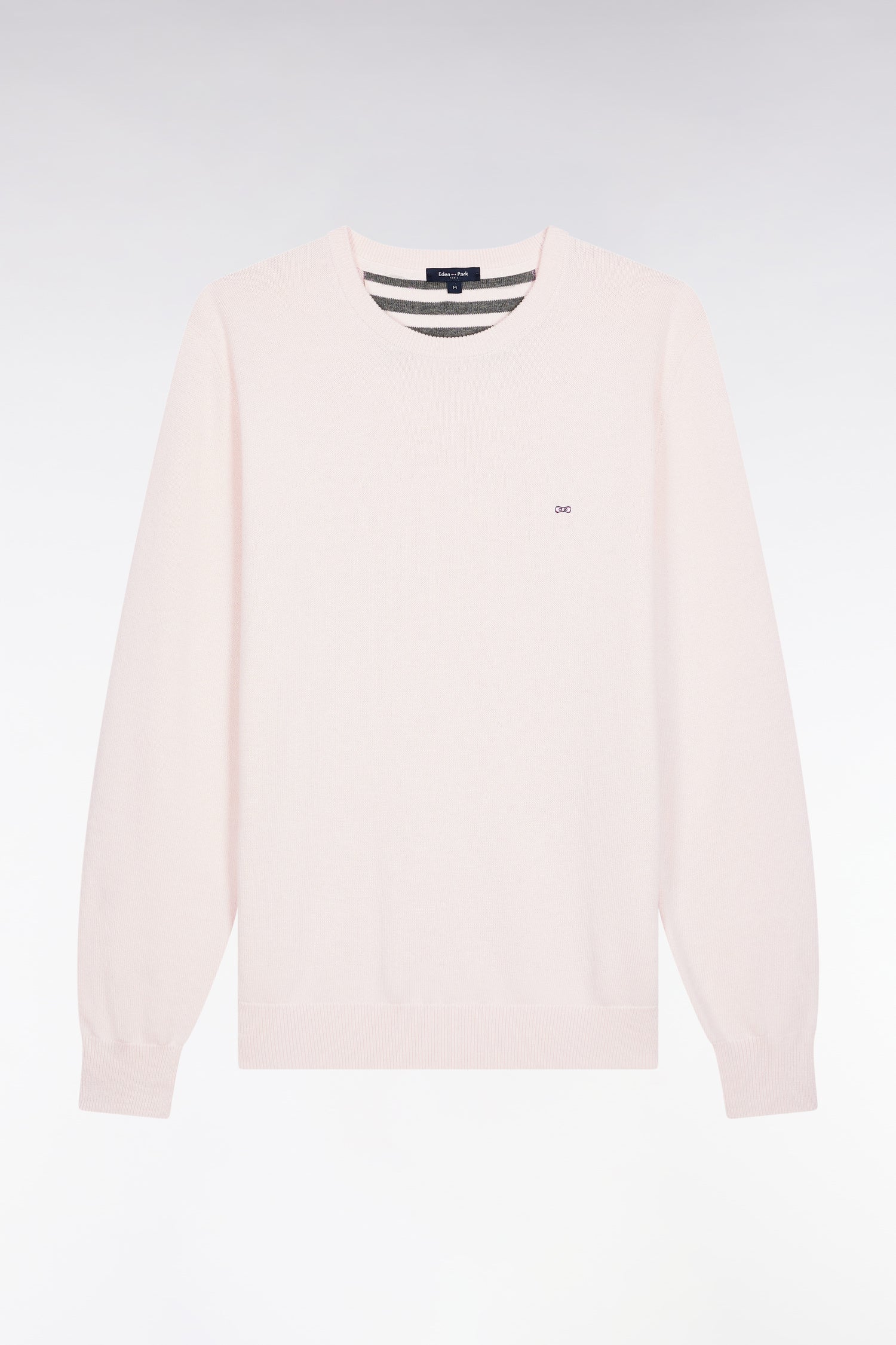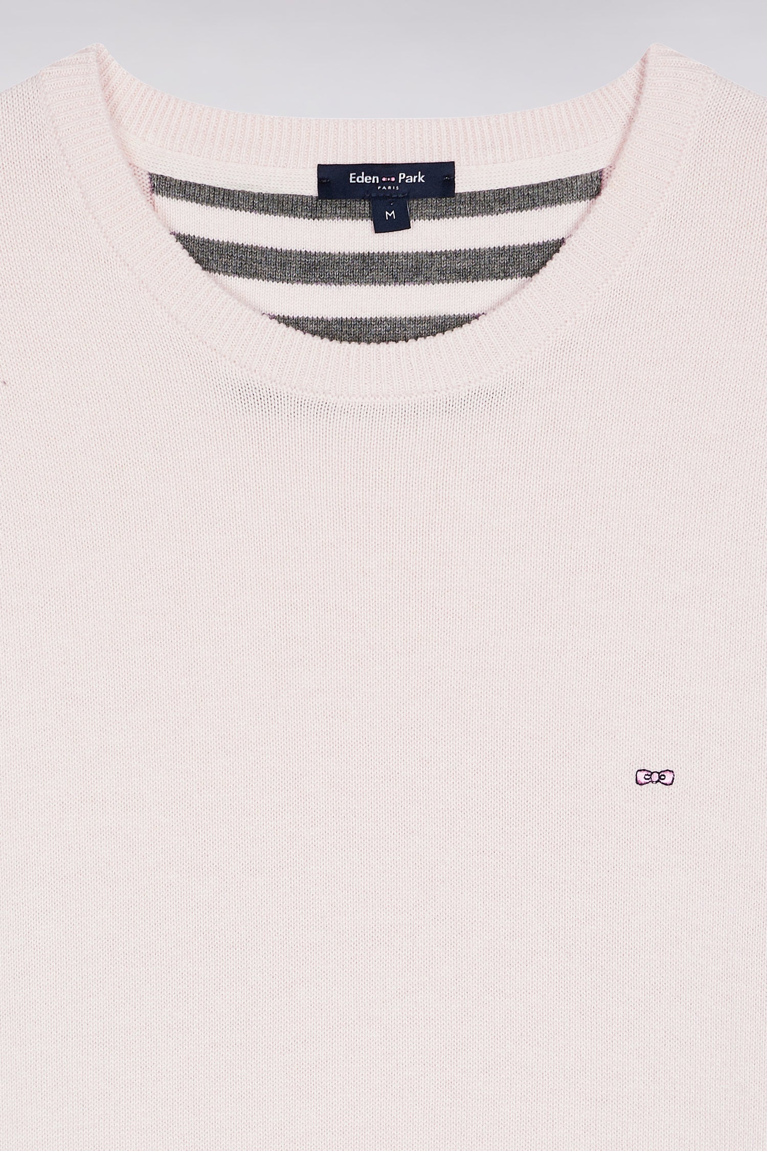 This round-neck sweater plays the timeless card with its straight cut and wool/cotton blend knit. A bow-tie embroidery on the chest and a rugby-striped half-moon inside discreetly mark its place in the Eden Park wardrobe. Easy to match with a shirt or T-shirt, this sweater comes in a rich palette of colors for all your seasonal silhouettes.