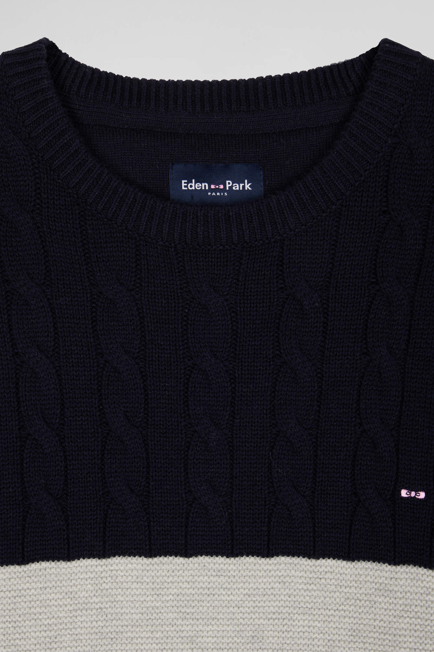 • Embroidered bow tie emblem