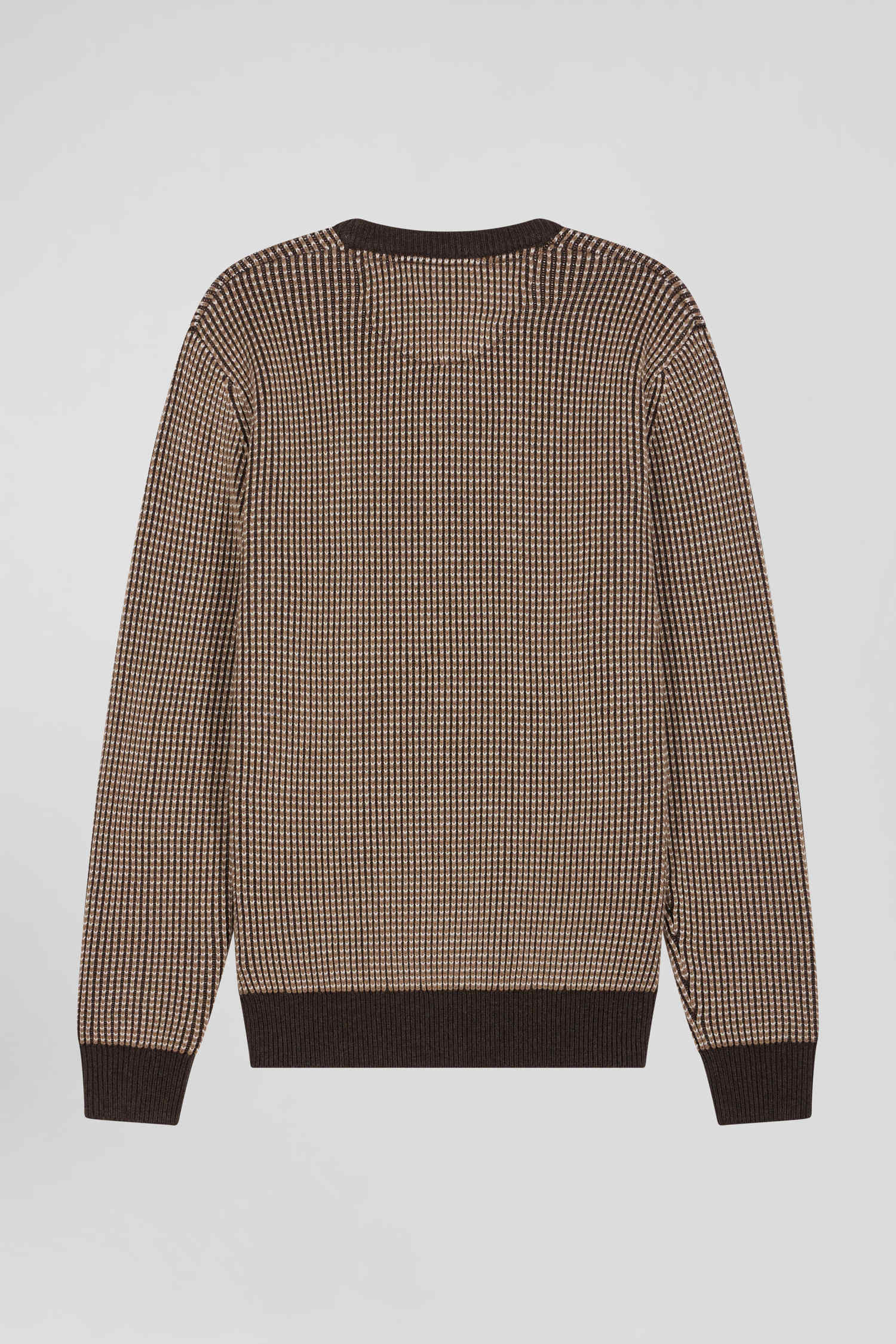Regular brown wool and cotton crew neck jumper