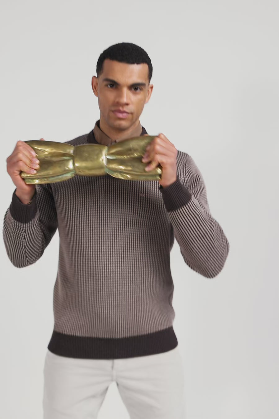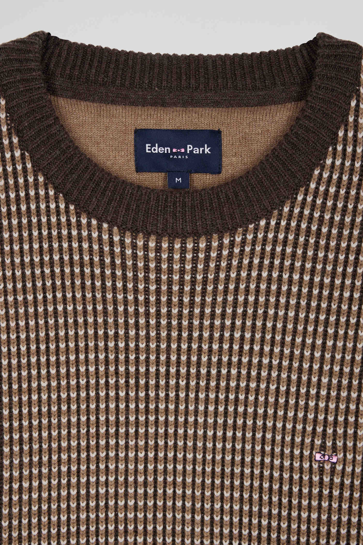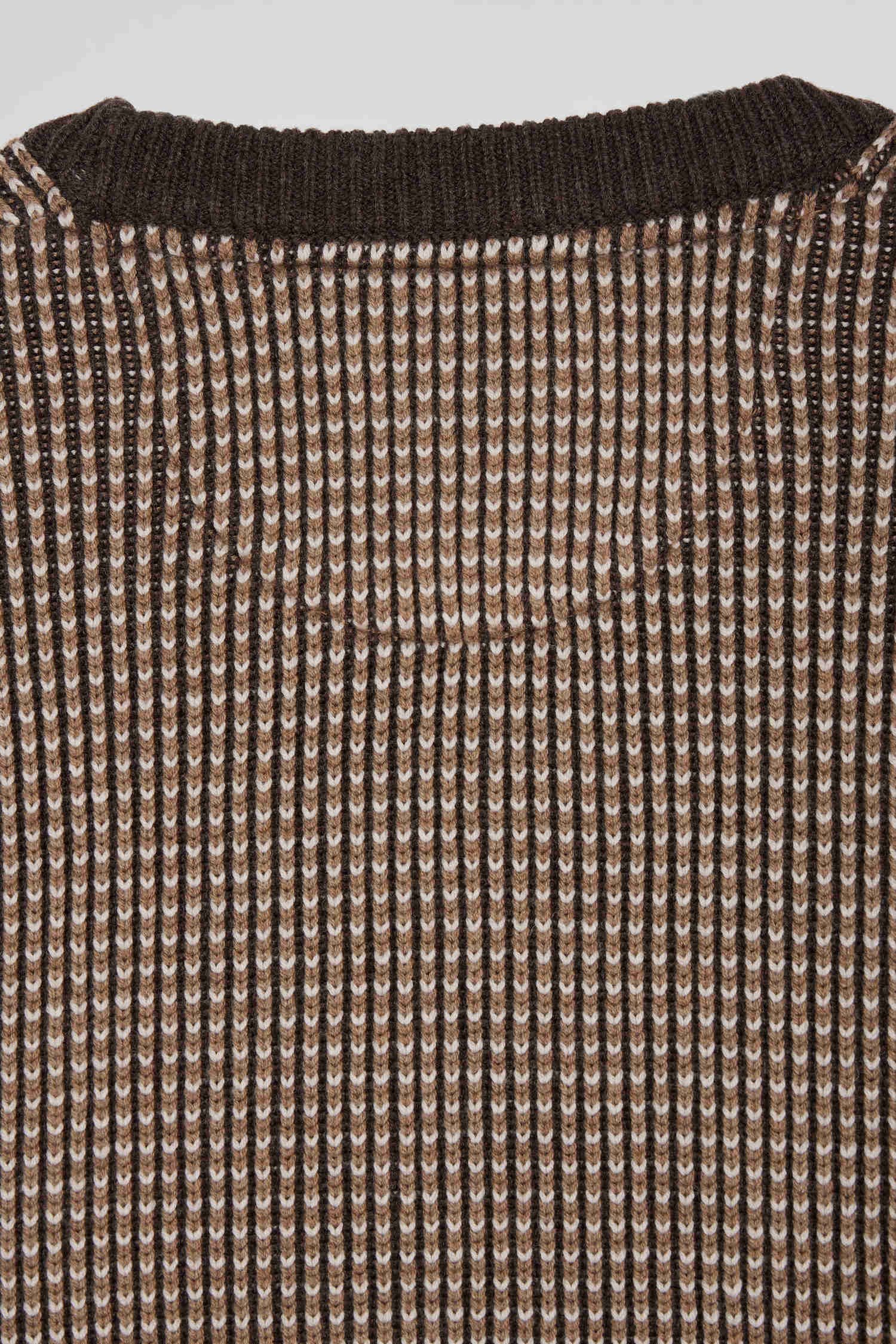 This men's round-neck sweater features contrasting knitwear with a tricolor effect. Its English rib knit gives this winter sweater a touch of originality. Perfect for adding a unique visual dimension to your outfit, this wool and cotton sweater in our timeless colors combines comfort and style with elegance.