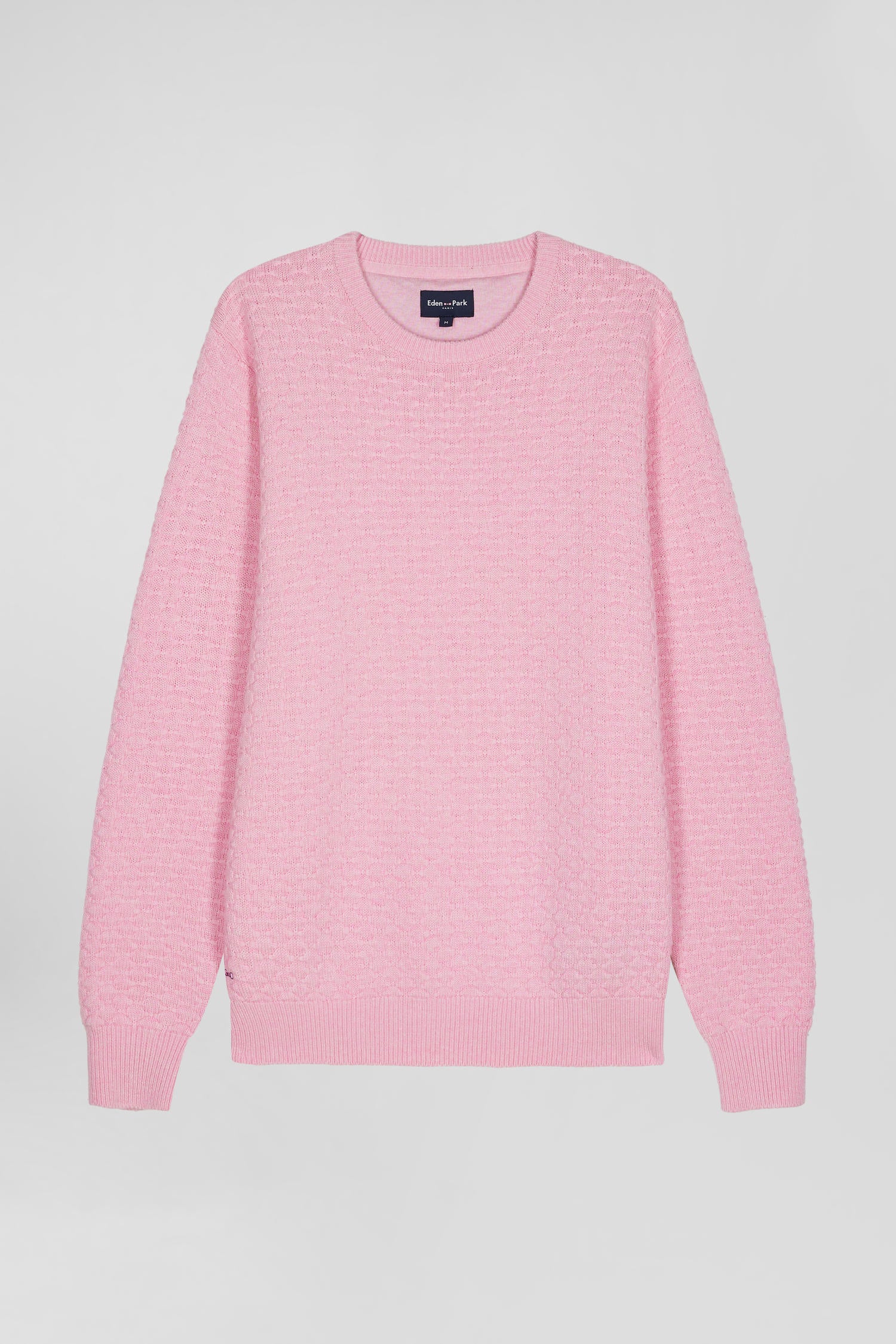 Our round-neck sweater, crafted from a blend of wool and cotton fibers, features a textured micro bow-tie motif, the distinctive Eden Park emblem. This exclusive knit revisits our logo in a subtle, elegant way, for an allover effect that combines discretion and character. This soft sweater, available in 3 colors, is a celebration of our House's identity and masculine elegance.