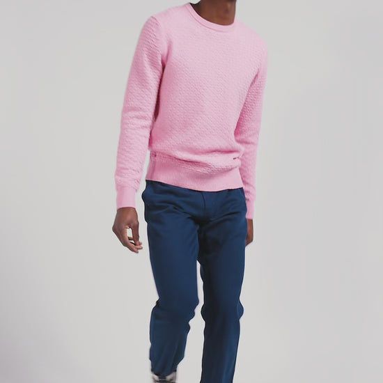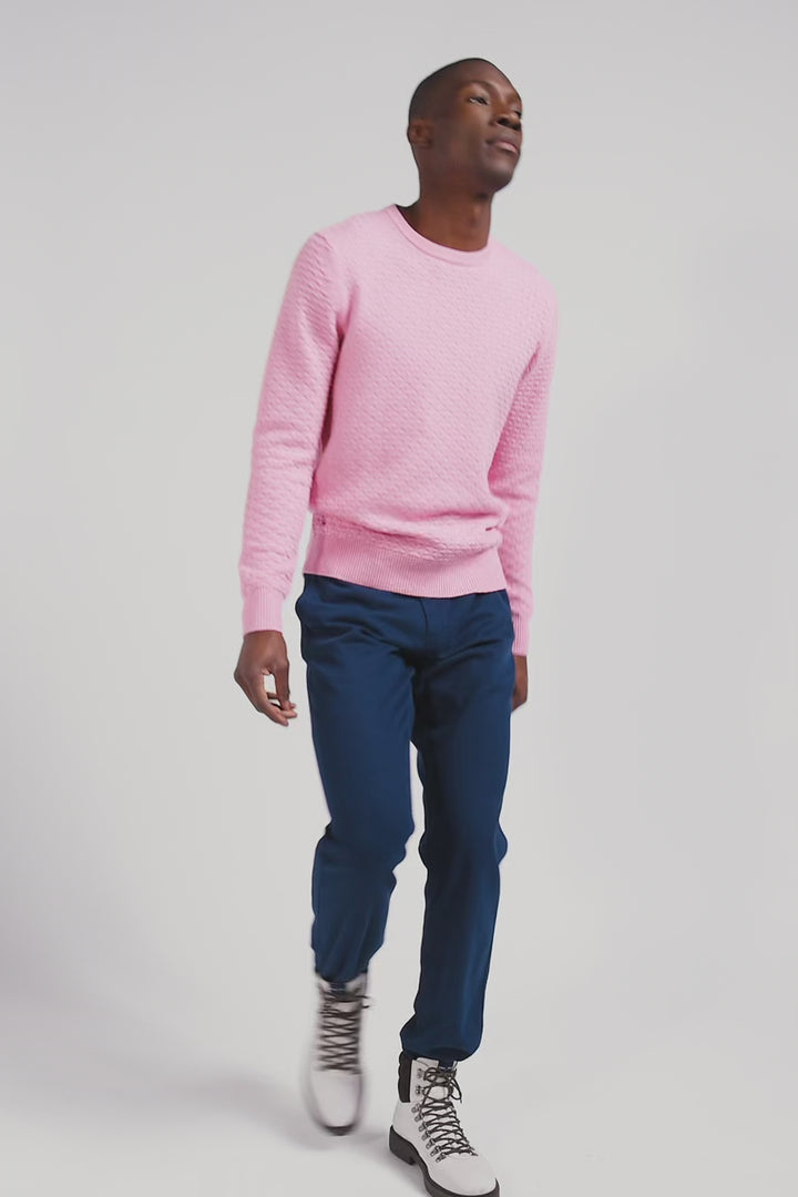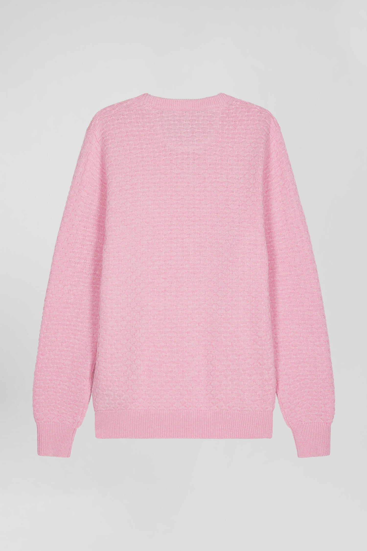 Regular pink wool and cotton crew neck jumper with micro bow tie effect