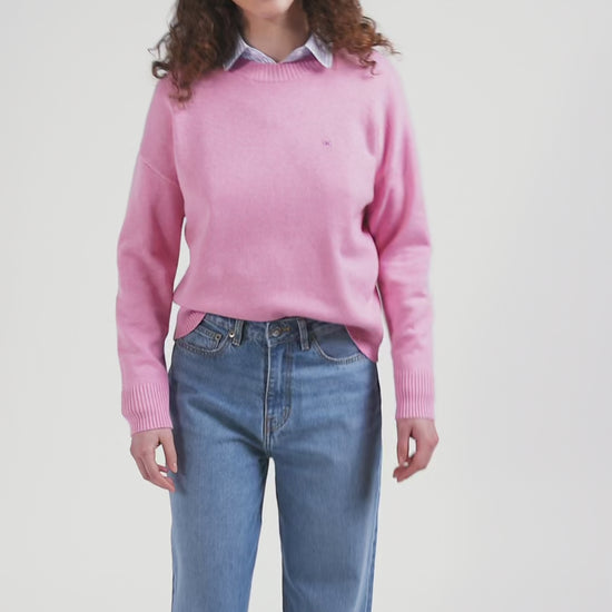 Relax pink wool and cotton crew neck jumper