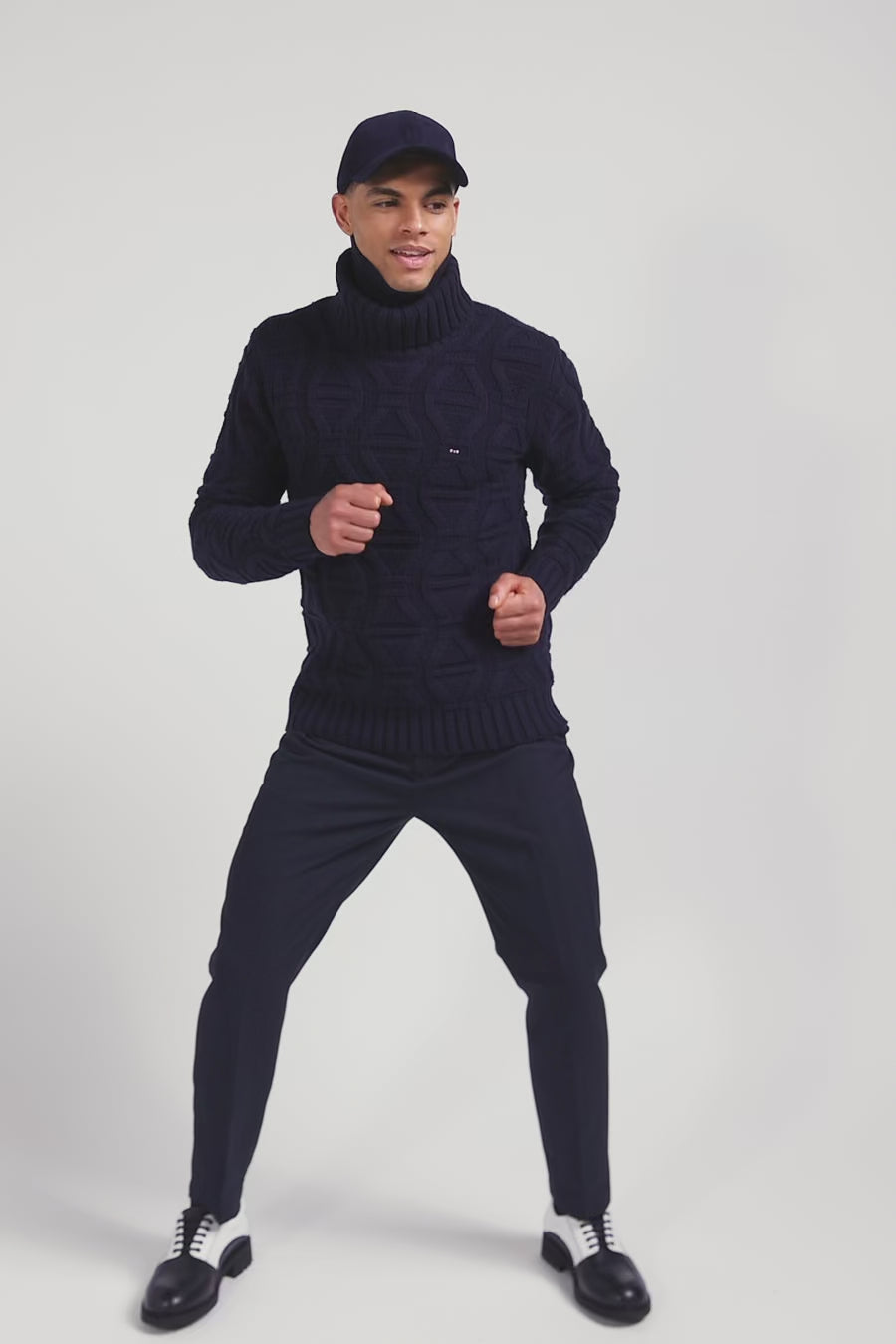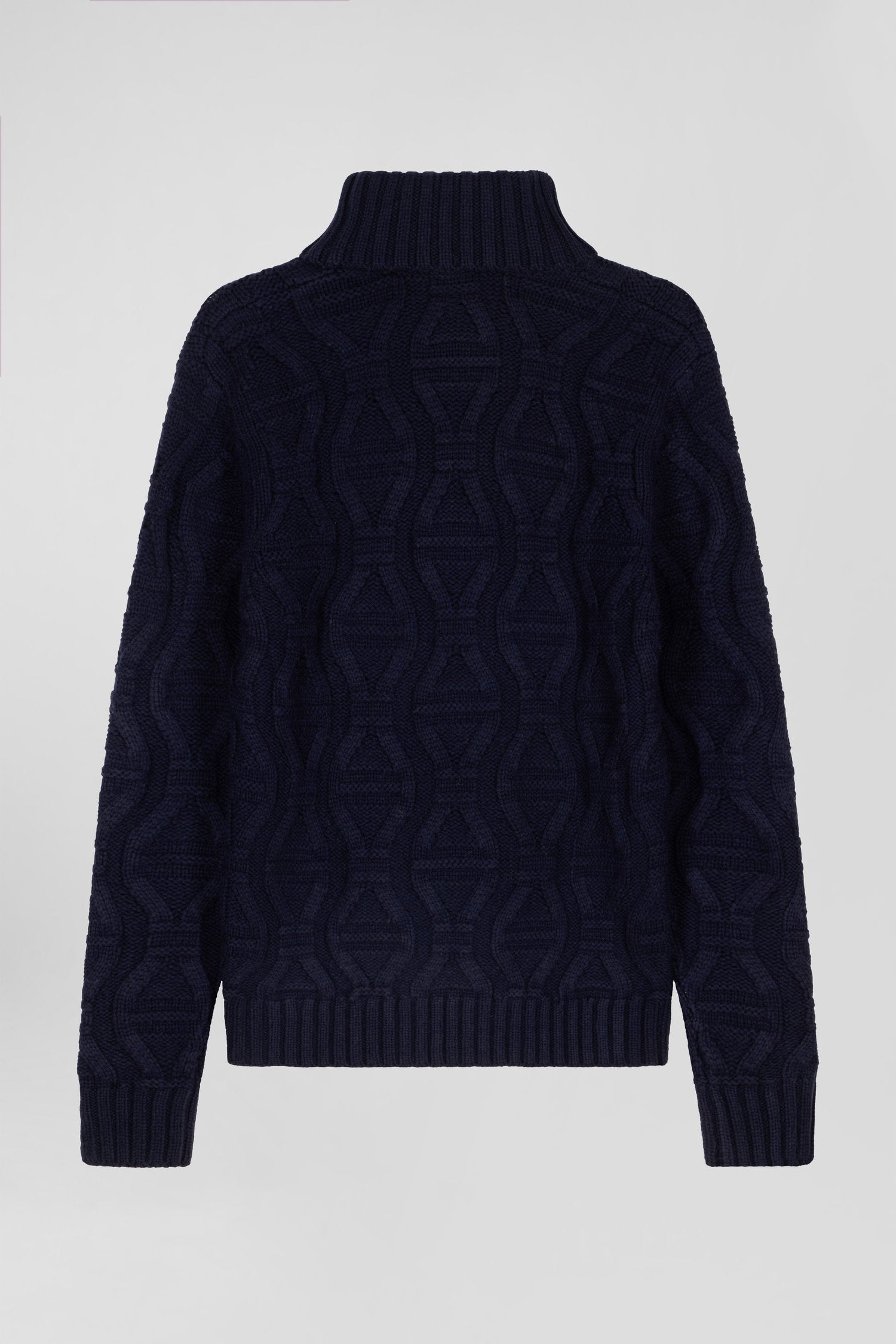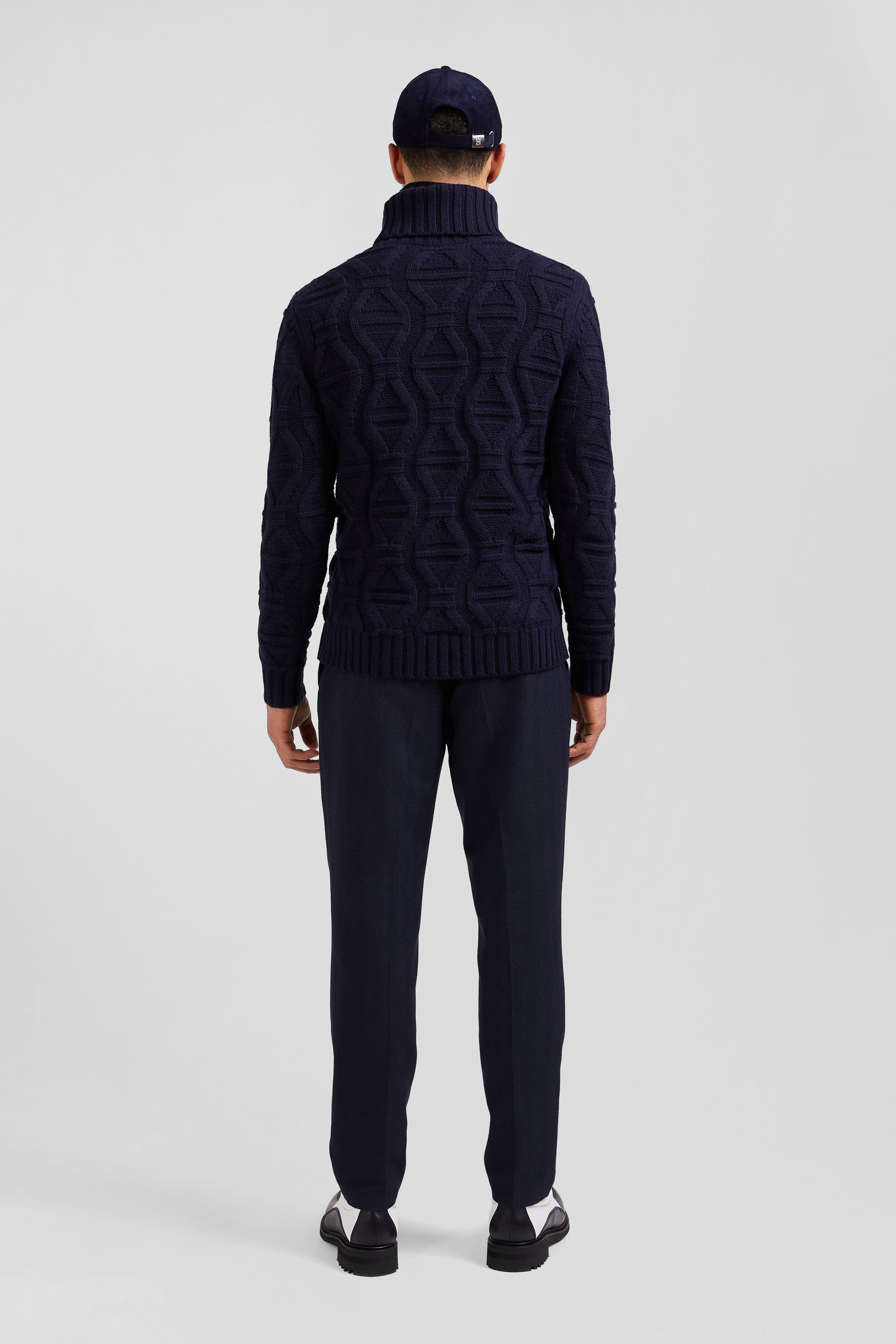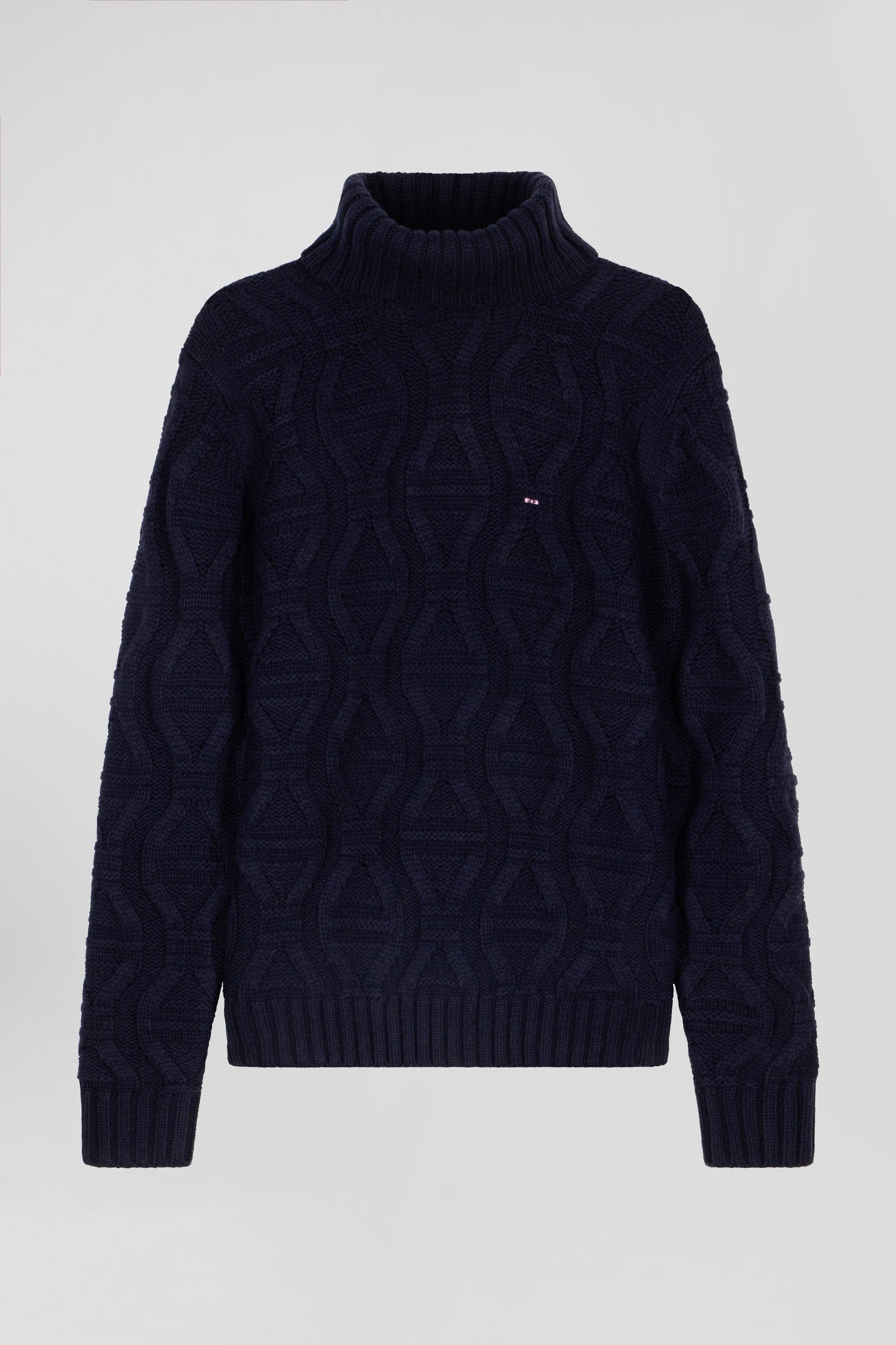Regular navy blue virgin wool and recycled polyamide turtleneck jumper with 3D knitting
