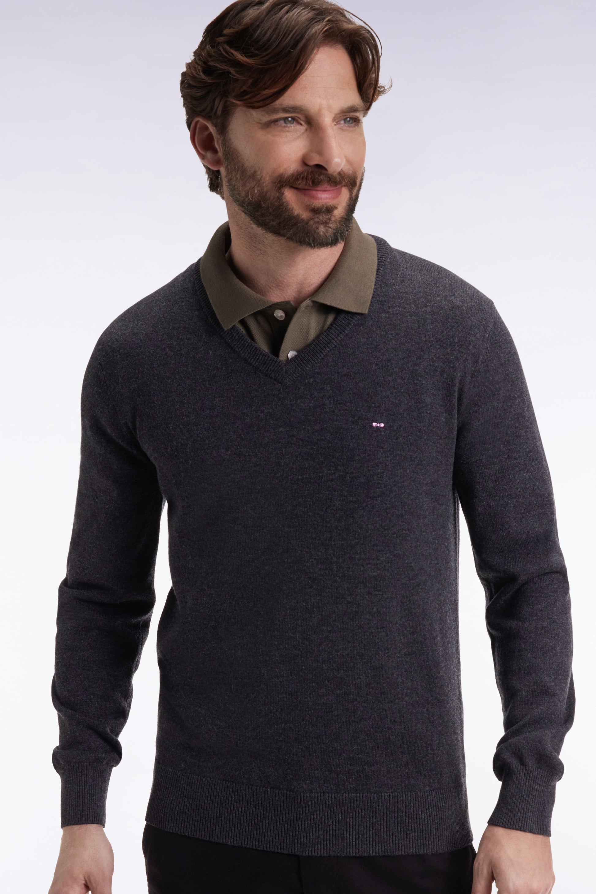 This elegant V-neck sweater in wool and cotton blend features the comfortable, versatile straight cut of our classic sweater in a number of different neckline versions. This model features our iconic bowtie embroidery on the chest and a rugby-striped half-moon inside. Perfect for energizing a silhouette with a controlled touch of color, thanks to the wide choice of colors offered here.