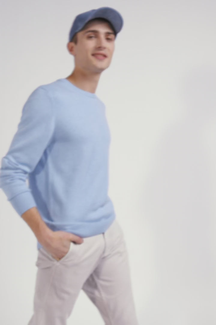 Regular sky blue wool and cotton crew neck jumper