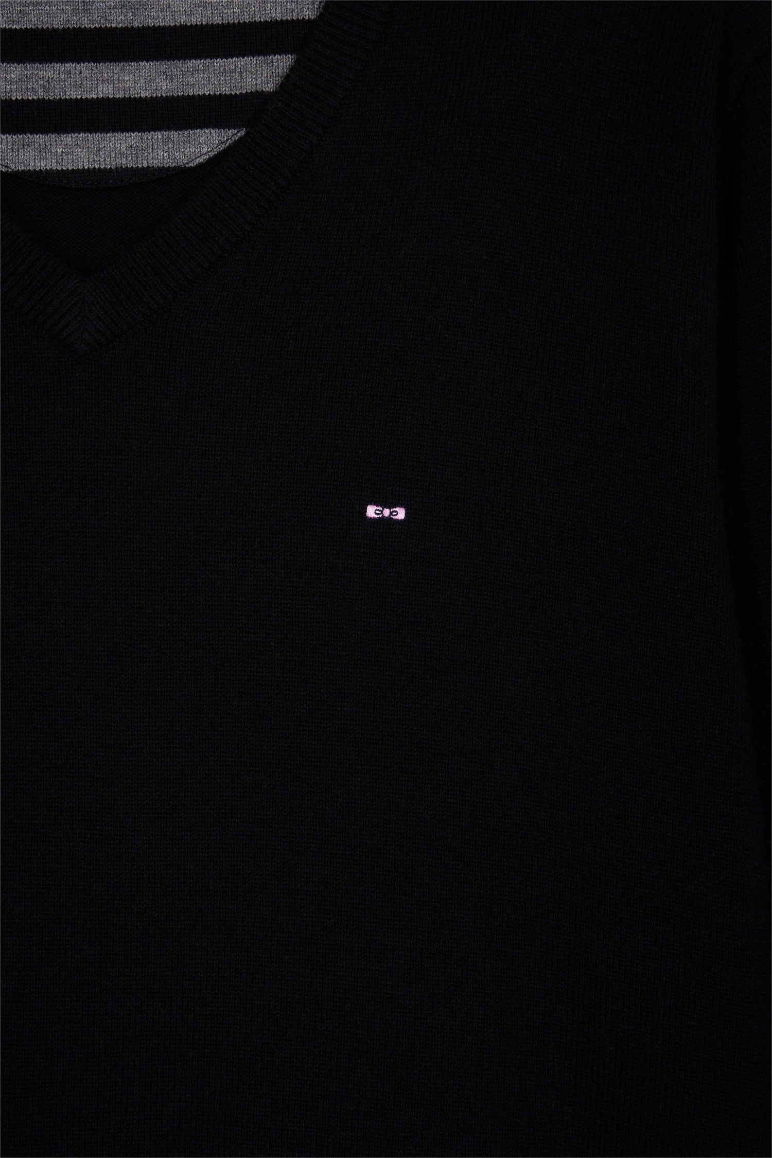 This elegant V-neck sweater in wool and cotton blend features the comfortable, versatile straight cut of our classic sweater in a number of different neckline versions. This model features our iconic bowtie embroidery on the chest and a rugby-striped half-moon inside. Perfect for energizing a silhouette with a controlled touch of color, thanks to the wide choice of colors offered here.