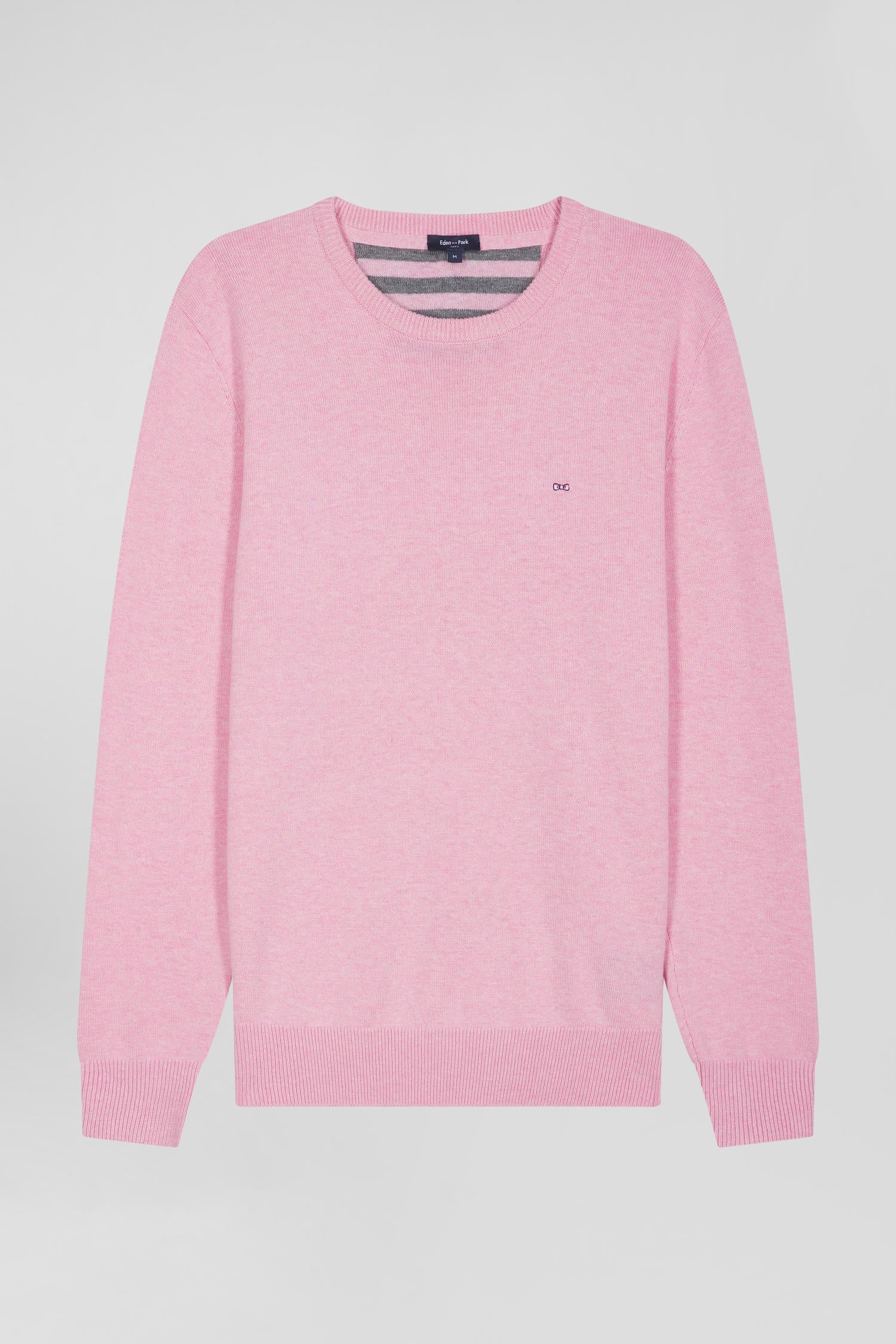 Regular pink wool and cotton crew neck jumper