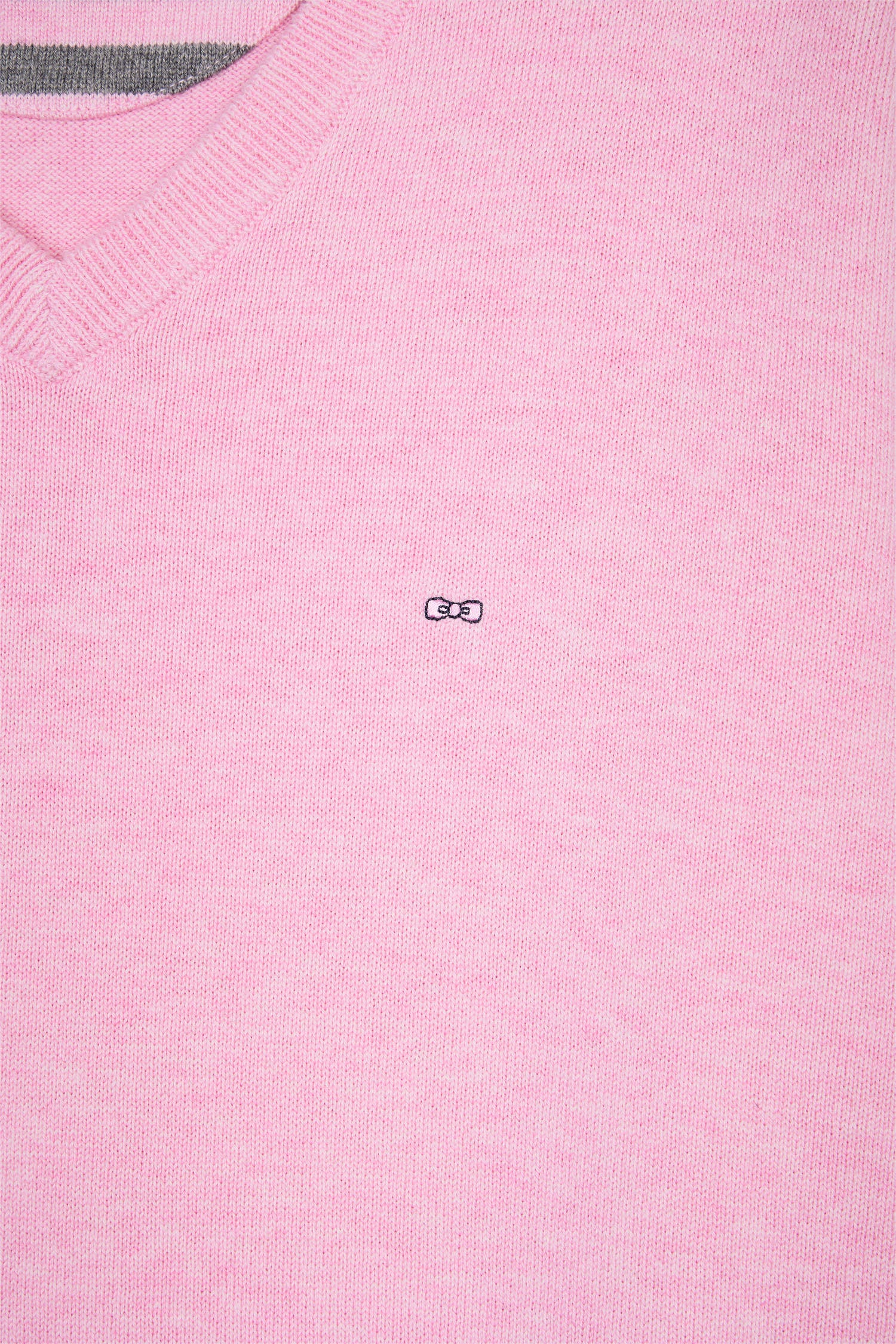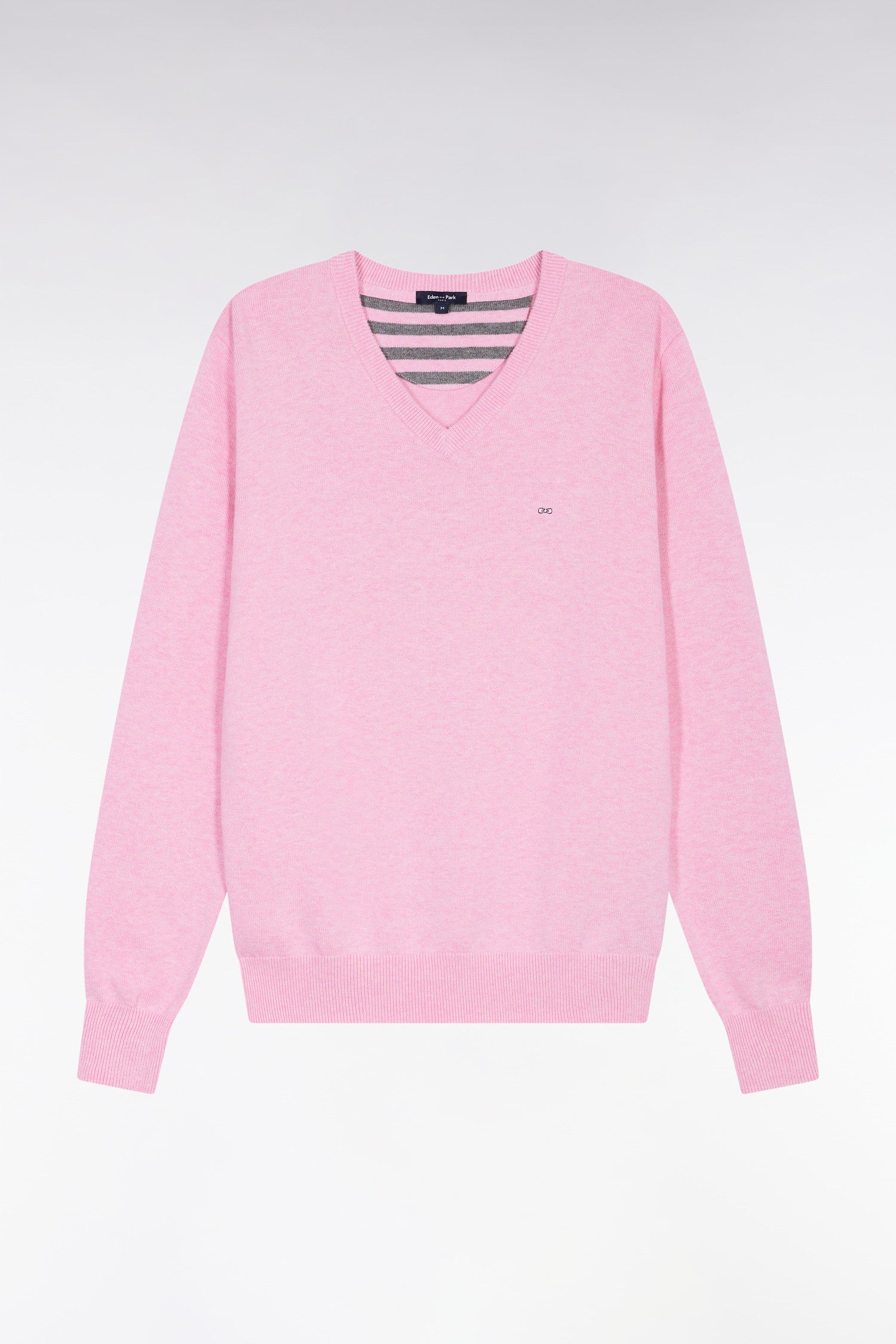 This elegant V-neck sweater in wool and cotton blend features the comfortable, versatile straight cut of our classic sweater in a number of different neckline versions. This model features our iconic bowtie embroidery on the chest and a rugby-striped half-moon inside. Perfect for energizing a silhouette with a controlled touch of color, thanks to the wide choice of colors offered here.