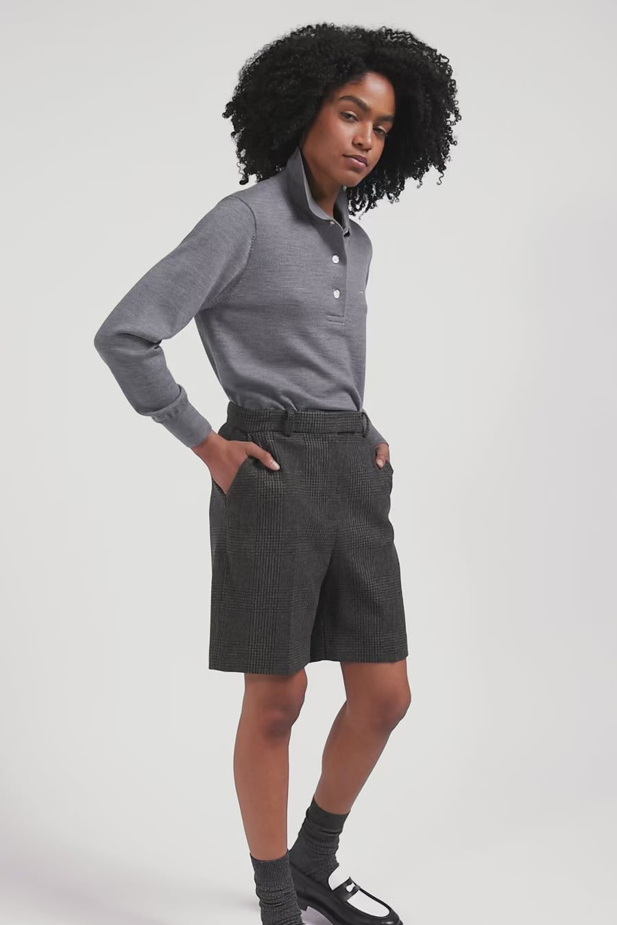 Regular mottled grey women's wool jumper with rugby shirt collar