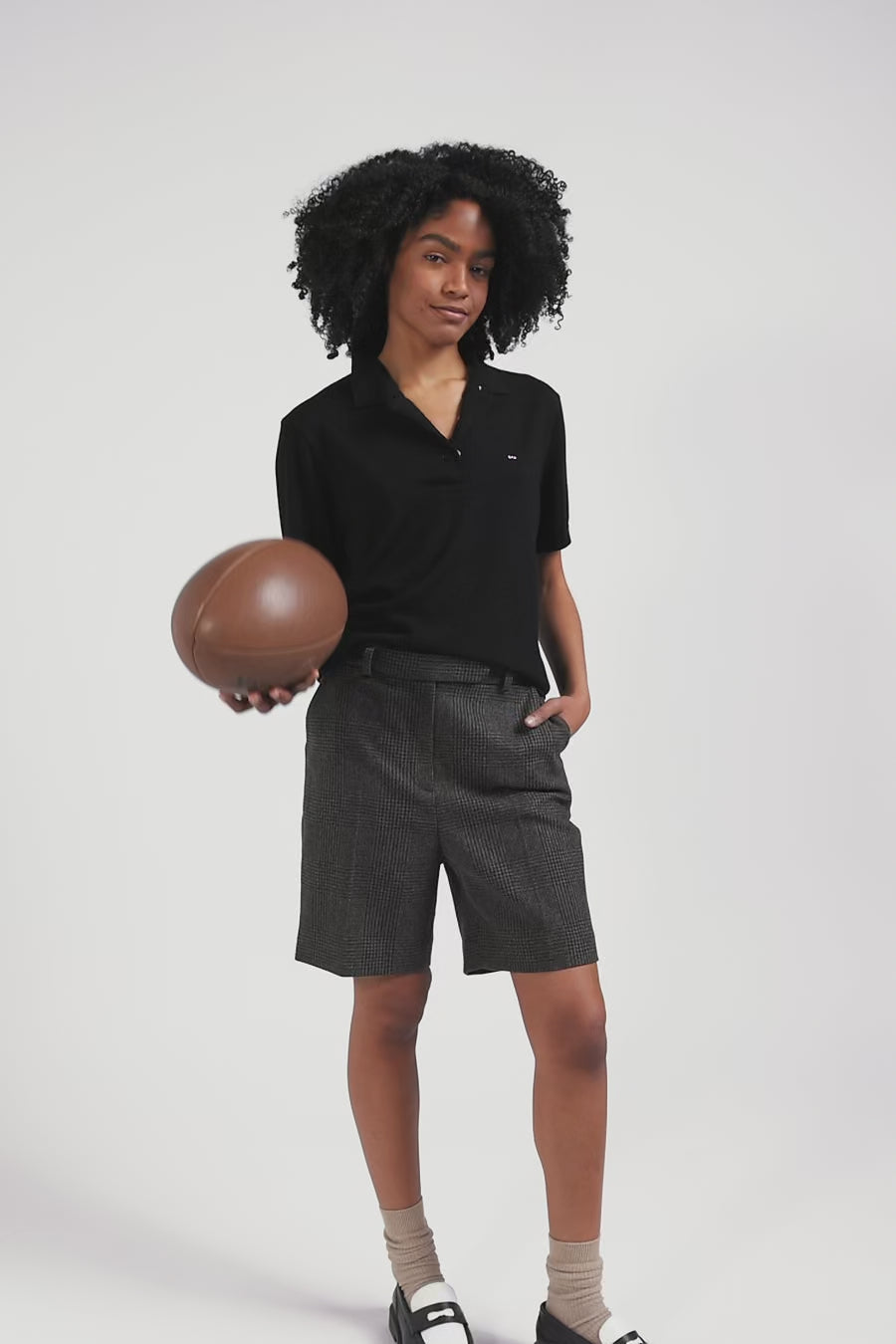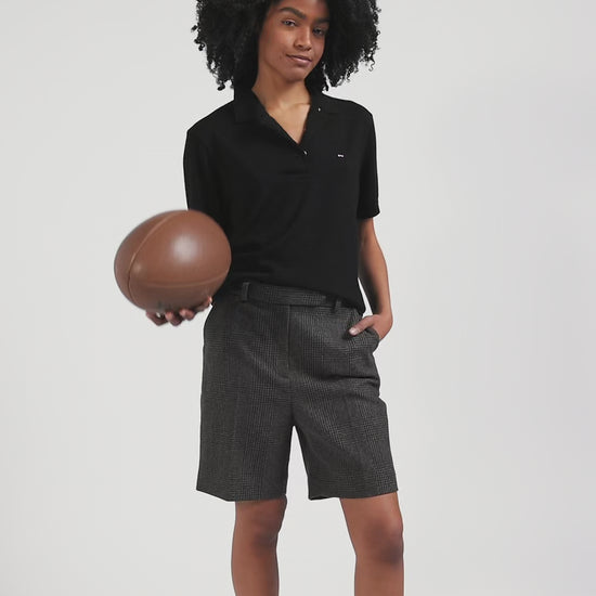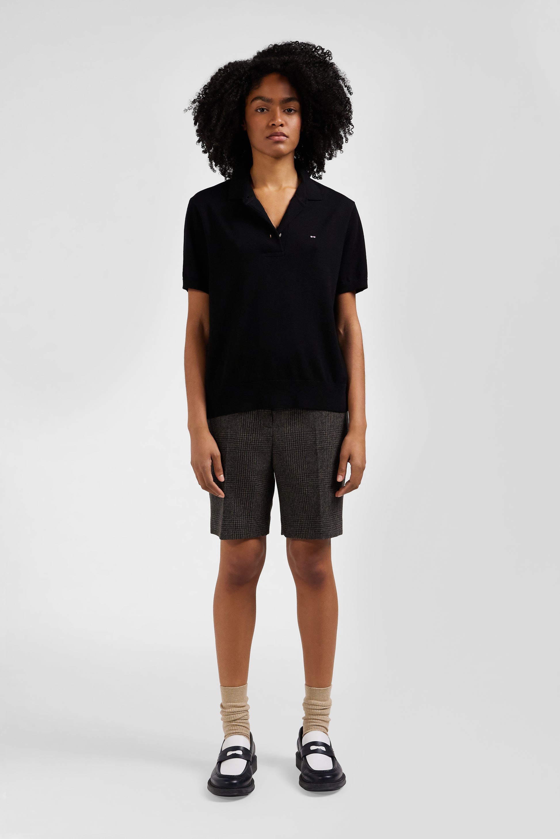 This women's polo-neck short-sleeved sweater in wool features a straight Regular fit for comfort and elegance. Signature oval rugby buttons add a distinctive touch to this timeless piece. Available in navy, black and three shades of gray, this versatile sweater is perfect for a casual chic look or more professional associations. Wear it with a skirt or jeans for style variety.