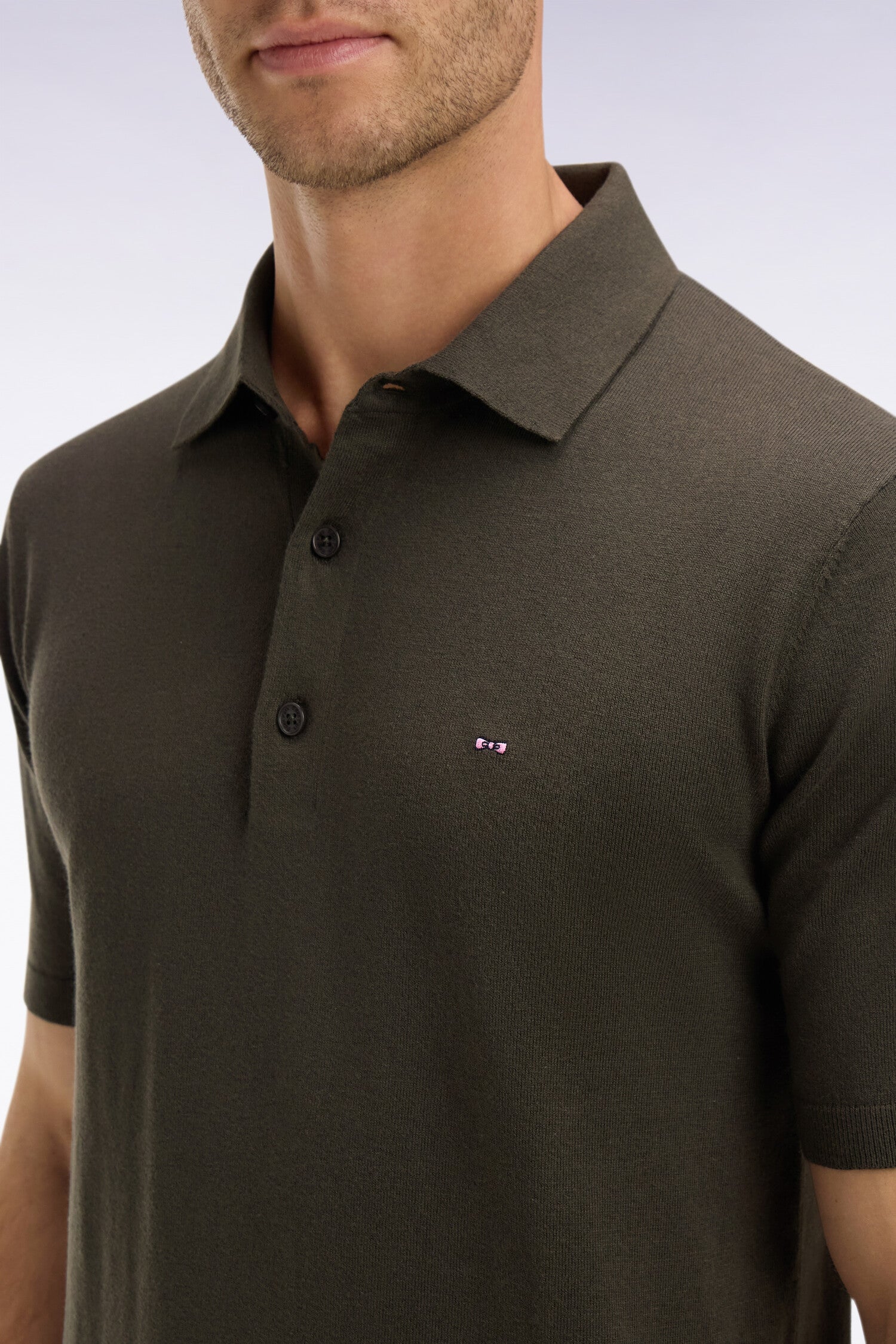 Le mélange de coton, soie et polyamide confère à ce pull manches courtes à col polo une douceur et un confort incomparables. Décliné en rose, marine, ciel, kaki ou beige, ce modèle emblématique de notre vestiaire sport-chic se distingue par son tricotage en point jersey qui allie élégance et aisance de mouvement. Ses bords-côtes ton sur ton et ses finitions soignées, sublimées par l’iconique broderie nœud papillon rose Eden Park, signent un essentiel du vestiaire masculin idéal pour l'arrivée des beaux jours. Ce pull col polo manches courtes existe également en version manches longues à col rond.