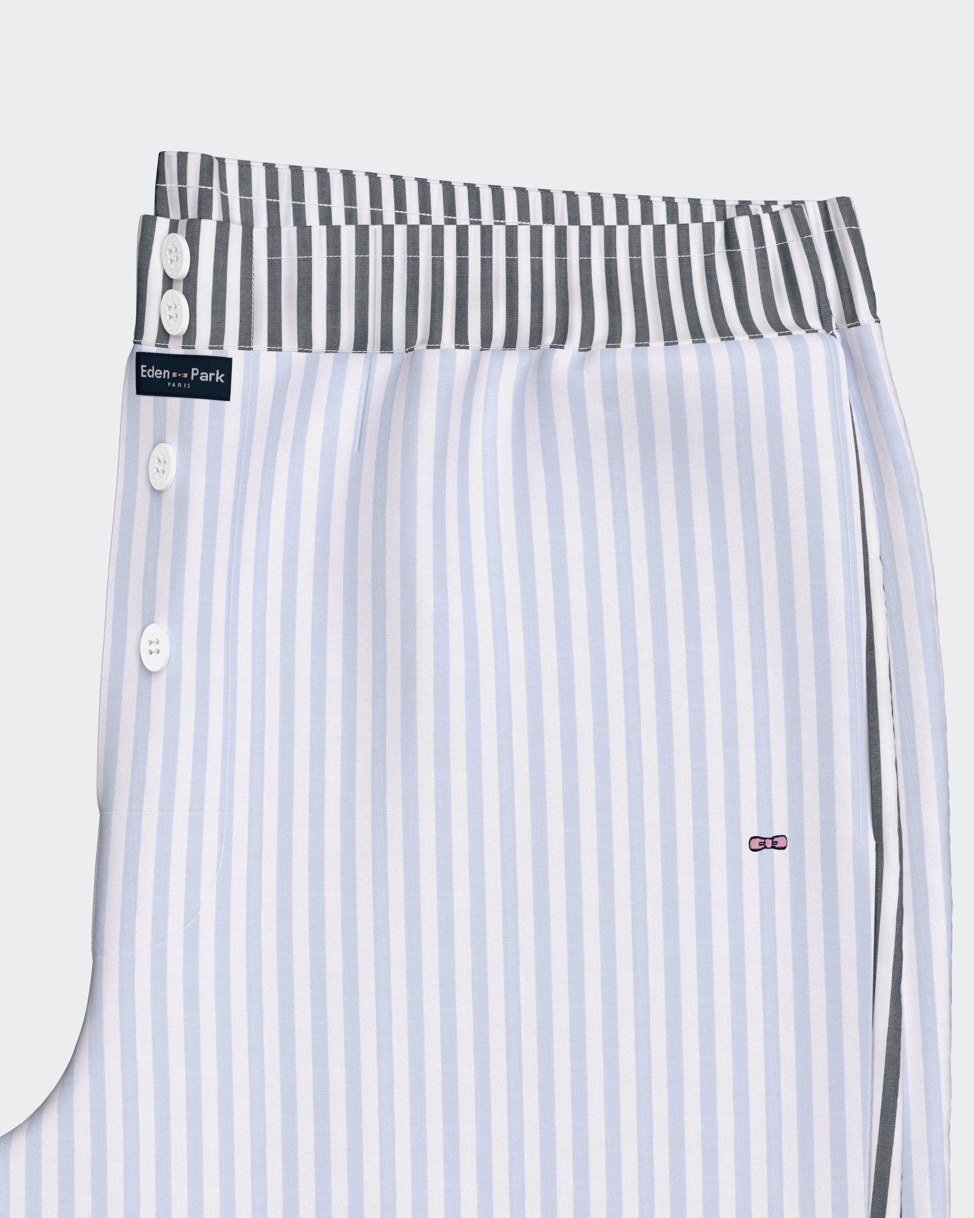 Pyjama long en coton à rayures bicolores bleu ciel et marine