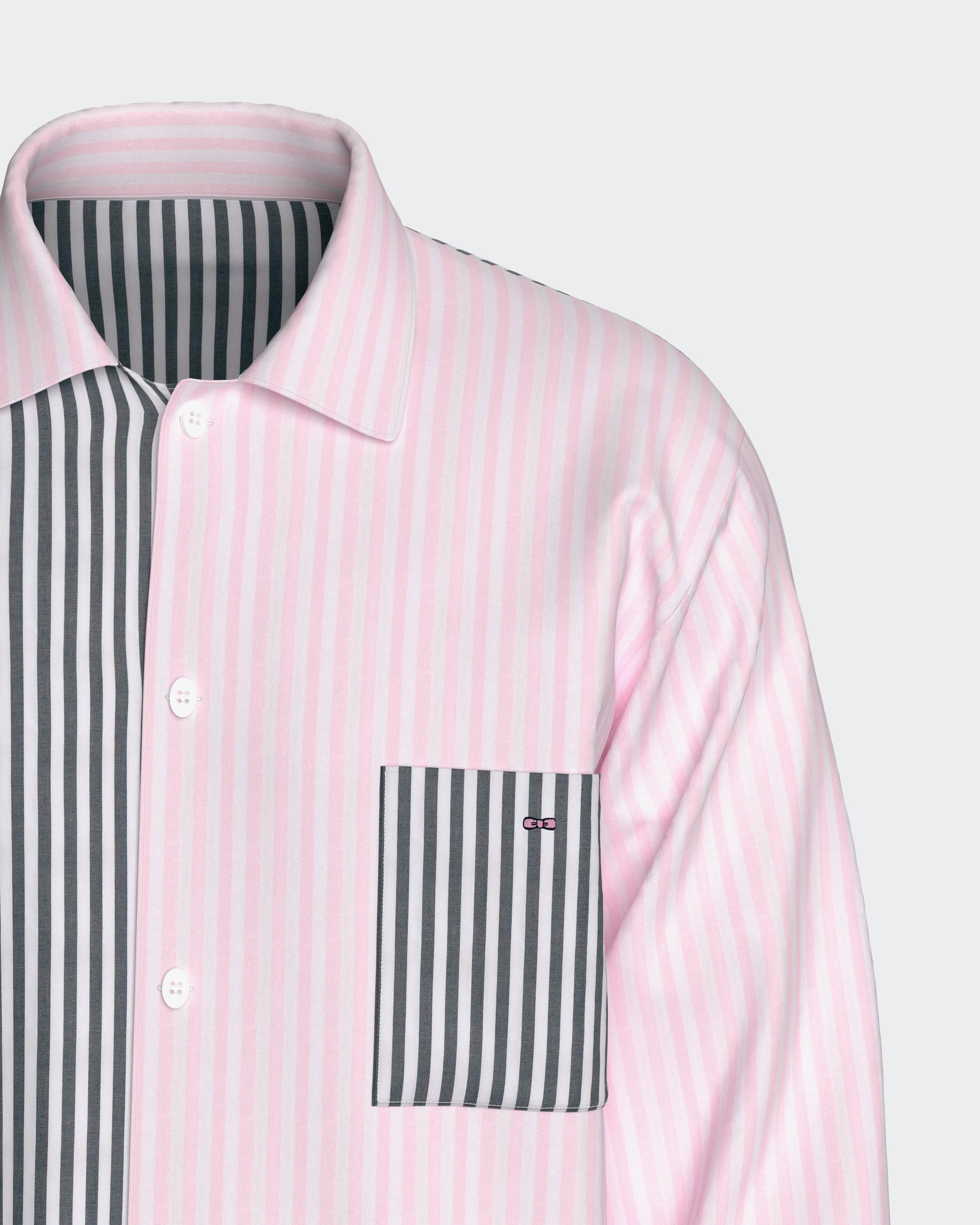 Pyjama long en coton à rayures bicolores marine et roses
