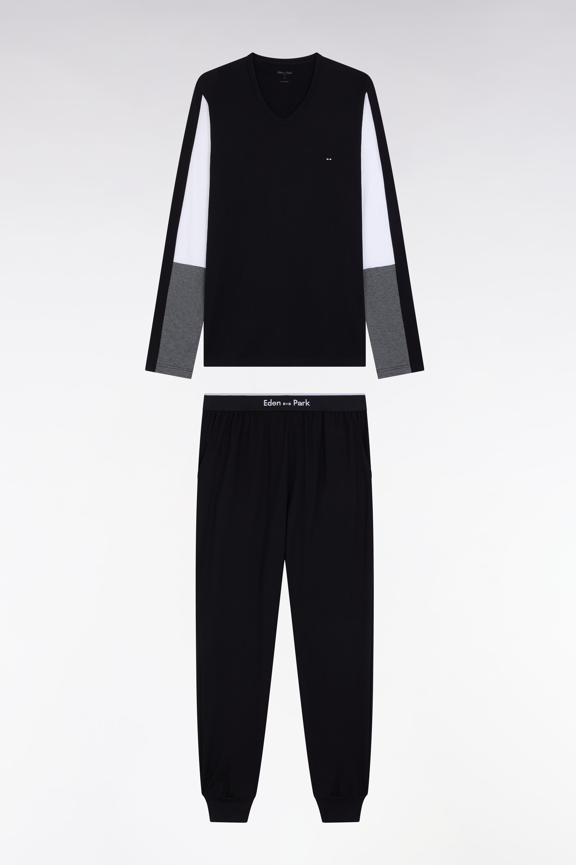 Long pyjamas in grey colorblock cotton jersey - A SHOOTER