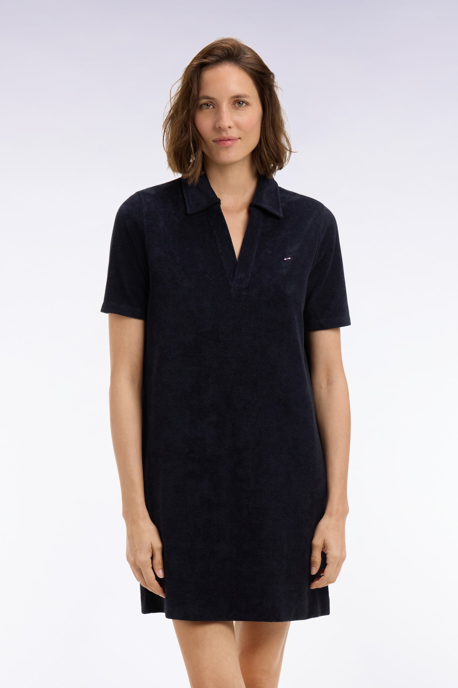 Cette robe polo en coton éponge mélangé complète un vestiaire estival chic et décontracté. Son éponge douce et légèrement texturée lui confère un charme balnéaire irrésistible, tandis que sa coupe regular droite allonge la silhouette en un geste. Notre emblème nœud papillon signe discrètement cette robe. À porter avec des sandales plates, des espadrilles en corde ou une paire de basket blanche pour une silhouette élégante en vacances, en week-end ou simplement pour profiter d'une journée ensoleillée en ville.