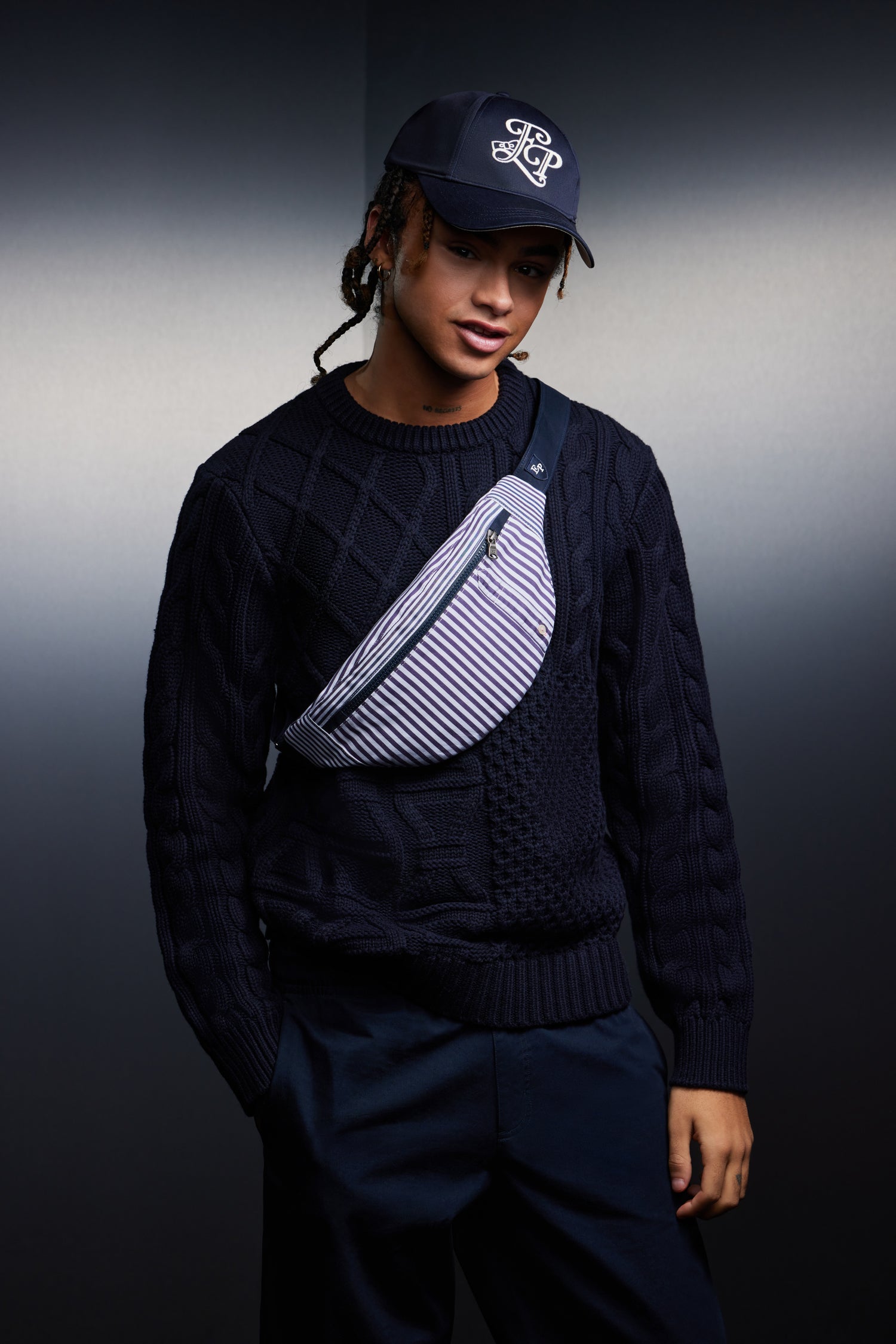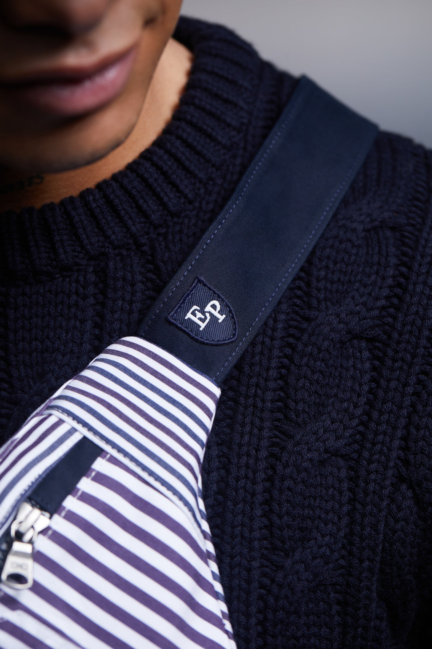 Créée de toutes pièces dans l’atelier parisien d'Eden Park, cette banane unisexe s’inscrit dans l'esprit de créativité et d'engagement de la capsule upcycling Pap’Atelier. Réalisée à partir de petites chutes de chemises issues de nos stocks dormants, celles-là mêmes ayant servi à la confection du sac cabas de cette capsule exclusive, elle illustre une approche consciente valorisant pleinement chaque matière. Les rayures graphiques structurent cette pièce au caractère affirmé, tandis qu’une sangle réglable assure un porté confortable au quotidien. Fonctionnel, ce sac banane est doté d’une poche zippée intérieure et signée d’un écusson EP, également recyclé, apposé à l’extrémité de la sangle. Aux dimensions compactes (36 × 15 cm), cette banane upcyclée est proposée en un seul exemplaire sur notre site internet, incarnant une vision libre, ingénieuse et durable de la mode Eden Park.