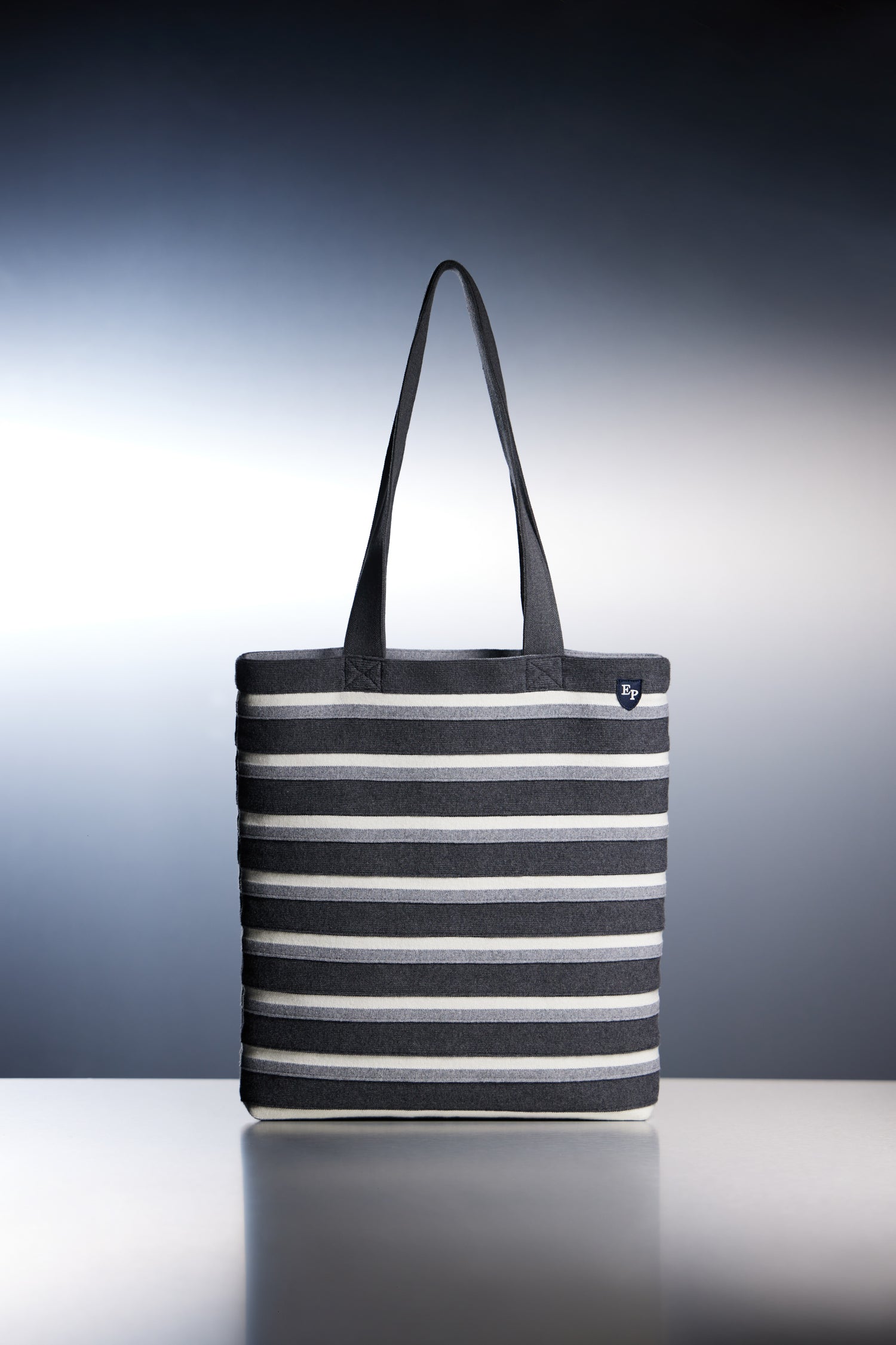 Tote bag en maille rayée tricolore upcyclé Pap'Atelier