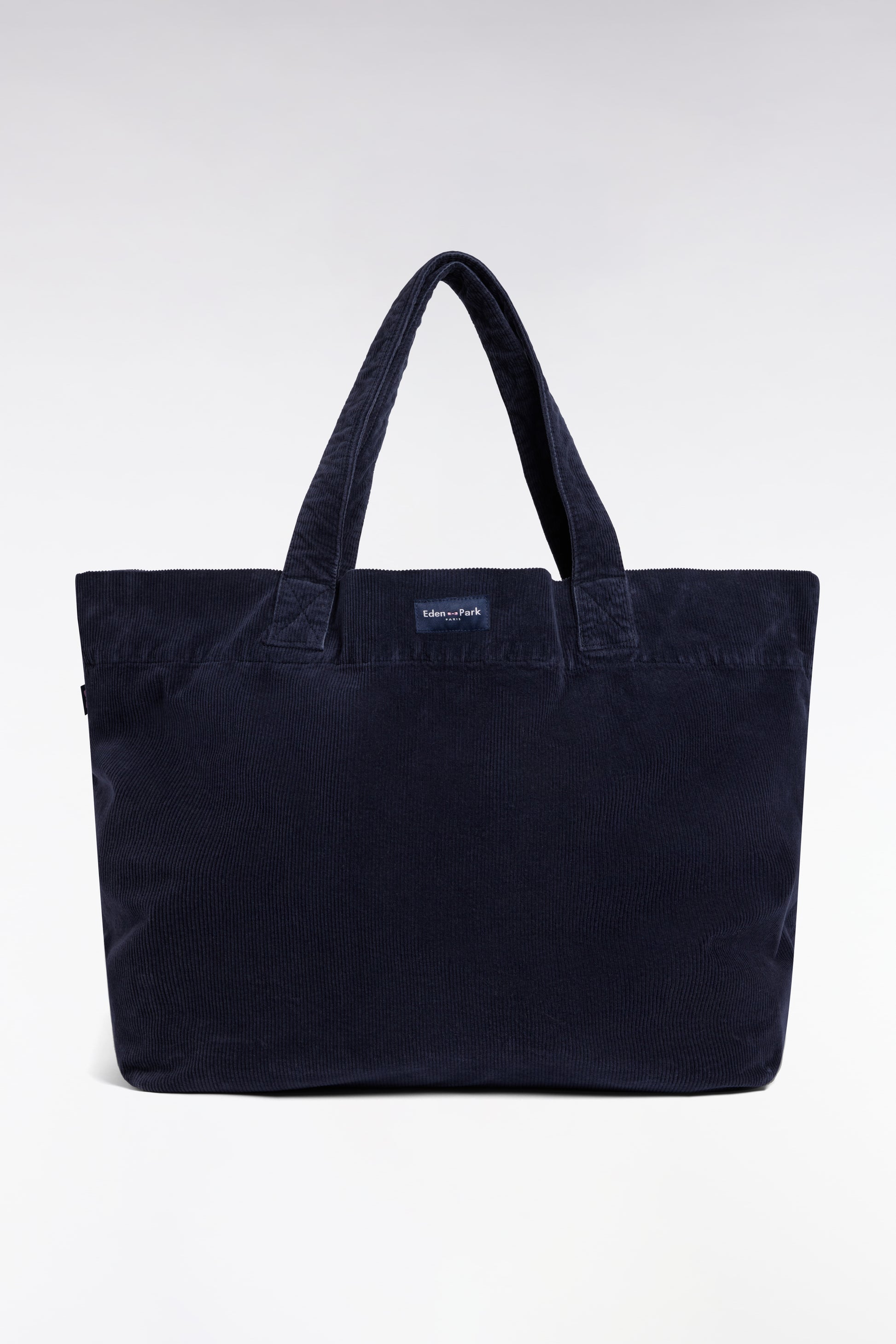 A casual look and meticulous finishing combine perfectly for this corduroy tote bag, available in black or navy. Practical for everyday use, this tote bag features a removable base and handles for comfortable carrying. A fabric logo on the front and a signature bow tie on the side discreetly sign this functional and trendy tote bag.