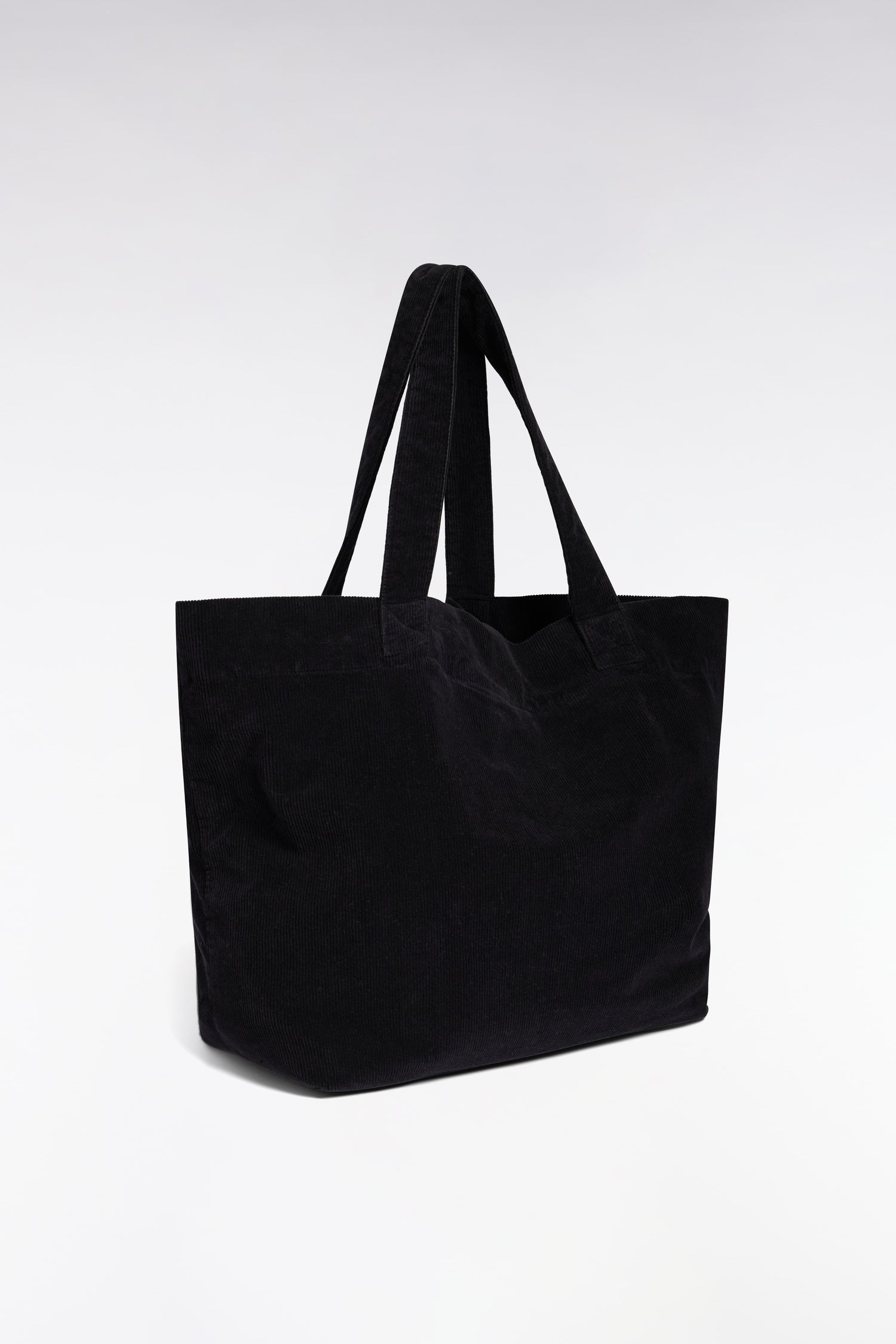 A casual look and meticulous finishing combine perfectly for this corduroy tote bag, available in black or navy. Practical for everyday use, this tote bag features a removable base and handles for comfortable carrying. A fabric logo on the front and a signature bow tie on the side discreetly sign this functional and trendy tote bag.
