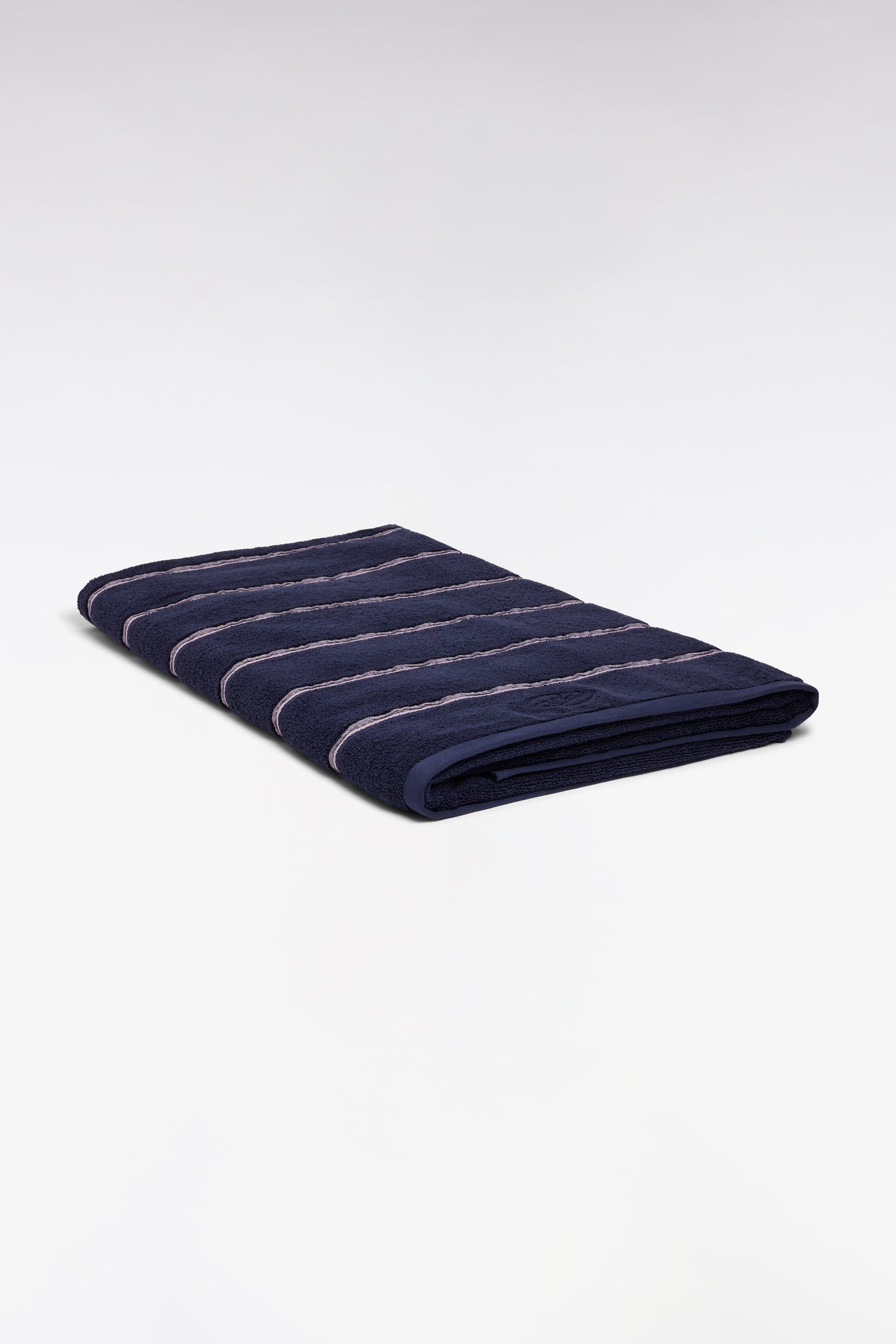 Cette serviette de plage en coton éponge associe confort et élégance sport chic. Son jacquard à fines rayures contrastées évoque les maillots de bain masculins de la Maison, tandis que la broderie ton sur ton signe une allure discrètement identitaire. Douce, absorbante et généreuse par ses dimensions, elle accompagne aussi bien les journées plage que les moments piscine. Disponible en plusieurs coloris coordonnés aux collections homme, elle complète parfaitement la silhouette estivale Eden Park.