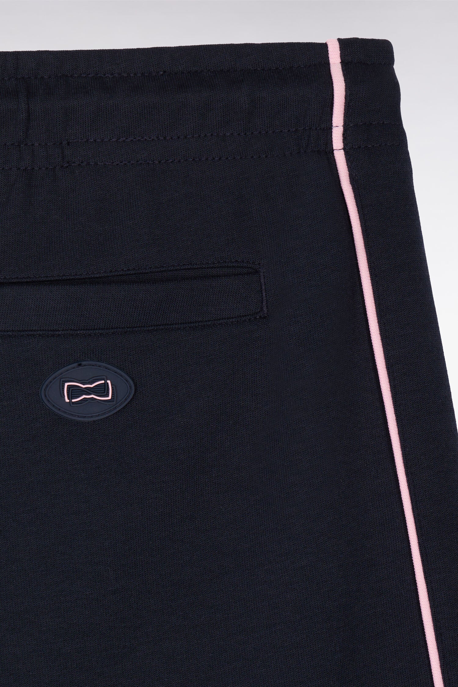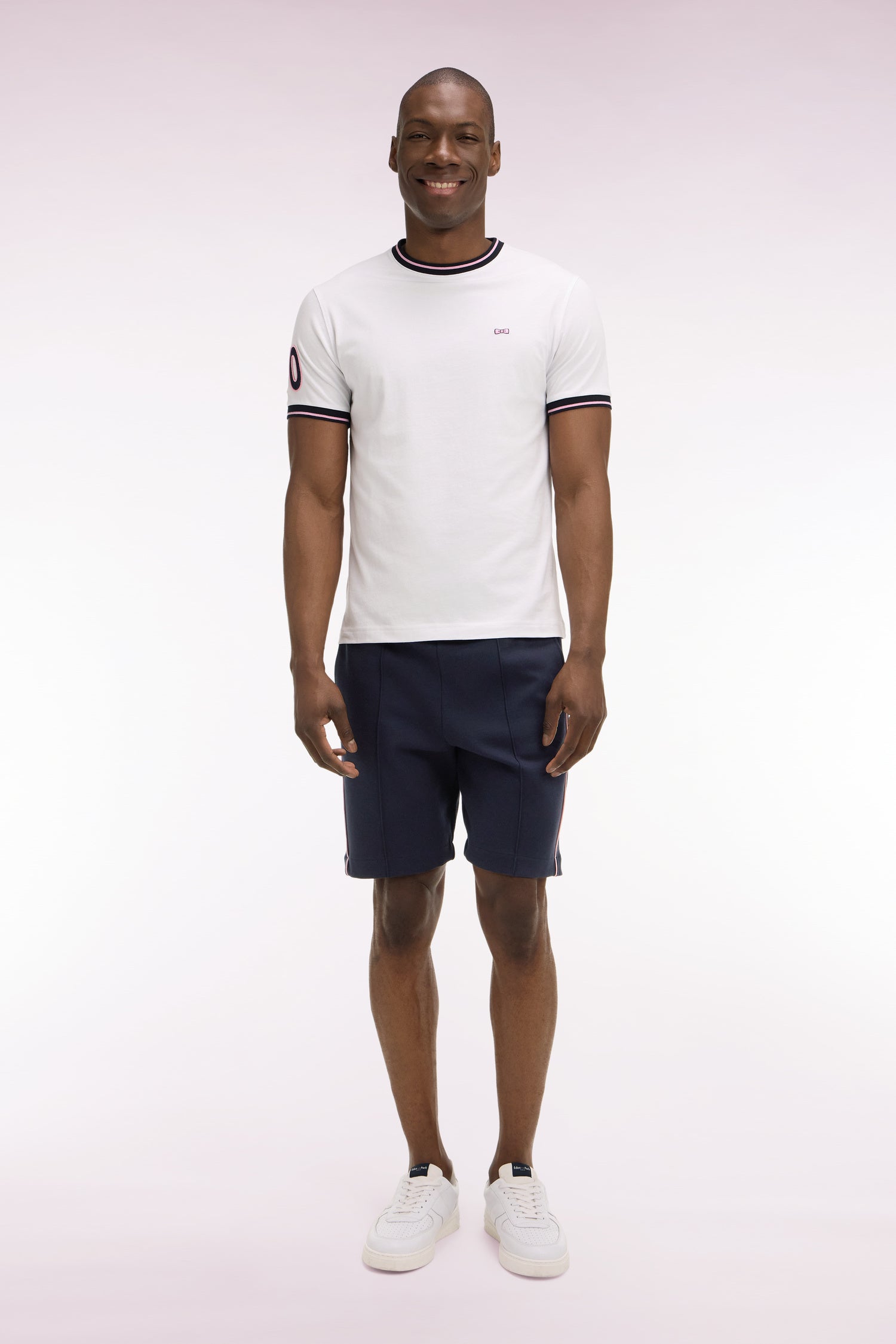 Ce short en molleton doux conjugue confort et allure sport chic. Sa coupe droite et ses finitions soignées en font un essentiel polyvalent, à porter aussi bien à la Maison qu’en ville. Le molleton souple assure une liberté de mouvement parfaite au quotidien tandis que son discret emblème nœud papillon et ses passepoils contrastés le long de jambe rehaussent son élégance minimaliste.