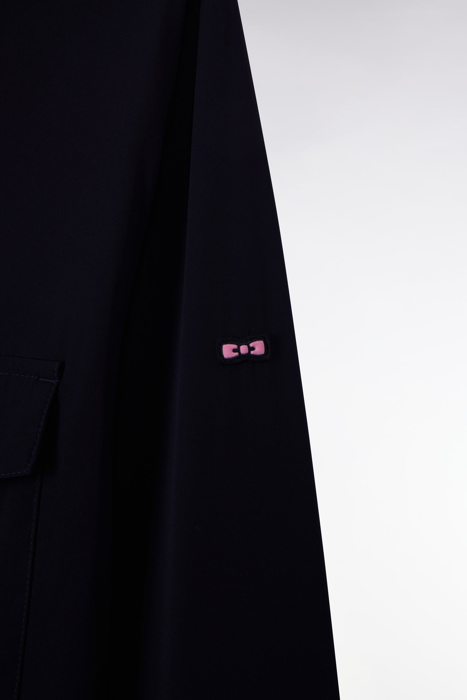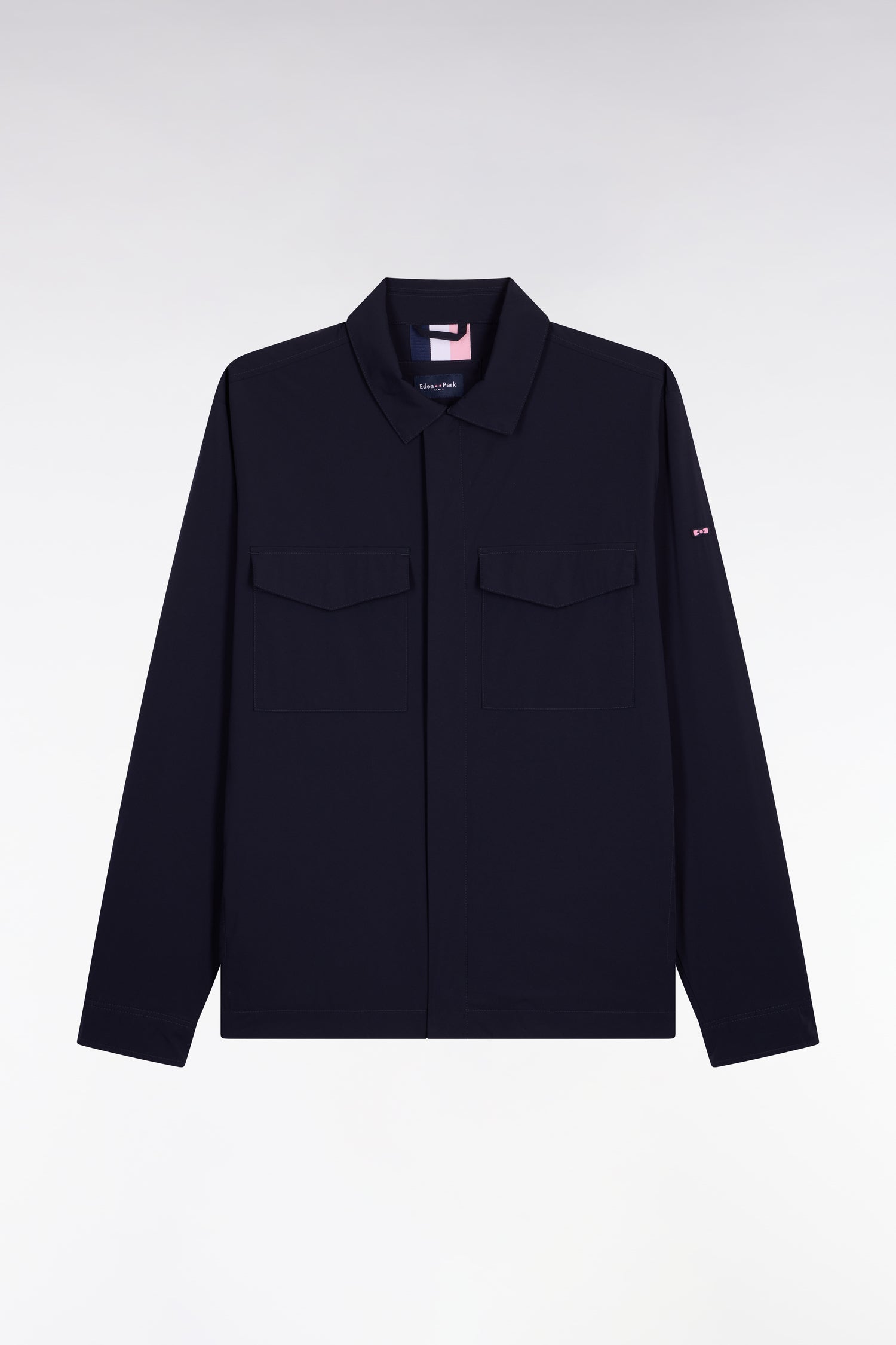 Cette surchemise marine allie élégance et modernité avec sa coupe droite et ses deux poches à rabat plaquées, idéale pour dessiner une silhouette structurée. Confectionnée en nylon stretch léger elle garantit un confort optimal tout en affirmant un style d'inspiration utilitaire. Alors que les modèles similaires sont souvent munis de seuls boutons, celle-ci se dote également d'une fermeture droite. Polyvalente, cette pièce peut être portée en remplacement d'une veste ou d'un blazer sur un T-shirt en coton blanc avec un jean brut.